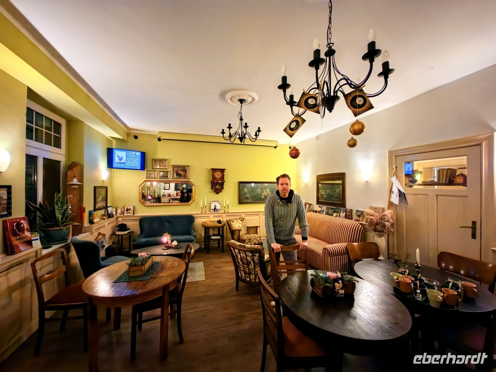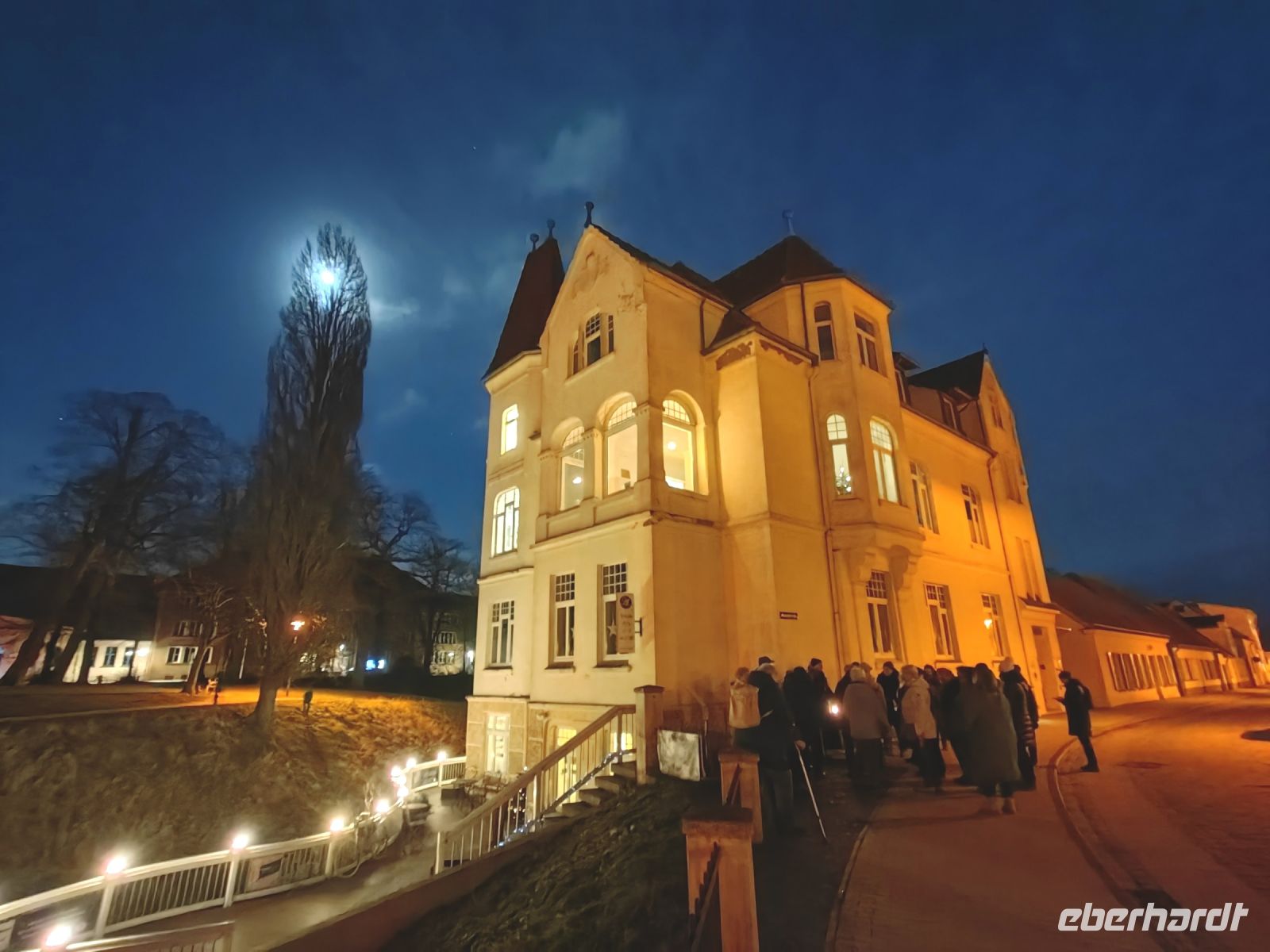 Am Nachmittag erreichen wir das Hotel in Güstrow, beziehen unsere Zimmer und wenig später spazieren wir durch die Altstadt, am Dom vorbei zur urigen Anmut-Bar, wo wir uns vor unserem Rundgang mit dem Nachtwächter erstmal mit einem Punsch erwärmen wollen. Zur großen Enttäuschung der Gäste ist der Punsch ohne Alkohol! Später wird sich herausstellen, daß das sehr gut so war, denn unser Spaziergang mit dem Nachtwächter wird Konzentration und Durchhaltevermögen von uns fordern.