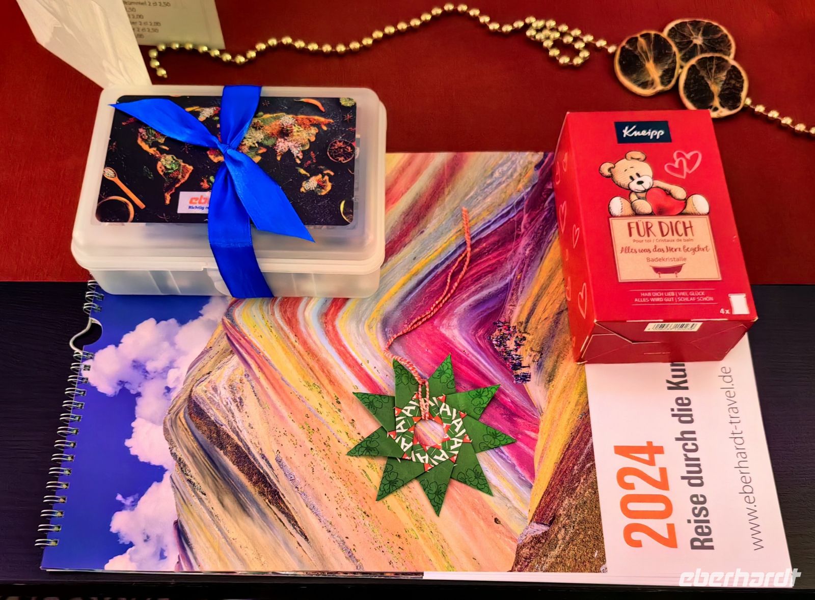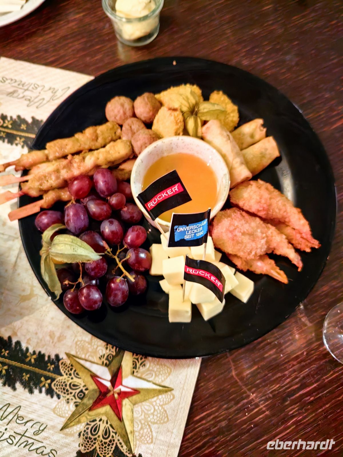 Simone und Heiko beginnen nun eifrig mit den Vorbereitungen für die Bescherung und am frühen Abend ist der Glühwein heiß, der Stollen geschnitten, die Geschenke sind hübsch drapiert und erwartungsvoll kommen die Gäste zum Restaurant. Beim gemütlichen Weihnachtsabend entstehen Fröbelsterne und viele alte Geschichten von früheren Weihnachtserlebnissen werden ausgetauscht.