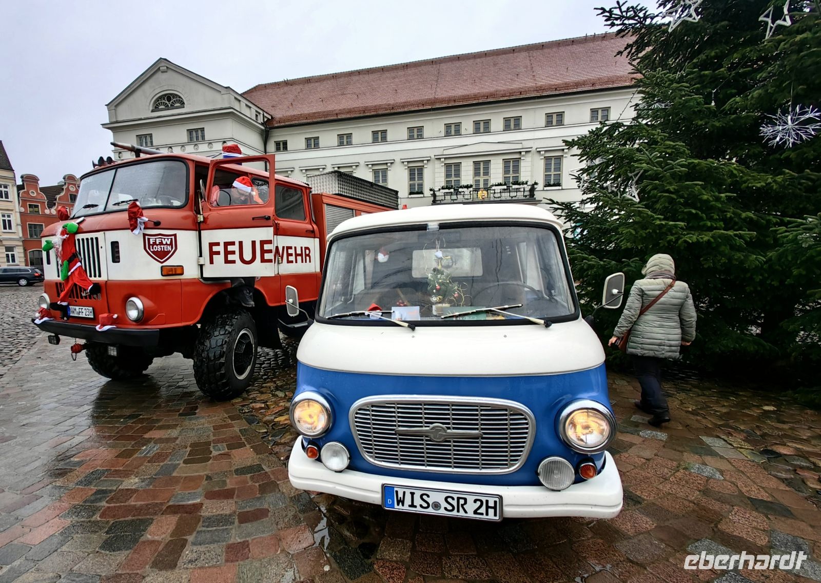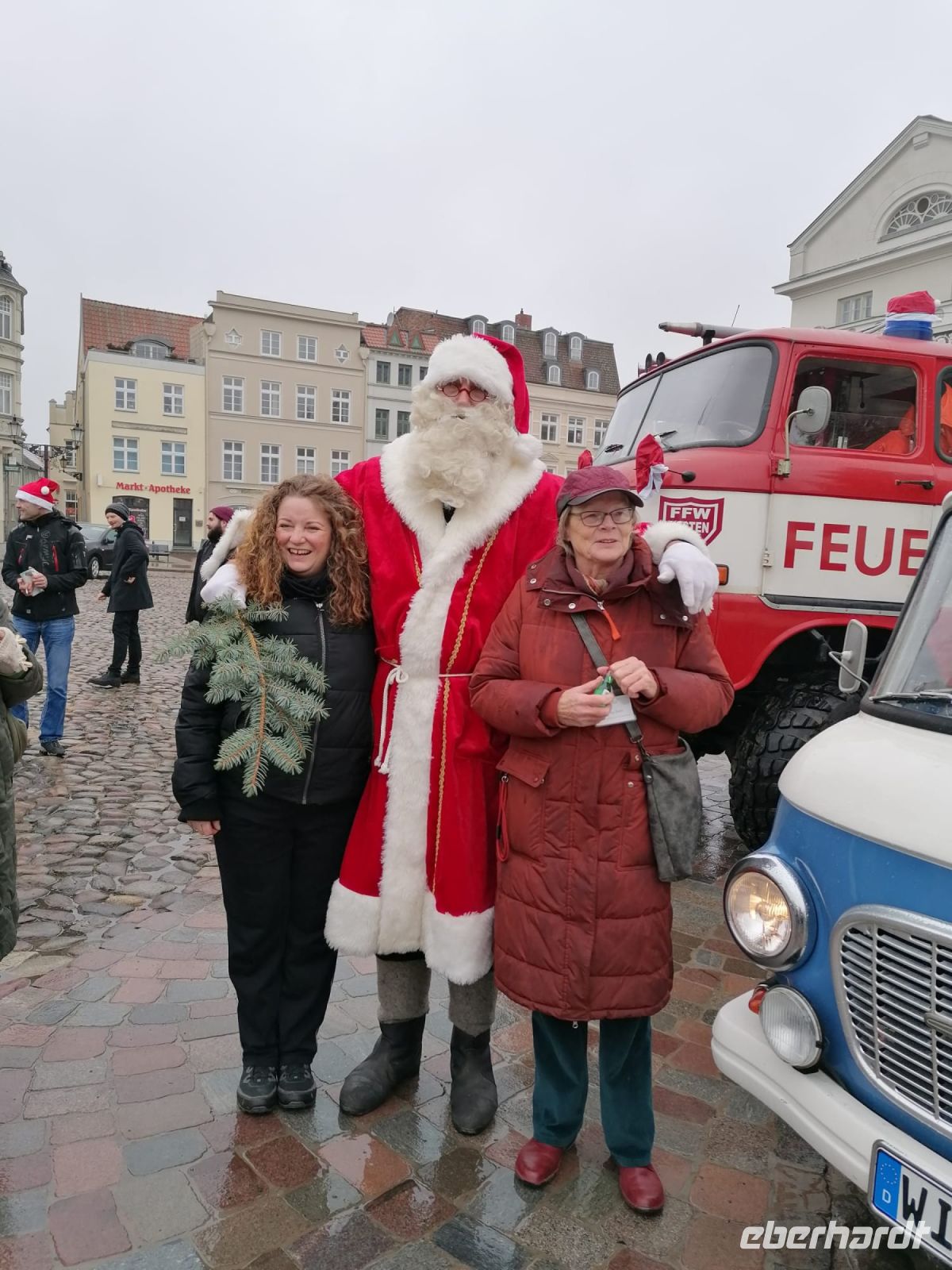 Die Altstadt kann sich sehen lassen, gehört sie doch seit 2002 zum UNESCO Weltkulturerbe. Der immer noch mittelalterliche Stadtkern und das Straßennetz sind nahezu unverändert erhalten geblieben und auf dem imposanten Marktplatz verweilen wir erstmal, da es dort so viele wunderschöne Hausfassaden zu sehen gibt. Plötzlich hupt es, eine Feuerwehr und ein alter Barkas fahren auf und wir staunen nicht schlecht, als der Weihnachtsmann aus diesem Gefährt steigt und Geschenke mitgebracht hat. Sogar für Fotos mit den Gästen hat er Zeit und auch wenn das Wetter nicht fotofreundlich ist, entstehen doch tolle Schnappschüsse.