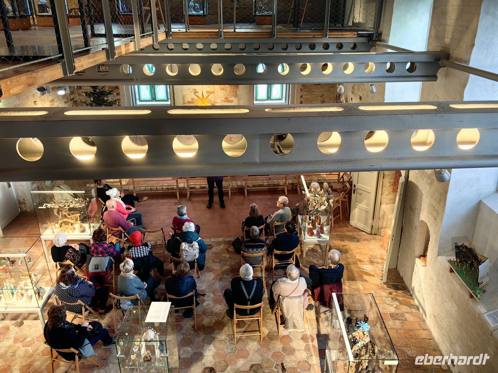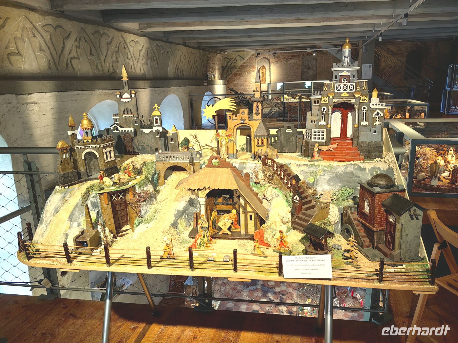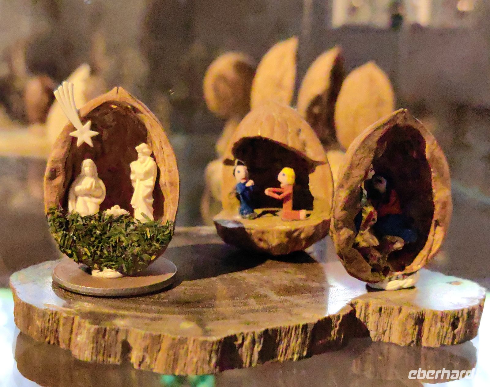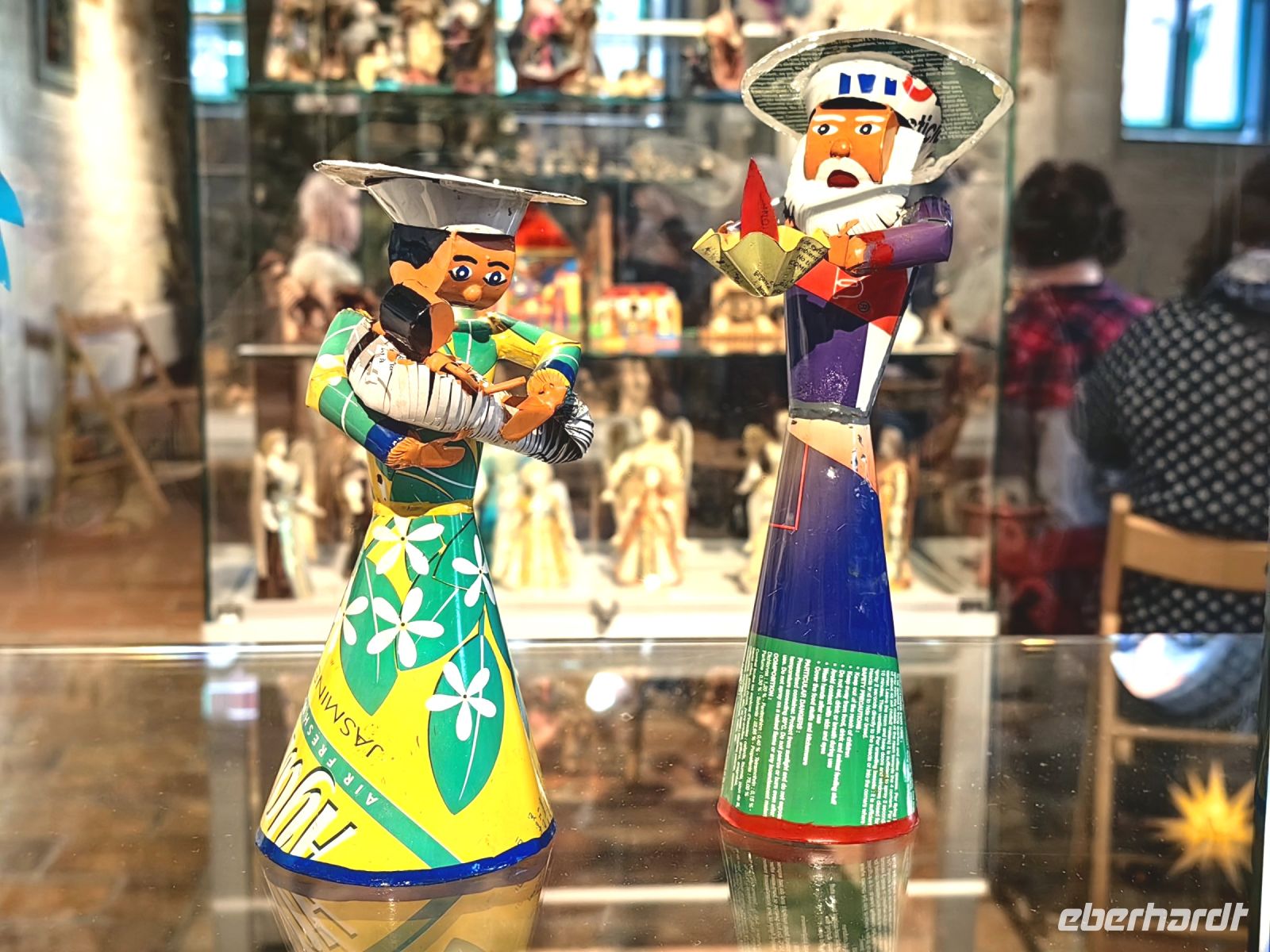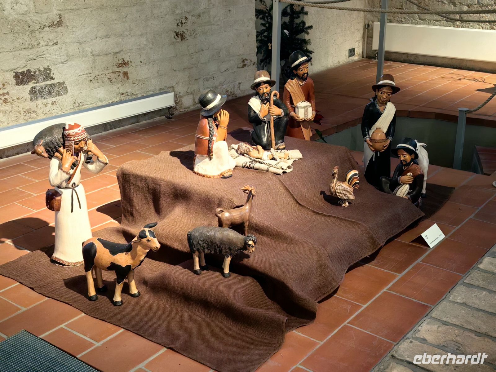 Dieses kleine Museum hat es sich zur Aufgabe gemacht, Krippen aus der ganzen Welt jedes Jahr anders zusammengestellt, für die Besucher in einer Ausstellung zu präsentieren. Wir staunen über Krippen in Nußschalen, Figuren aus Naturmaterialien aus dem Togo oder Kenia, eine Krippe in einer Flasche und eine so kleine Krippe, daß wir sie nur durch eine Lupe erkennen können. Eine kubanische Krippe hat vor dem Altar eine Zigarre und Havannarum liegen und die Blechfigürchen aus Mali sind ebenfalls sehr kunstvoll.