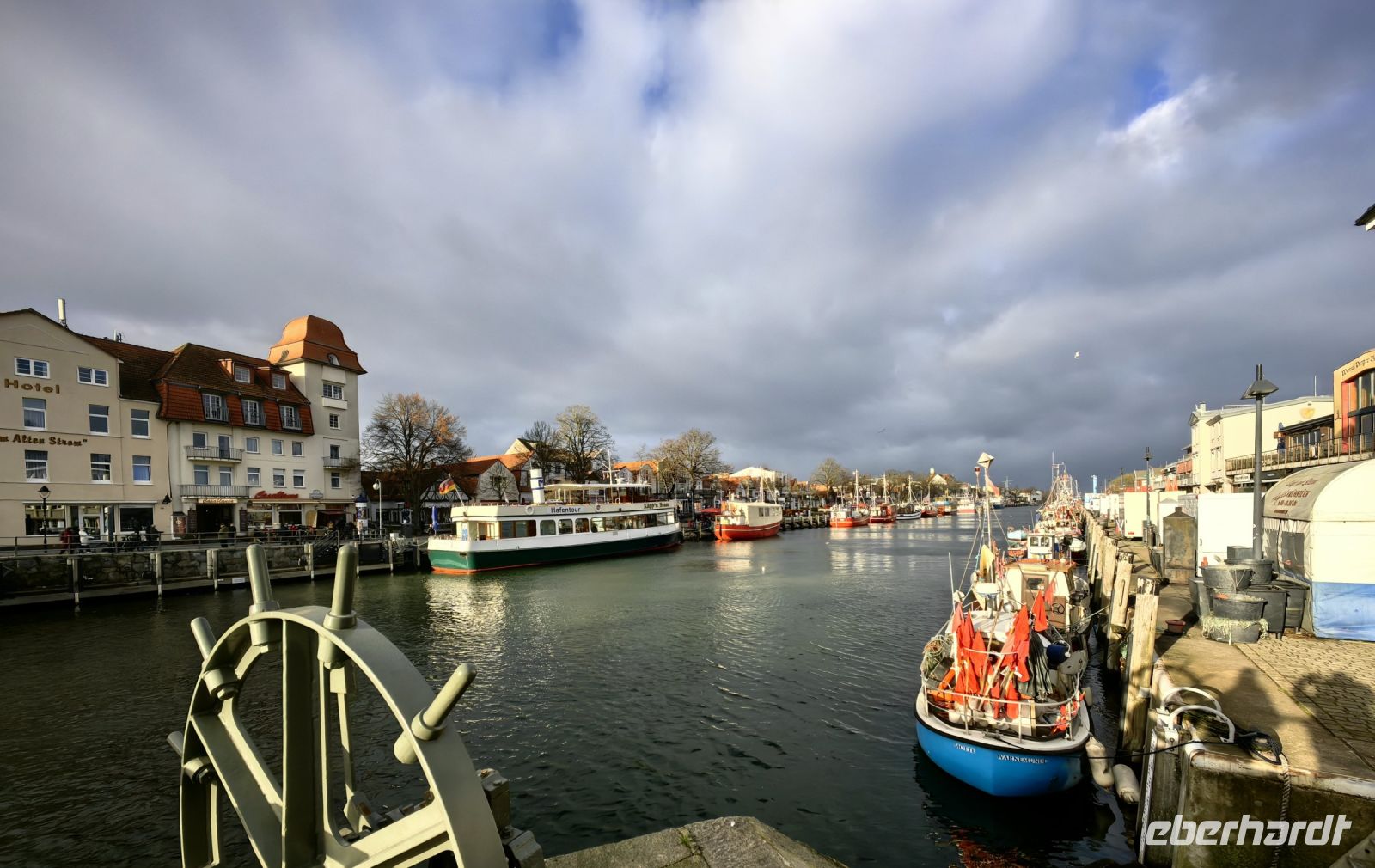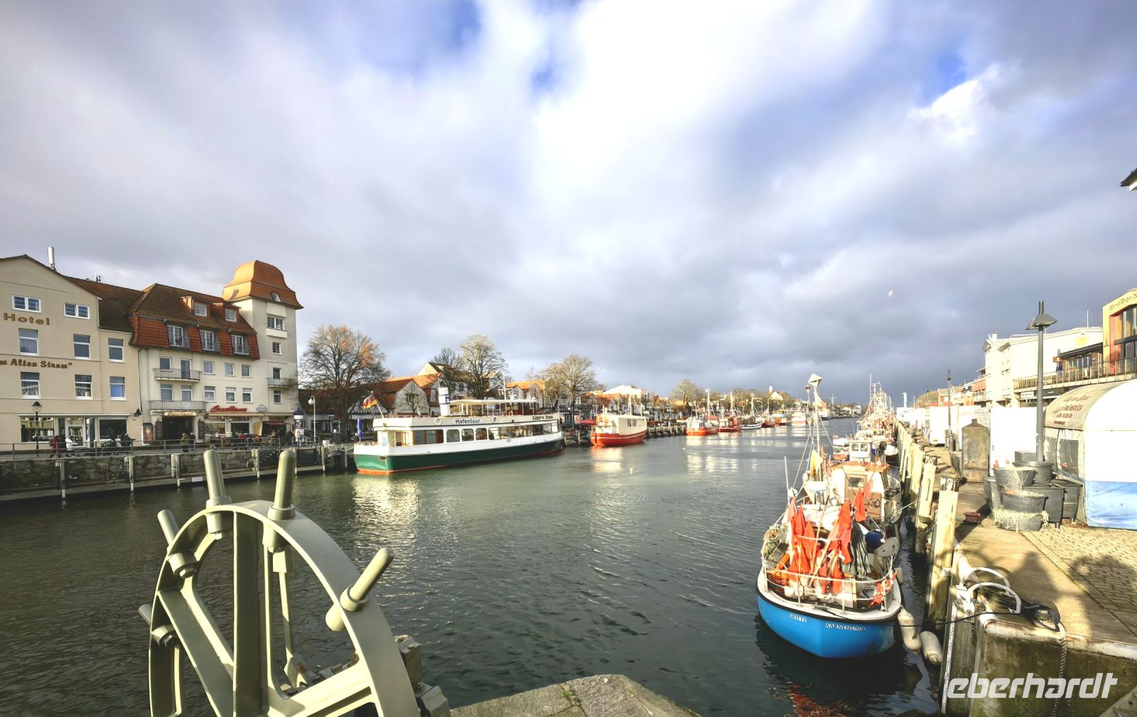Zur Mittagszeit erreichen wir den Bahnhof von Warnmünde und laufen die schöne Fußgängerzone am Alten Strom zum berühmten Futterkutter, einer Fischhütte mit Tradition. Dort warten schon die gierigen Möwen und die kleinen frechen Spatzen auf hungrige Zweibeiner, denen sie vom Fischbrötchen etwas stibitzen können. Gleich daneben liegt die FGS Markgrafenheide, unser Ausflugsschiff für die Hafenrundfahrt. Wir werden vom Kapitän bereits erwartet. Vorher bleibt uns aber noch Zeit, die ein oder andere Fischspezialität am Futterkutter zu probieren und die Möwen halten sich glücklicherweise dezent zurück. Viel schwieriger ist es, sich die kleinen frechen Spatzen vom Leib zu halten, die sogar vor dem Inneren der Fischhütte und den darin ausliegenden Brötchen keinen Halt machen.