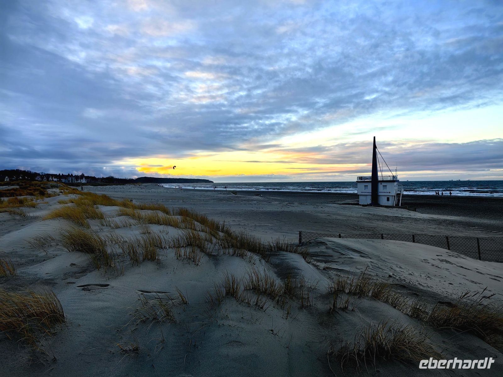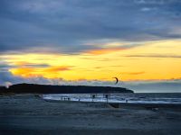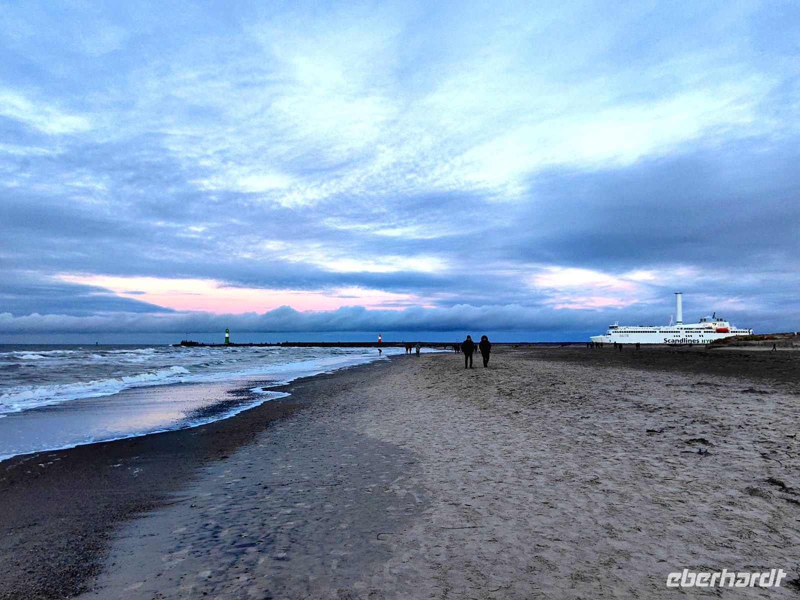 Das Meer ist zu verlockend, es regnet nicht! Also müssen wir einen kleinen Spaziergang entlang des malerischen Sandstrandes machen und etliche Erinnerungsfotos im rosaroten Nachmittagslicht entstehen.