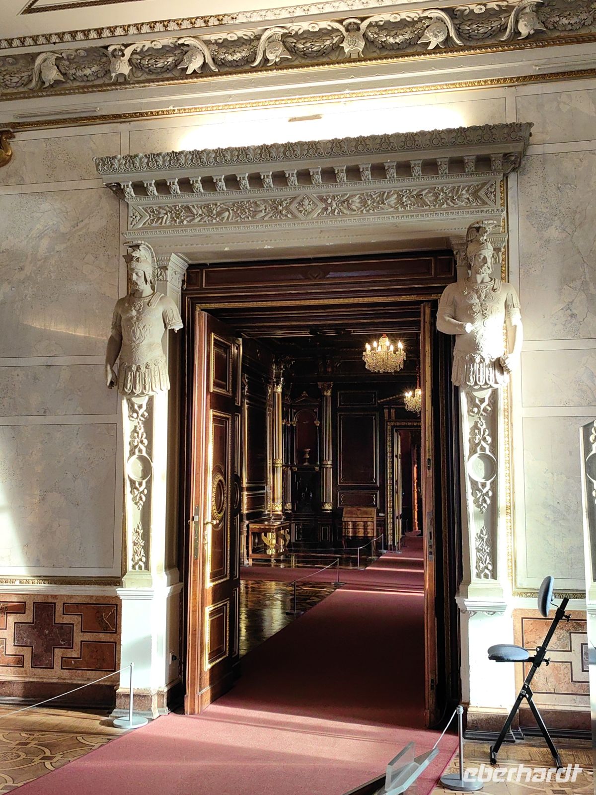Bei einer spannenden Führung bekommen wir einen Einblick in die zahlreichen restaurierten und für Besucher zugänglichen Räume. Das auf der Schloßinsel im Schweriner See gelegene imposante Bauwerk gilt als ein bedeutendes Beispiel des Historismus in Deutschland und dient bereits seit 1921 als Museum. Entstanden um 1500 und geplant von Hofbaumeister Demmler und Gottfried Semper, wurden bereits 1844 umfassende Umbaumaßnahmen vorgenommen. Ganz nach dem Vorbild französischer Renaissanceschlösser wie beispielsweise dem Schloß Chambord im Loiretal, gestaltete man den neuen Baukörper im Stil der Neorenaissance.