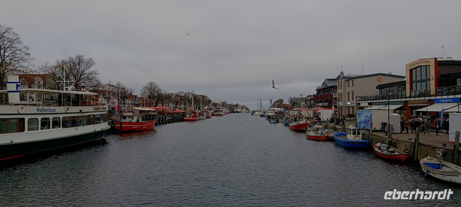 Zur Mittagszeit erreichen wir den Bahnhof von Warnmünde und laufen die schöne Fußgängerzone am Alten Strom zum berühmten Futterkutter, einer Fischhütte mit Tradition. Dort warten schon die gierigen Möwen und die kleinen frechen Spatzen auf hungrige Zweibeiner, denen sie vom Fischbrötchen etwas stibitzen können. Gleich daneben liegt die FGS Markgrafenheide, unser Ausflugsschiff für die Hafenrundfahrt. Wir werden vom Kapitän bereits erwartet. Vorher bleibt uns aber noch Zeit, die ein oder andere Fischspezialität am Futterkutter zu probieren, jedoch stibitzen die Möwen frech das ein oder andere Stck Fischbrötchen.