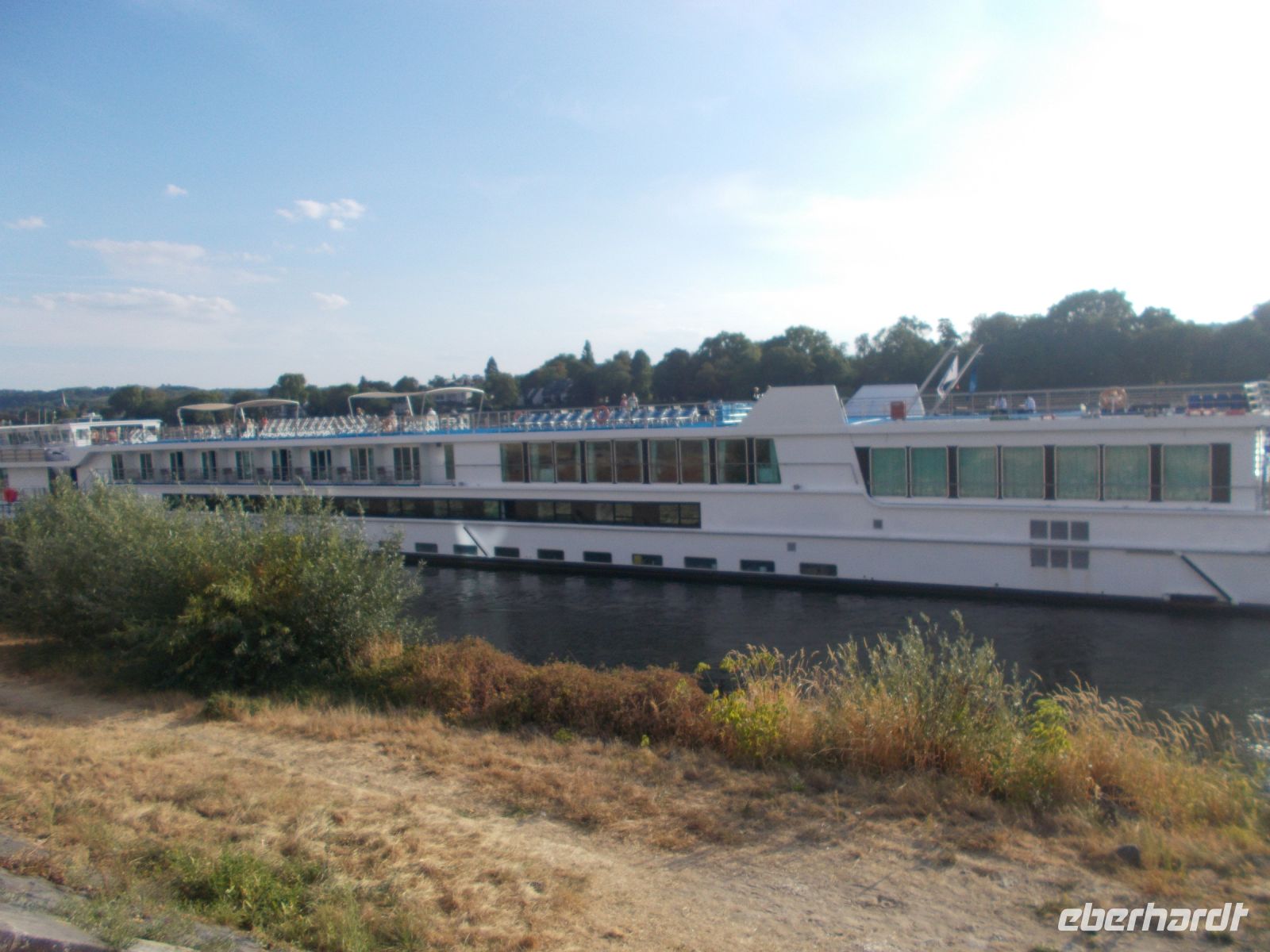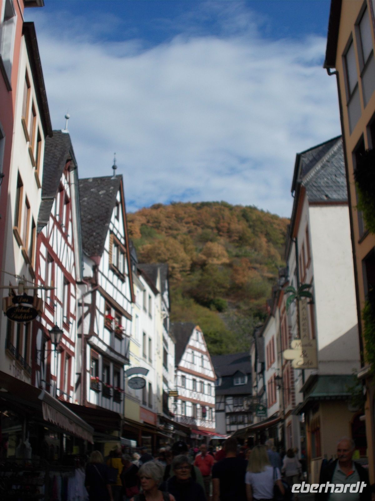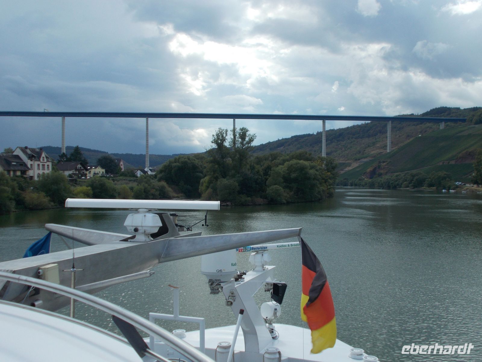 Leider ist das Wetter heute etwas getrübt, aber das beeinträchtigt unsere Laune wenig. Wir finden uns trotzdem zur Eis – Party auf dem „Sonnendeck“ ein. Wir schlemmen von der süßen Verführung und genießen den Ausblick, wohl der schönste Abschnitt auf der Mosel, untermalt mit flotten Rhythmen. Hier hat die Mosel, auf ihrem Weg, viele Schleifen gebildet und sich tief ins Tal eingegraben. Einige der steilsten Weinhänge sind hier zu finden ,wie der Bremmer Calmond. In der Mittelmoselregion, Bernkastel- Kues, wird an diesem Wochenende die Weinkönigin“ Mosella“ gewählt. Dies ist der Grund für eines der größten Weinfeste am Hang des „Doktor Weinberge“. Der Wein ist, mit Abstand, einer der teuersten in dieser Region, verbunden mit einer historischen Sage. Diesen und vor allem - den Federweißen - wollten wir probieren. Dazu hatten wir genügend Zeit und mischten uns, in den bunten Trubel des Volksfestes, unter. Die verschiedensten Vereine, wie Fahnenschwenker, Blaskapellen gaben ihr Bestes und wir zwischendrin. Überall Markttreiben, Weinstände und Verkostungen, dazu noch das altehrwürdige Ambiente der Fachwerkhäuser - PROSIT ! Wer wollte konnte sich das ganze Treiben auch aus einer Gondel des Riesenrades beschauen. Die Crew hatte sich für den heutigen Abend eine Belustigung für uns Gäste einfallen lassen. Mit viel Applaus und Gelächter wurde dies honoriert. Zum Schluss waren alle bei einer Polonaise gefragt. Ein sehr schöner Abend neigte sich, in der Bar, dem Ende zu.