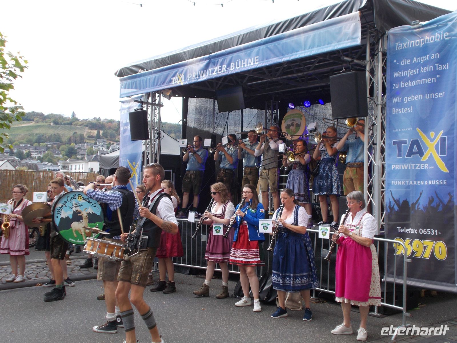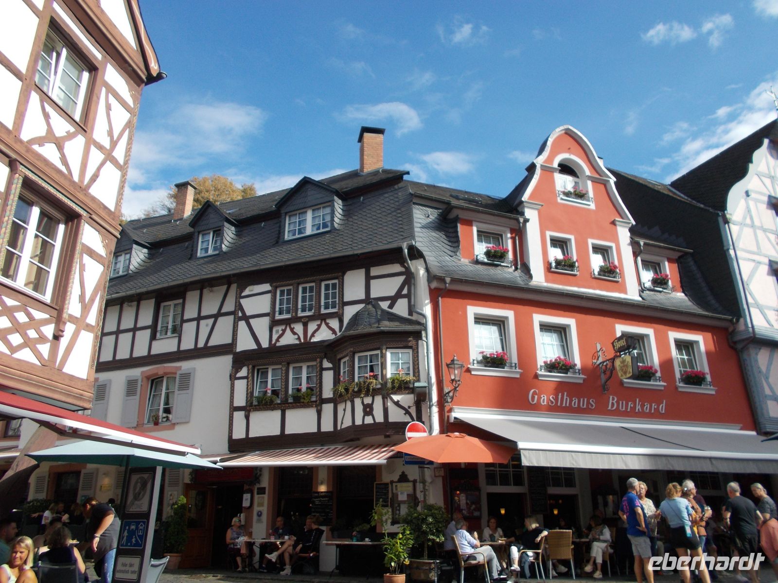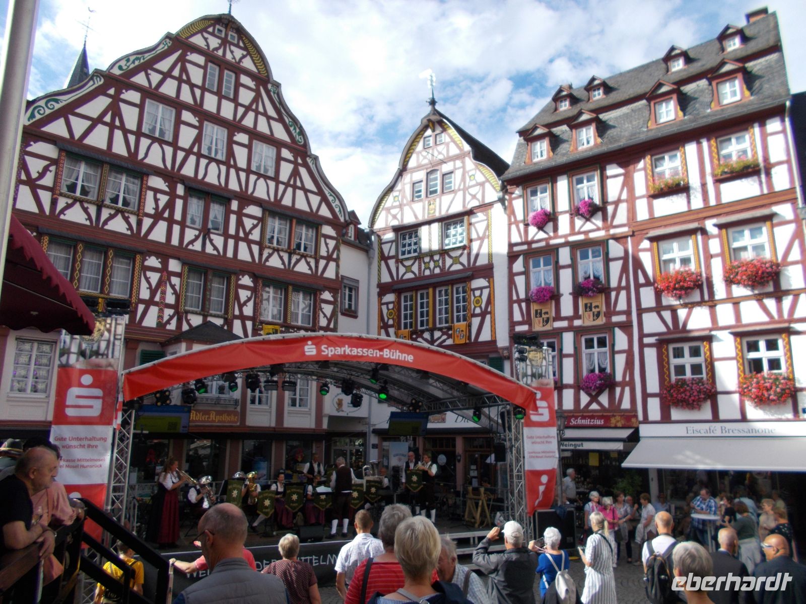 Leider ist das Wetter heute etwas getrübt, aber das beeinträchtigt unsere Laune wenig. Wir finden uns trotzdem zur Eis – Party auf dem „Sonnendeck“ ein. Wir schlemmen von der süßen Verführung und genießen den Ausblick, wohl der schönste Abschnitt auf der Mosel, untermalt mit flotten Rhythmen. Hier hat die Mosel, auf ihrem Weg, viele Schleifen gebildet und sich tief ins Tal eingegraben. Einige der steilsten Weinhänge sind hier zu finden ,wie der Bremmer Calmond. In der Mittelmoselregion, Bernkastel- Kues, wird an diesem Wochenende die Weinkönigin“ Mosella“ gewählt. Dies ist der Grund für eines der größten Weinfeste am Hang des „Doktor Weinberge“. Der Wein ist, mit Abstand, einer der teuersten in dieser Region, verbunden mit einer historischen Sage. Diesen und vor allem - den Federweißen - wollten wir probieren. Dazu hatten wir genügend Zeit und mischten uns, in den bunten Trubel des Volksfestes, unter. Die verschiedensten Vereine, wie Fahnenschwenker, Blaskapellen gaben ihr Bestes und wir zwischendrin. Überall Markttreiben, Weinstände und Verkostungen, dazu noch das altehrwürdige Ambiente der Fachwerkhäuser - PROSIT ! Wer wollte konnte sich das ganze Treiben auch aus einer Gondel des Riesenrades beschauen. Die Crew hatte sich für den heutigen Abend eine Belustigung für uns Gäste einfallen lassen. Mit viel Applaus und Gelächter wurde dies honoriert. Zum Schluss waren alle bei einer Polonaise gefragt. Ein sehr schöner Abend neigte sich, in der Bar, dem Ende zu.