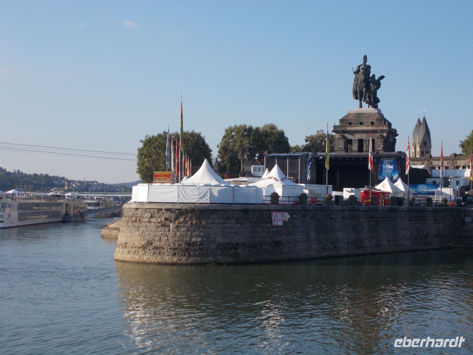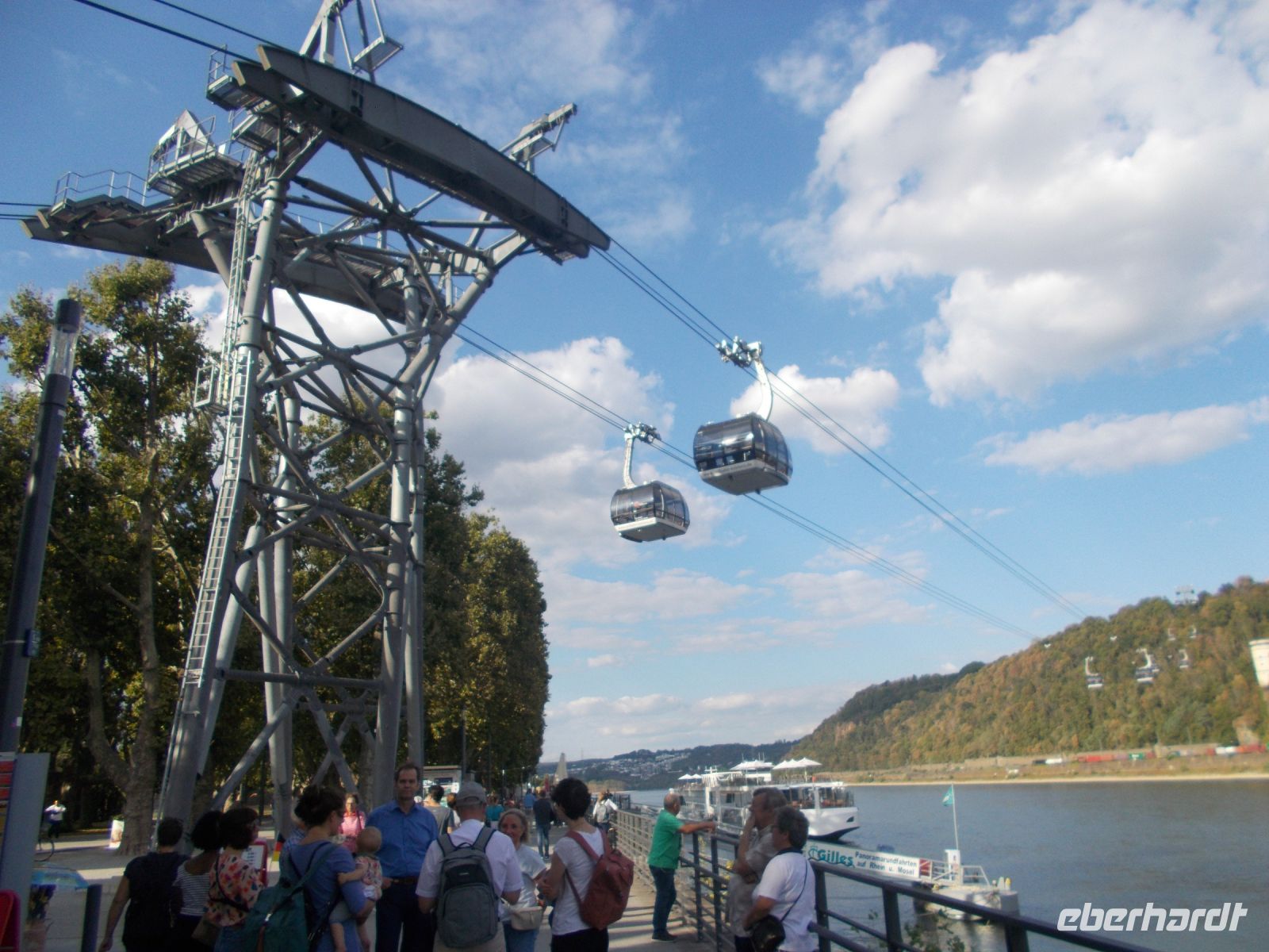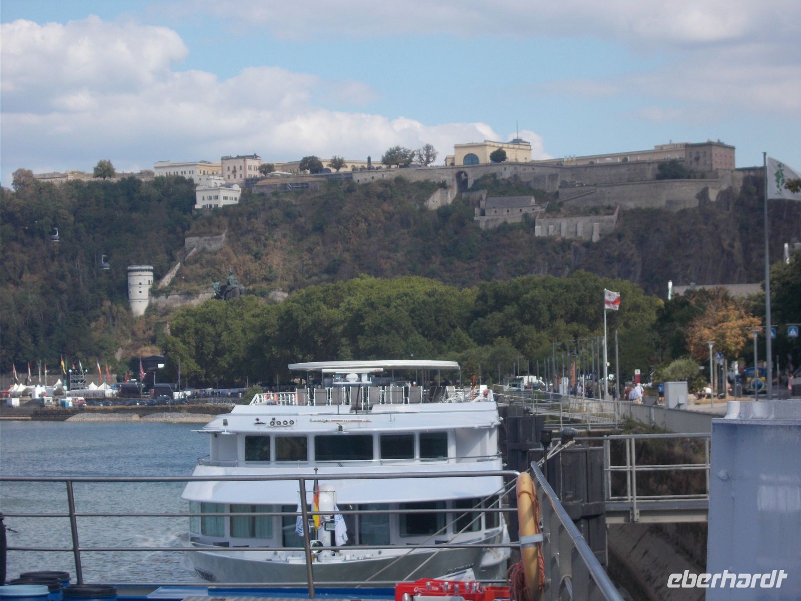 Während des Frühstücks fuhren wir, am Deutschen Eck, vom Rhein in die Mosel. Über uns thronte die Festung Ehrenbreitstein. ( die zweit größte Festung nach Gibraltar ) Sie ist mit einer Seilbahn über den Rhein hinweg zu erreichen, vielleicht ein Ausflug für den Nachmittag. Unsere Gäste wurden in verschiedene Gruppen eingeteilt und so erkundeten wir, unter fachmännischer Anleitung, eine der ältesten Städte Deutschlands. So viele Stationen und immer verbunden mit kleinen Geschichten die zum Schmunzeln verführten.Der Nachmittag war zu freien Verfügung. Es gab noch so viel zu entdecken. Ein Bummel entlang der Mosel oder Rheinpromenade, gekrönt in einem schönen Freiluftrestaurant. Ein ganz entspannter Spaziergang, noch einmal, durch die sehenswerte Altstadt. Die Parkanlagen oder eine Rundfahrt mit dem Bähnle, bis zum Schloss standen auch auf manchem Plan. Wer ganz nach oben wollte, benutzte die Seilbahn und erkundete die große Festungsanlage, mit Blick auf Koblenz. Ein toller Tag – mal ganz individuell zu nutzen. Eigentlich ist der 1.September, aus meteorologischer Sicht, der Herbstanfang auf der nördlichen Halbkugel. Wir hatten den schönsten Sonnenschein, obwohl die ersten bunten Blätter schon fielen. Am Abend gab es ein großes Spektakel. Die Piraten hatten den Speisesaal gekapert und trieben ihr „Unwesen „- zur Freude der Gäste .