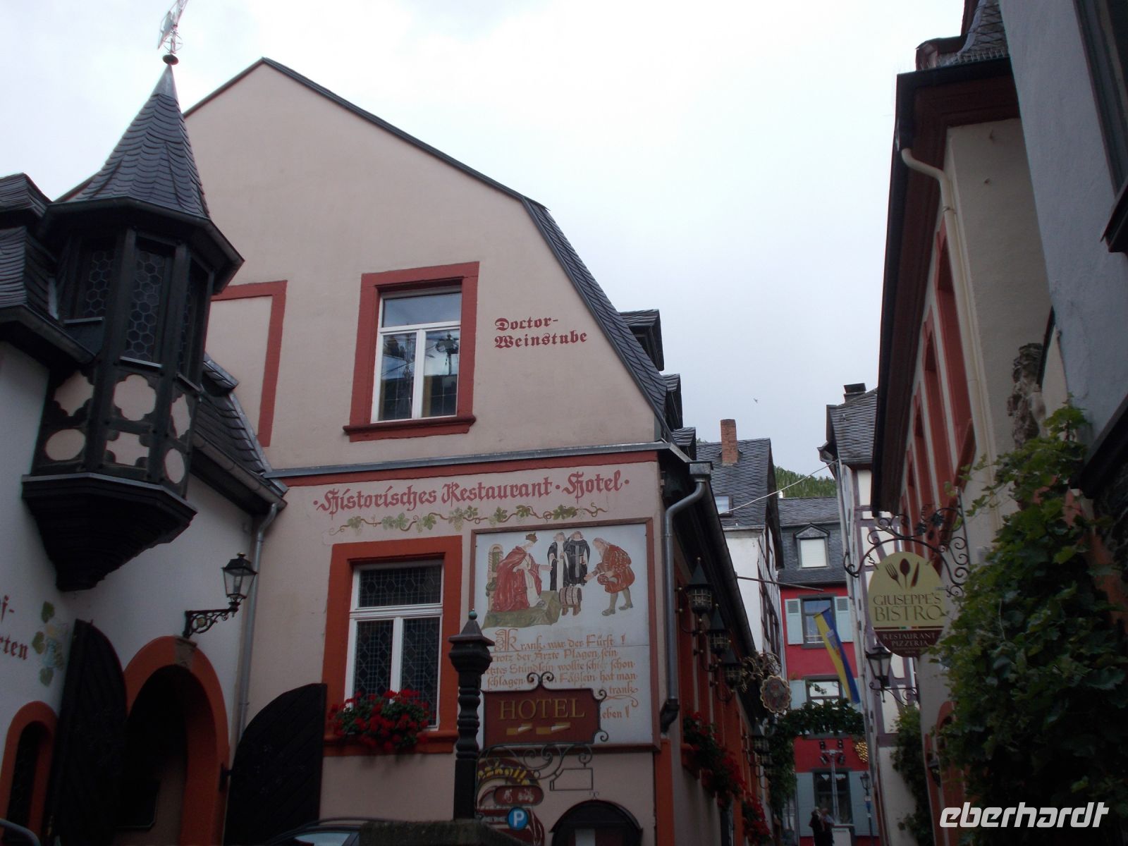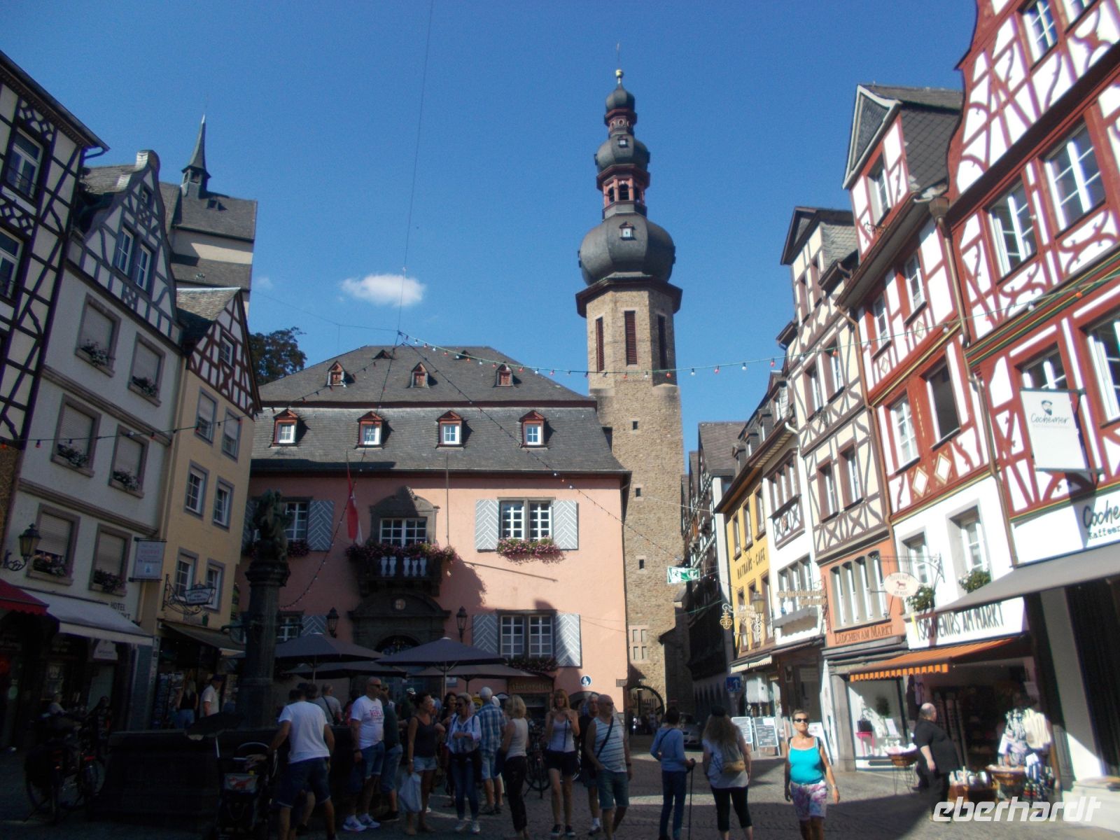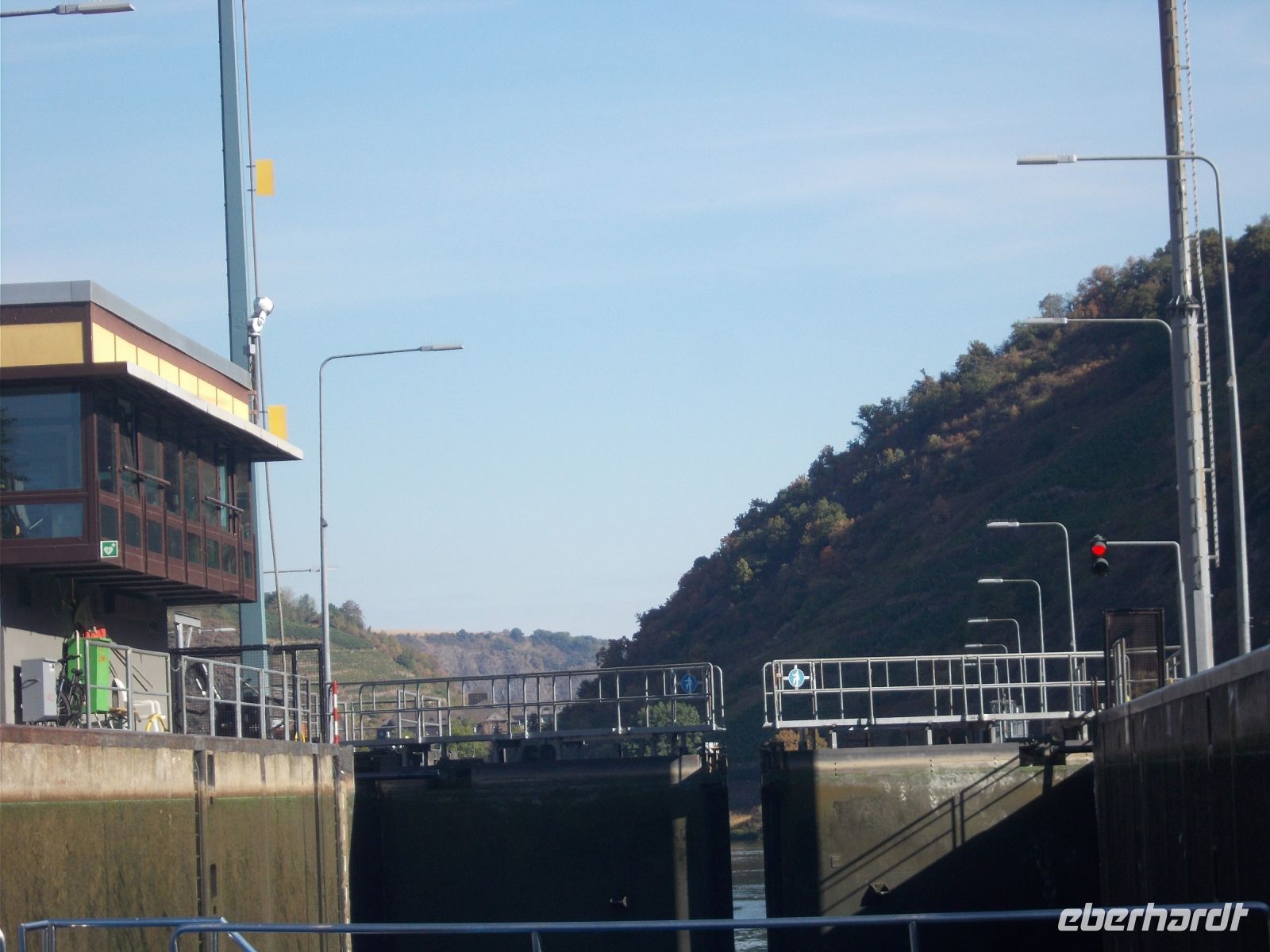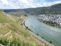 Am Morgen kehrten wir endgültig den Rhein den Rücken. Unter Aufsicht Kaiser Wilhelms – hoch zu Ross sitzend – schipperten wir die Mosel entlang. Kurz nach dem Ablegen fuhren wir in die erste Schleuse der Mosel und wurden 4,7 m nach oben gehoben. Bis Cochem passierten wir viele der steilen Weinberge und sahen stolze Burgen, wobei eine der schönsten selbst die Reichsburg Cochem, vom Berliner Kaufmann Jacques Ravene, ist. Regina verkürzte uns die Zeit und erklärte uns die Mosel und die dort angebauten Weine, die von sehr guter Qualität zeugen. Im Supermarkt werden wir diese Weine nicht finden, aber in den Weinhandlungen bekommt man eine gute Beratung. Hinter den Begriffen wie „Zellers schwarze Katz“ oder „Kröver Nacktarsch“ versteckt sich nicht nur eine launige Geschichte, sondern auch hervorragender Wein. Am Nachmittag holten uns die Stadtführer zu einem Rundgang ab. Von der Brücke hatten wir einen tollen Blick zur Reichsburg und den zahlreichen kleinen Winzerhäusern, die das Stadtbild prägen. Unsere Stadtführerin zeigte uns den längsten Eisenbahntunnel Europas, der im Zuge der Moselbegradigung gebaut wurde. Sie gehört zu der ältesten Familie von Cochem und ihrem Opa verdanken wir das Pinnerkreuz. Er war im Besitz des darunter liegenden Weinberges. Sie zeigte uns die kleinen verwinkelten Gassen, die heute leider kaum noch bewohnt sind. Erzählte uns die Geschichte vom Ziegenbock – Brunnen und erklärte uns die fantastischen neuen Fenster der Kirche. Wir wurden etwas „Pflastermüde“ und genehmigten uns, in einem der lauschigen Cafes entlang der Mosel - Promenade, eine Auszeit. Am Abend konnten wir den vielen Weinwirtschaften noch einen Besuch abstatten, unser Schiff hatte über Nacht da fest gemacht.