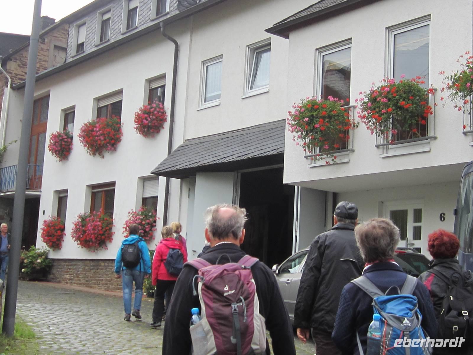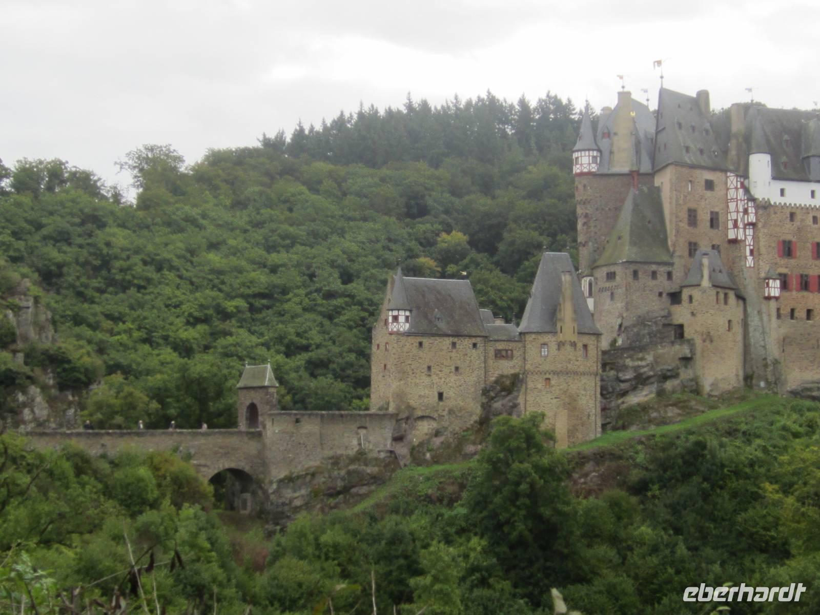 Nach einem kräftigen Frühstück bringt uns unser Midibus nach Karden, wo wir uns mit unserer Wanderführerin Anja treffen. Wir beginnen heute mit einer gemütlichen Wanderung entlang des Moselkerns, vorbei an der Hofkapelle Windhausen, durch Felder und Wald, entlang des Eltz-Baches, zu einer der schönsten Burgen Deutschlands, zur Burg Eltz. Mindestens 3 Linien der Eltz-Familie lebten hier in Eintracht, Die Linie Eltz-Kempenich zählt zu den ältesten Adelsgeschlechtern Deutschlands, aber ein Eltz-Bürresheim, General in französischen Diensten, verhinderte glücklicher Weise, dass die märchenhafte Burg 1689 zerstört wurde.