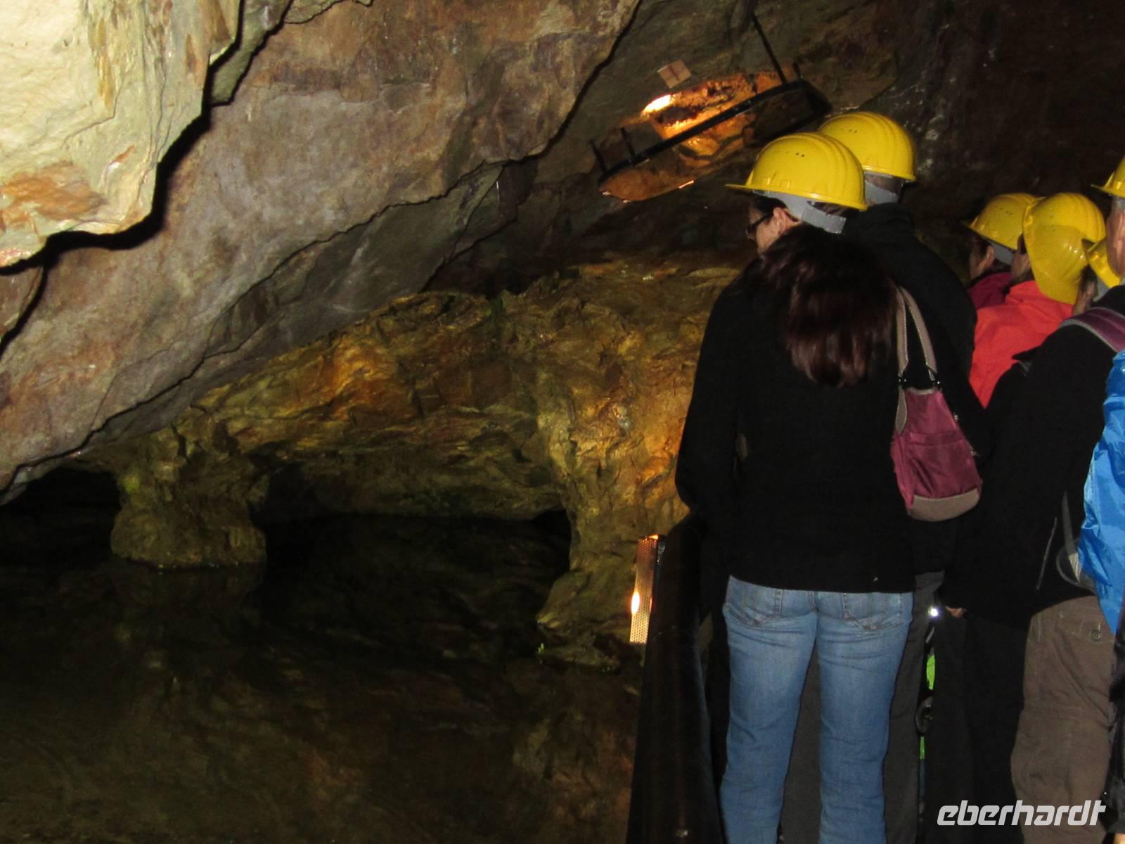 Der Wetterbericht für heute war grauenvoll. Da niemand im strömenden Regen mit Windböen wandern möchte, entschließen wir uns kurzer Hand zu einer kleinen Programmänderung, auf die wir uns alle freuen.Unsere neue Wanderführerin, die auch Anja heißt, lädt uns nach Idar-Oberstein ein. Wir wandern zum Steinkaulenberg und besuchen die Edelsteinmine im Morschhäuser Stollen. Hier kann uns der Regen nichts anhaben und bei der Führung erfahren wir alles über Druse, Mandel und Geode. Am Ende des Rundganges begutachten wir Gerätschaften, mit denen die armen Hunsrücker seinerzeit die kostbaren Edelsteine wie Bergkristalle, Quarzite und Mineralien förderten und zu Schmuck verarbeiten ließen.