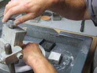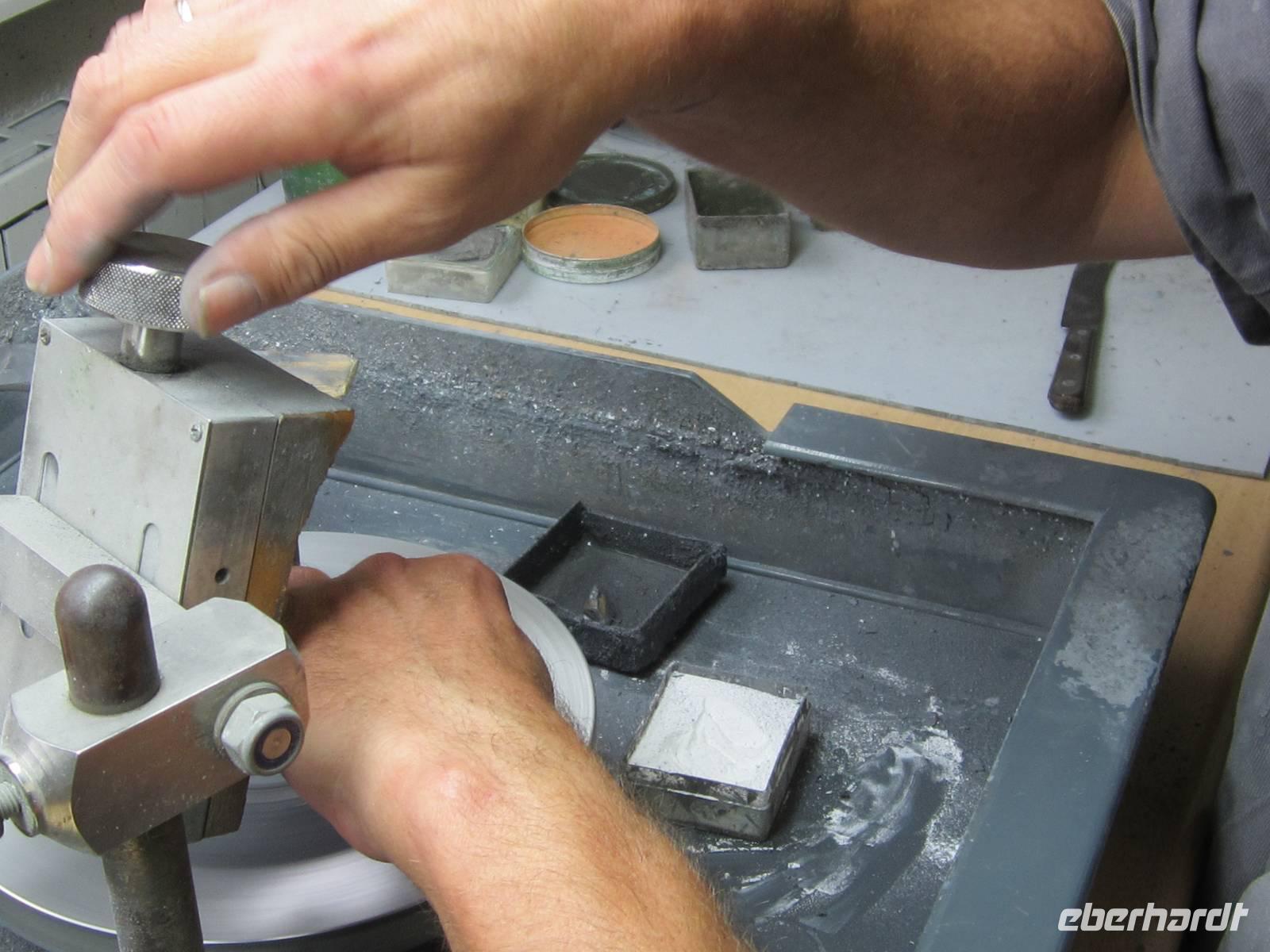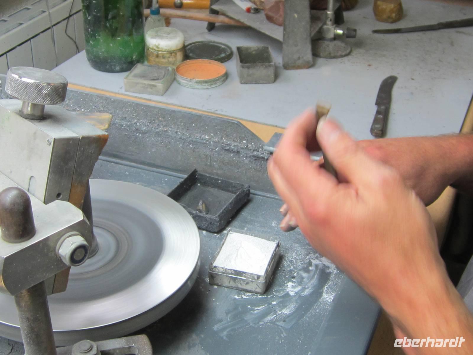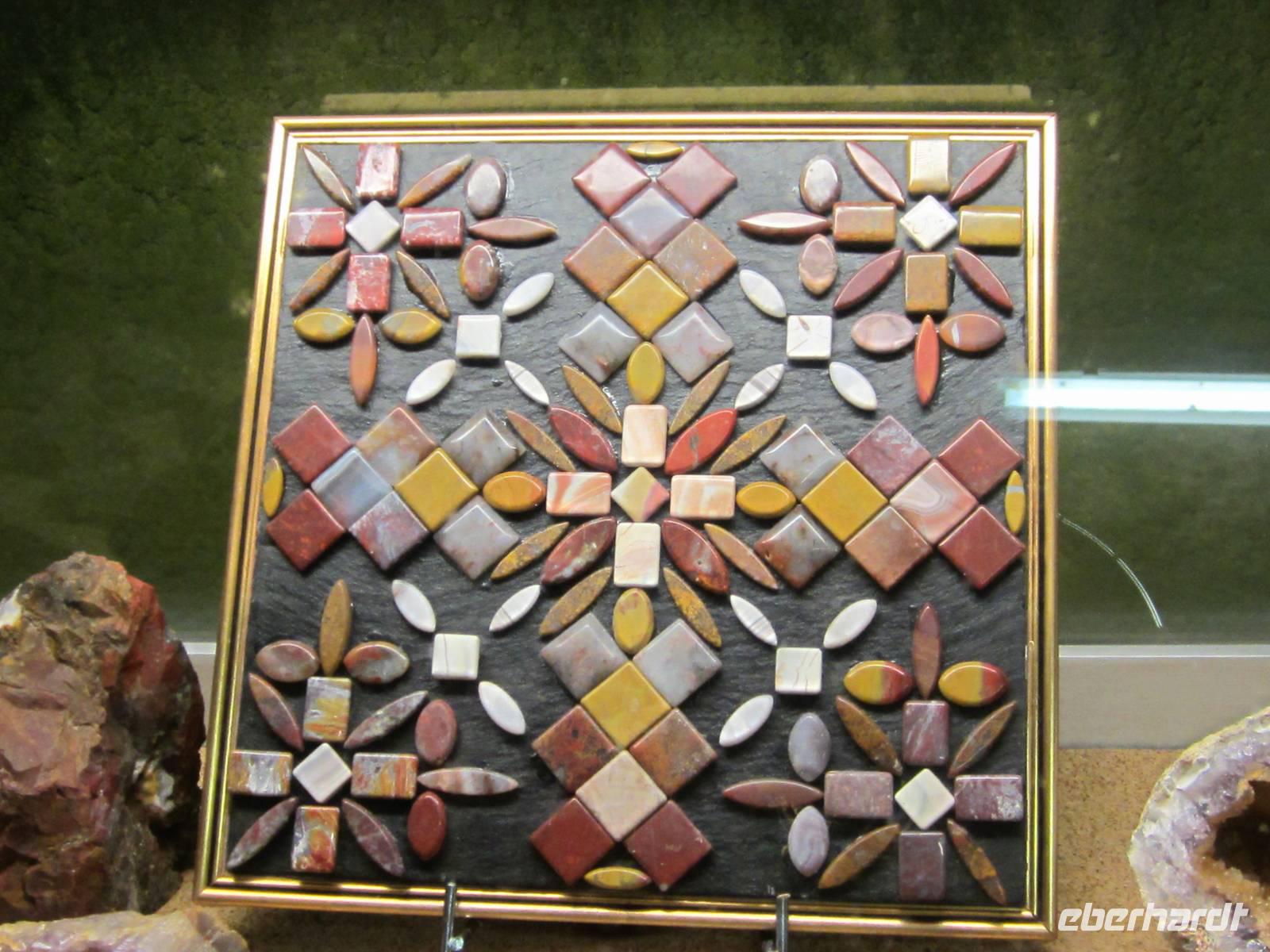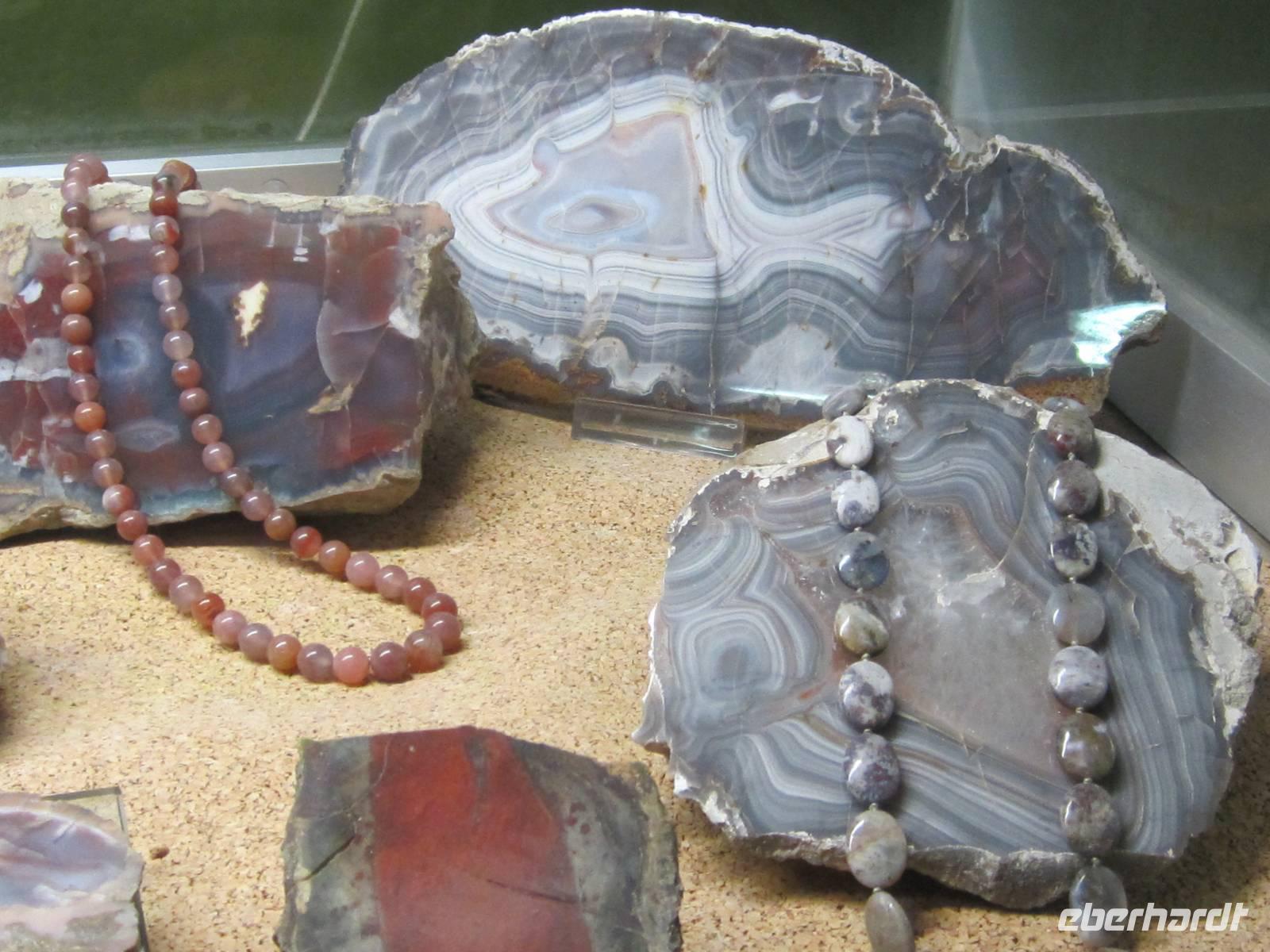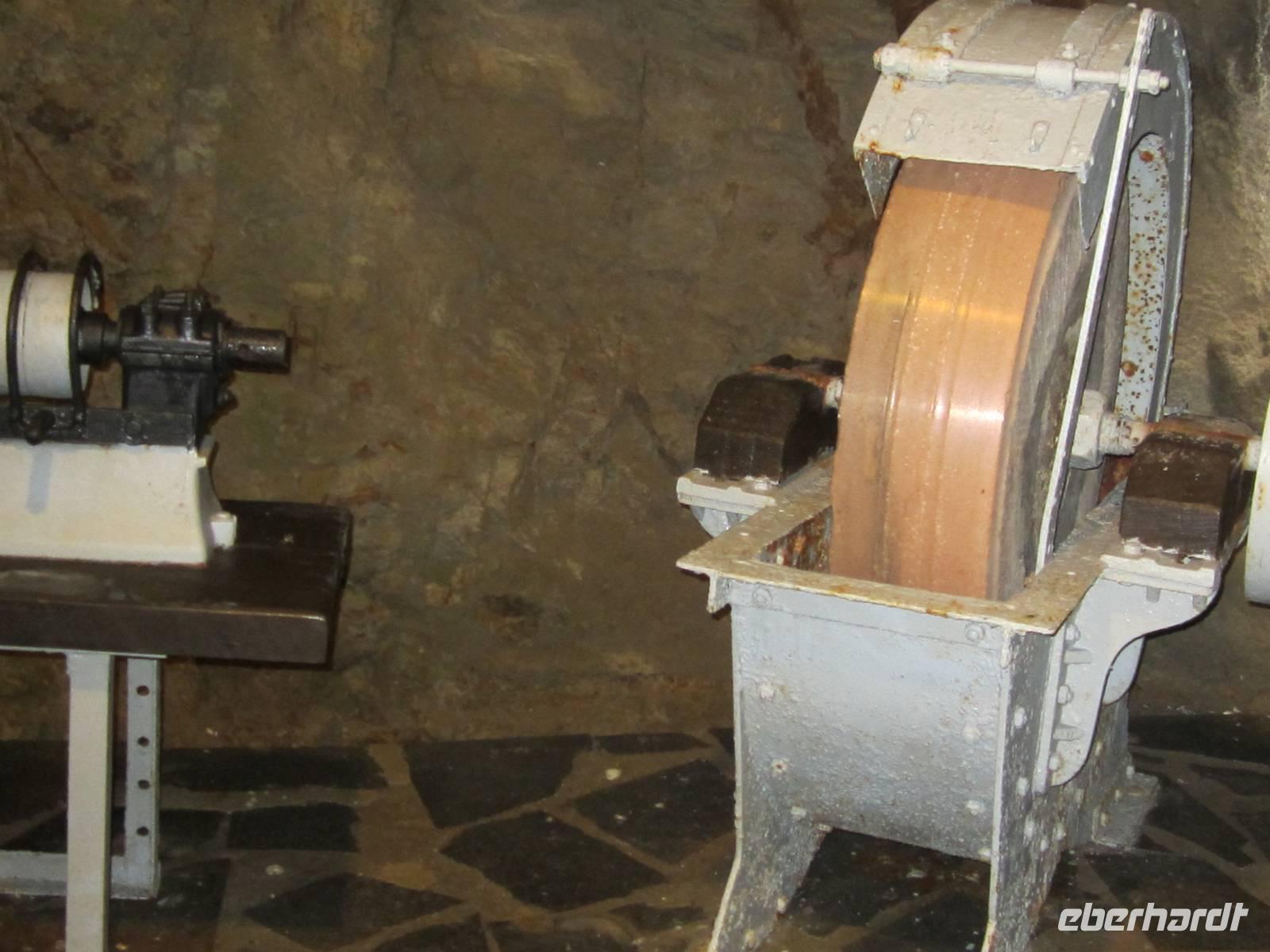 Weiter gelangen wir nach einer kleinen Regenwanderung durch den Wald zur Weiherschleife und besichtigen hier einen Schürfplatz, wo Mineralienliebhaber und Kinder nach kleinen Kostbarkeiten suchen können. Wir bevorzugen heute eine Stärkung im Café und wandern dann weiter nach Tiefenstein. In einer Edelsteinschleiferei schauen wir dem Meister über die Schulter und verfolgen das Schleifen eines Schmucksteines von Anfang bis Ende. Bereitwillig beantwortet uns Meister Eckhardt unsere Fragen und präsentiert uns stolz den vollendeten Stein. Erkan holt uns wieder ab und chauffiert uns zum wohlverdienten Abendessen in unser Hotel.