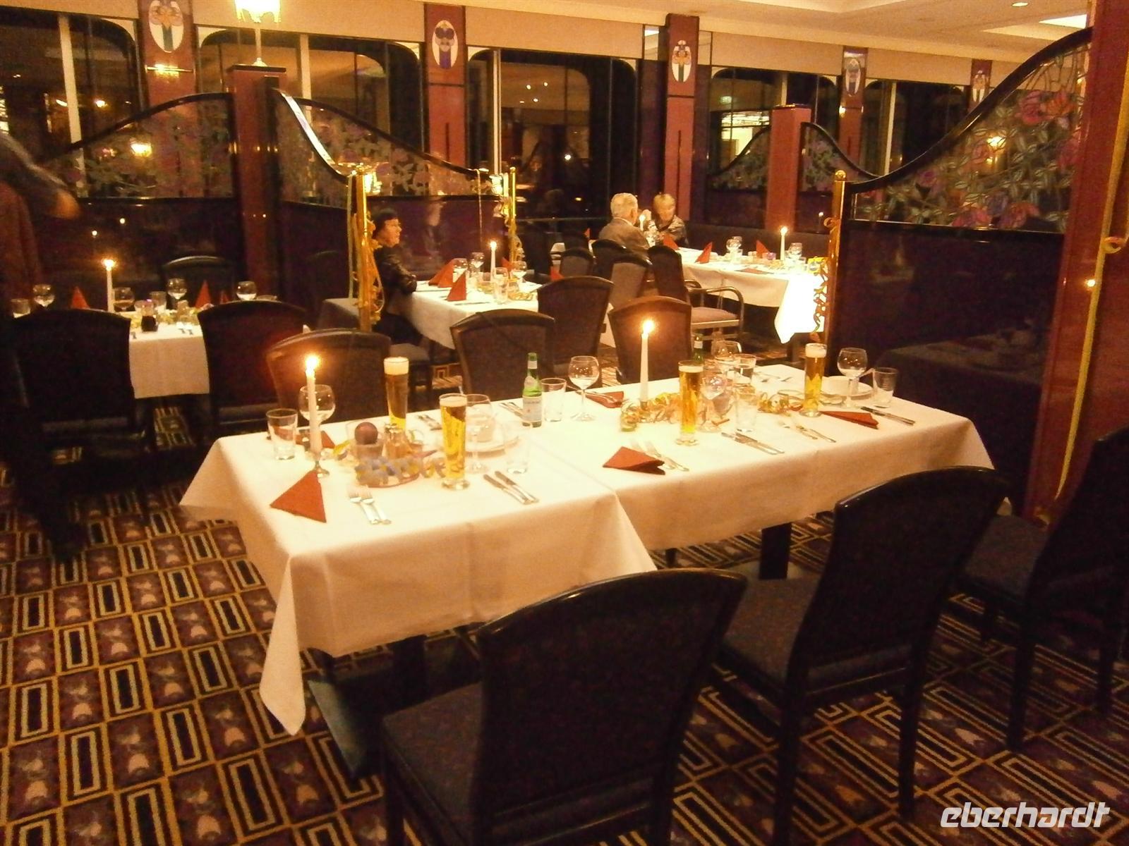 Schließlich haben wir uns um 16 Uhr wieder am Bus getroffen, um ins Hotel zurückzufahren. Einige Gäste sind noch etwas länger in der Stadt geblieben und sind dann mit der U-bahn zurückgekommen. Nun hatten die meisten Gäste erstmal schön Zeit, um sich im Hotel zu entspannen, bevor um 19 Uhr das Silvester-Abendessen begann. Pünktlich um 7 Uhr trafen dann die Gäste im Restaurant des Hotels ein, und ein leckeres Abendessen am Buffet erwartete uns. Wir ließen uns es richtig schmecken, bevor unser Musiker gegen halb 9 die Musik eröffnete und wir so den Silvesterabend begannen. Es haben sich alle Gäste entschieden, im Hotel zu bleiben, denn draußen regnete es und da wollte niemand in die Innenstadt. Und so genossen wir einen schönen Abend im Hotel, mit Livemusik, Wein, Bier und in einer schönen Stimmung. Es gab viele Tanzrunden, eine Bolognese, viel zu lachen, Luftschlangen, Wunderkerzen, ein Geburtstagskind und viel Vorfreude auf das neue Jahr. Um 12 war es dann soweit, mit einem Sekt stoßen wir alle an - es war schön, alle haben sich gegenseitig ein frohes und gesundes neues Jahr gewünscht. Ich möchte Ihnen, liebe Gäste die mit auf dieser Reise waren und diesen Bericht jetzt lesen, ganz herzlich DANKE sagen für den schönen Abend, den ich mit Ihnen verbringen durfte! Es hat mir wirklich Spaß gemacht, an jedem Tisch wurde ich herzlich von Ihnen empfangen, und wir hatten einiges zu schmunzeln und zu lachen! Gegen halb 2 waren dann die letzten Gäste nach einem schönen Abend ins Bett gegangen und so hat das neue Jahr 2012 für uns alle begonnnen.
