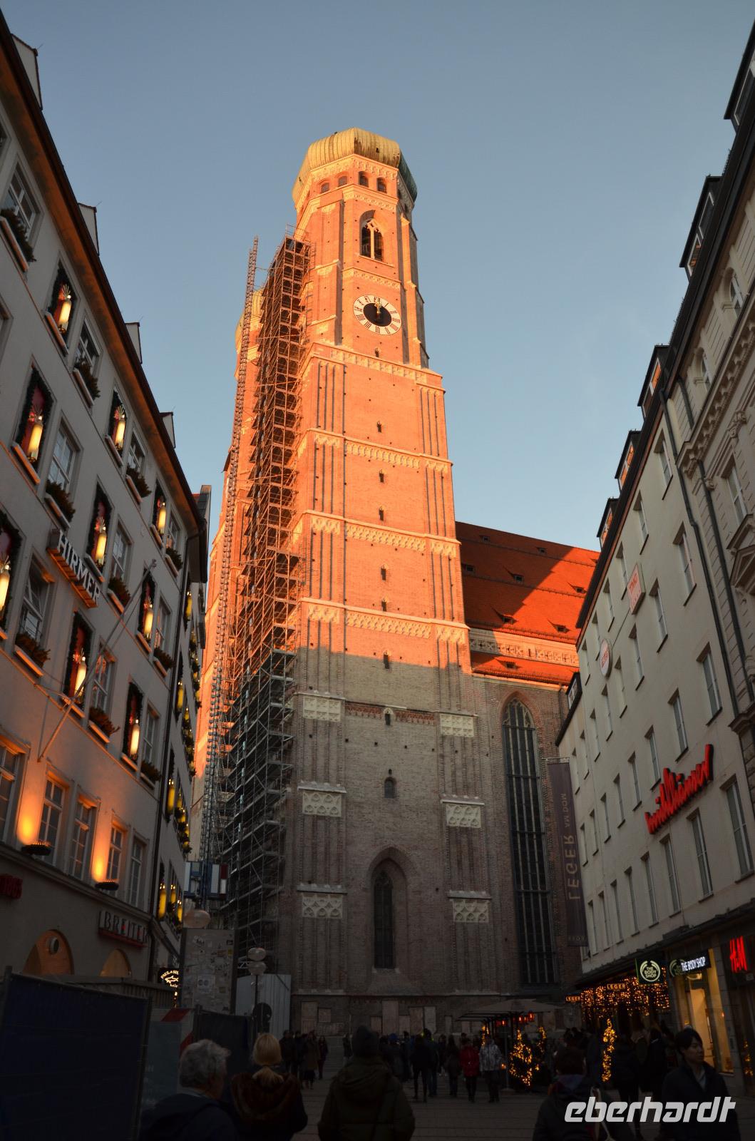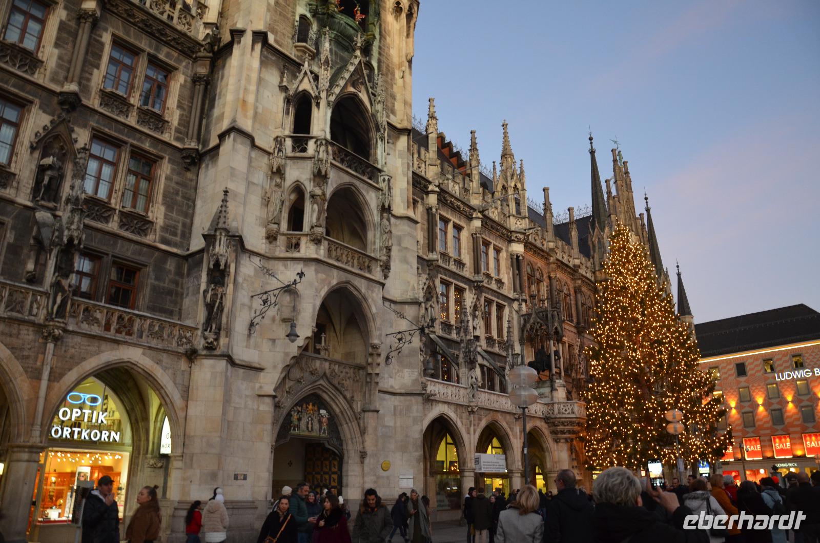 Am Montag ist es endlich so weit! Die große Fahrt in die pulsierende Metropole Bayerns nimmt ihren Lauf! Auch, wenn einige etwas zu zeitig die wohlige Wärme des heimischen Schlafgemachs zum Reiseantritt verlassen müssen, können wir uns wenigstens über sehr milde Temperaturen und Sonne satt freuen. Zumal sich im komfortablen Reisebus immer eine Gelegenheit findet, um die Fahrt mit geschlossenen Augen zu genießen. Mit Matthias, unserem routinierten Genie hinterm Steuer, sind wir in mehr als nur guten Händen. Seine Aufopferungsbereitschaft für die Gruppe zeigt sich bereits bei der Anreise, da er mit mindestens 1-2 Nuancen dunklerer Gesichtsfärbung in München ankommt. Wenigstens hat er reichlich Vitamin D getankt und ist voller Glücksgefühle und bester Laune :)! Was so ein wenig Sonne alles vermag ;). Die Fahrt vergeht wie im Flug und schon erreichen wir pünktlich 15 Uhr unser angestrebtes Ziel. Um die Zeit gut auszufüllen und die letzten Sonnenstrahlen des Tages zu nutzen, starten wir direkt mit Alexandra in unseren anberaumten Stadtrundgang. Dazu lassen wir uns mit den Menschenmassen in den Katakomben des U-Bahn-Netzes treiben und landen schließlich am Karlsplatz, einer der verkehrsreichsten Plätze Europas, was wir durch unsere Busanreise zuvor aus eigener Erfahrung bestätigen können. Auch als Stachus bekannt, handelt es sich hierbei um einen Platz nach den Plänen von Gabriel von Seidl, der von einem halbkreisförmigen Rondell mit Gebäuden im neobarocken Stil umgeben ist. Uns fällt vor allem die noch zur Weihnachtszeit aufgebaute Eislaufbahn mit passenden Ständen ins Auge - der „Münchner Eiszauber". Zum einen frohlockt der Geruch von Glühwein und zum anderen ziehen die vielen kleinen Lämpchen die Aufmerksamkeit magisch auf sich. Nachdem wir Alexandras Ausführungen zu diesem Ort aufmerksam gelauscht haben, passieren wir das geschichtsträchtige Karlstor. Nun begeben wir uns immer entlang auf der berühmten Einkaufsmeile, der Neuhauser Straße. Die Geschäftsfülle ist endlos und dementsprechend sind auch ausreichend Menschen unterwegs, die ihr Weihnachtsgeld lohnend ausgeben wollen. Wir stoppen als nächstes bei der St. Michael Kirche und ich bin schon fast überrascht, dass wir noch keinen verloren haben ;). Bei diesem Gebäude handelt es sich um eine katholische Jesuitenkirche aus dem 16. Jahrhundert, die dem Erzengel Michael geweiht ist. Ein wenig weiter verweilen wir kurz am „Hirmer-Stammhaus" oder auch dem Geschäftshaus „Zum schönen Turm", welches seinen Namen durch den einstig hier befindlichen Torturm der mittelalterlichen Stadtmauer Münchens verdankt. Die Maße dessen sind auf dem Fußweg verewigt und als Zeichen der einstigen Grenze, wird die Neuhauser Straße zur Kaufinger Straße. Bevor wir diese allerdings beschreiten, biegen wir ab, um uns die wunderschöne „Frauenkirche" anzusehen. Der „Dom zu Unserer Lieben Frau" ist der volle Name des Wahrzeichens der Bayrischen Landeshauptstadt. Die römisch-katholische Kathedrale wurde 1494 geweiht und besteht aus einem dreischiffigen, spätgotischen Backsteinbau mit zwei knapp 100 Meter hohen Türmen (Nordturm und Südturm), die sich über die Stadtkulisse erheben. Die eher einfach gehaltene Innenausgestaltung repräsentiert eine schlichte Eleganz, die trotzdem mit zahlreichen Mythen, wie dem „Teufelstritt", ihre Reize hat. Weiter geht es zu wohl einem der bekanntesten Plätze der Stadt - dem Marienplatz. Von hier aus kann man das „Neue Rathaus" bestaunen, bekommt zusätzlich das „Alte Rathaus" gegenübergestellt und hat obendrein die „Mariensäule" und den „Fischbrunnen" mit im Blick. Eines der schönsten Fotomotive, was bei unserem Besuch zusätzlich durch einen prächtigen Weihnachtsbaum komplettiert wird. Im Anschluss schlängeln wir uns durch die „Platzlgassen", dem einstigen Rotlichtmilieu der Stadt und gelangen direkt zum Eingang eines weiteren Wahrzeichens - dem „Hofbräuhaus". Damit jeder auch einen richtigen Eindruck vermittelt bekommt, durchqueren wir die vollen Hallen, um uns danach zum Hinterausgang wieder hinaus zu schleichen. Alexandra wird aber dabei nicht müde, einen Besuch trotz des Trubels zu empfehlen, da man sich auch ins weitaus ruhigere Obergeschoss des Gebäudes zurück ziehen kann. Ein wenig weiter endet auch schon unsere wunderschöne Führung in atemberaubender Kulisse bei einer Feuerzangenbowle am Isartor. Einen besseren Einstieg, als wir ihn mit Alexandra hatten, hätten wir uns nicht wünschen können. So genießen wir ein letztes Mal das weihnachtliche Flair am Isartor und marschieren dann mit flottem Schritt zurück zum Hotel, um unsere Abendbrotzeit einzuhalten. Hier kommen nun wieder alle zusammen, um den ersten Abend gemeinsam mit bayrischen Köstlichkeiten zu begehen. Was für ein Auftakt!