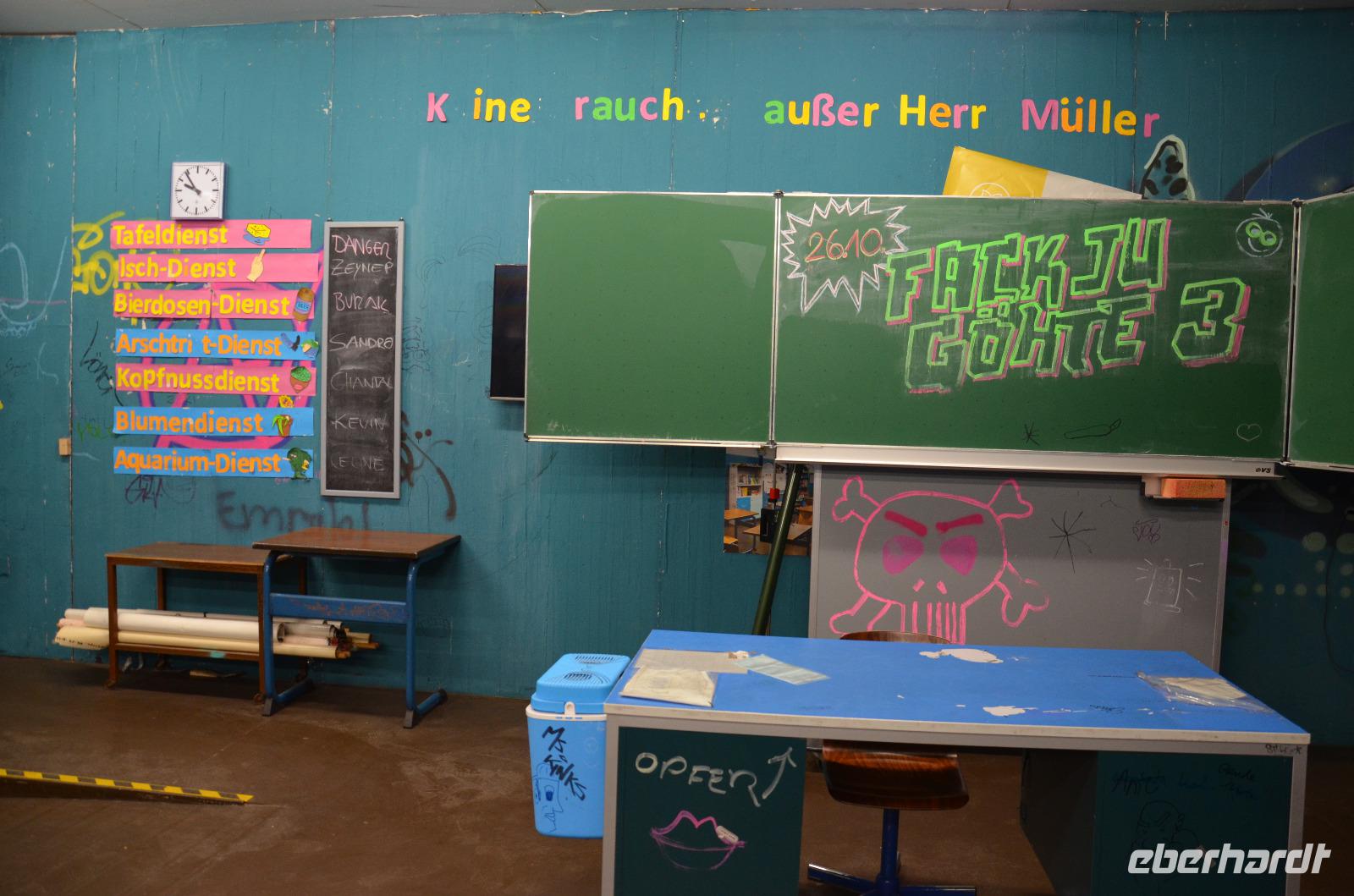 Wir starten in unsere knapp zwei stündige Führung pünktlich 10:15 Uhr mit Laurenz. Dabei besuchen wir verschiedene Filmsets wie „Jim Knopf", „Big Game" und die Nachbildung der „Air Force One". Besonders beeindruckend ist der enge Einstieg in das originalgetreu nachgebaute U-Boot aus dem Klassiker „Das Boot". Wer hier Beklemmungen hat, sollte von der Innenbesichtigung lieber absehen und für alle anderen, ist es ein wirklich spannendes und interessantes Abenteuer, sich einmal mit Schwung durch eine offene Luke zu befördern. Im Klassenzimmer von „Fack ju Göhte" werden wir selbst zu Darstellern und produzieren einen Kurzfilm, der in die Originalaufnahmen des eigentlichen Werks eingefügt wird. Chantal gibt dabei eine überragende Vorstellung! Auch zum Einsatz kommen Freiwillige bei der Vorführung animierter Inhalte sowie bei den Stunts und Special Effects, wo wir eine Zugentgleisung nachahmen. Wer möchte, kann am Ende der Führung die erbrachten Leistungen in Form einer CD als Andenken mit nach Hause nehmen und der Familie stolz sein schauspielerisches Talent beweisen. Wir hatten jedenfalls einige Naturtalente in der Gruppe! Nach einer kurzen Aufwärmphase am Glühweinstand begeben wir uns im Bus wieder zurück nach München. Nun beginnt die eigentliche Freizeit des Tages. So fährt ein Teil der Gruppe zurück zum Hotel, um seinen Tag entspannt zu gestalten und der Großteil wird von unserem lieben Busfahrer am „Viktualienmarkt" abgesetzt, einem Lebensmittelmarkt mit langer Tradition. Da auch dieser in Laufweite zum Hotel liegt, können wir von hier aus bequem in circa 30 Minuten gemütlich unseren Heimweg antreten, wann immer wir fertig sind.