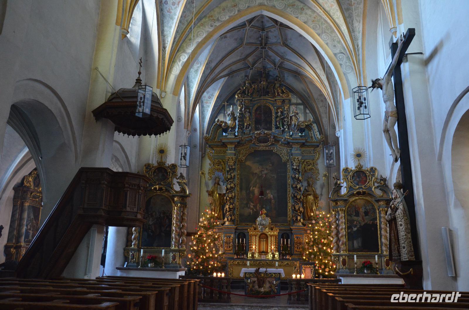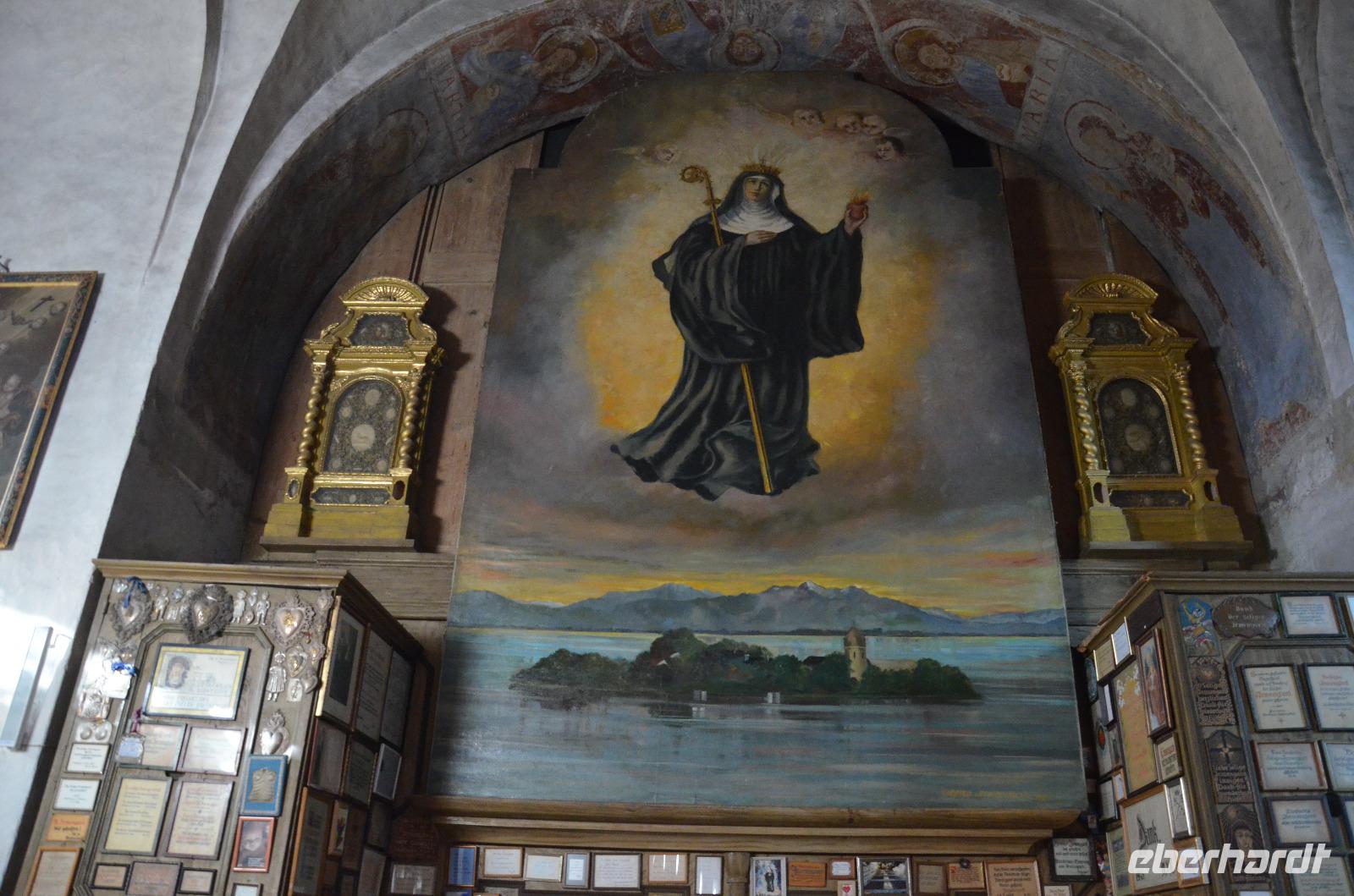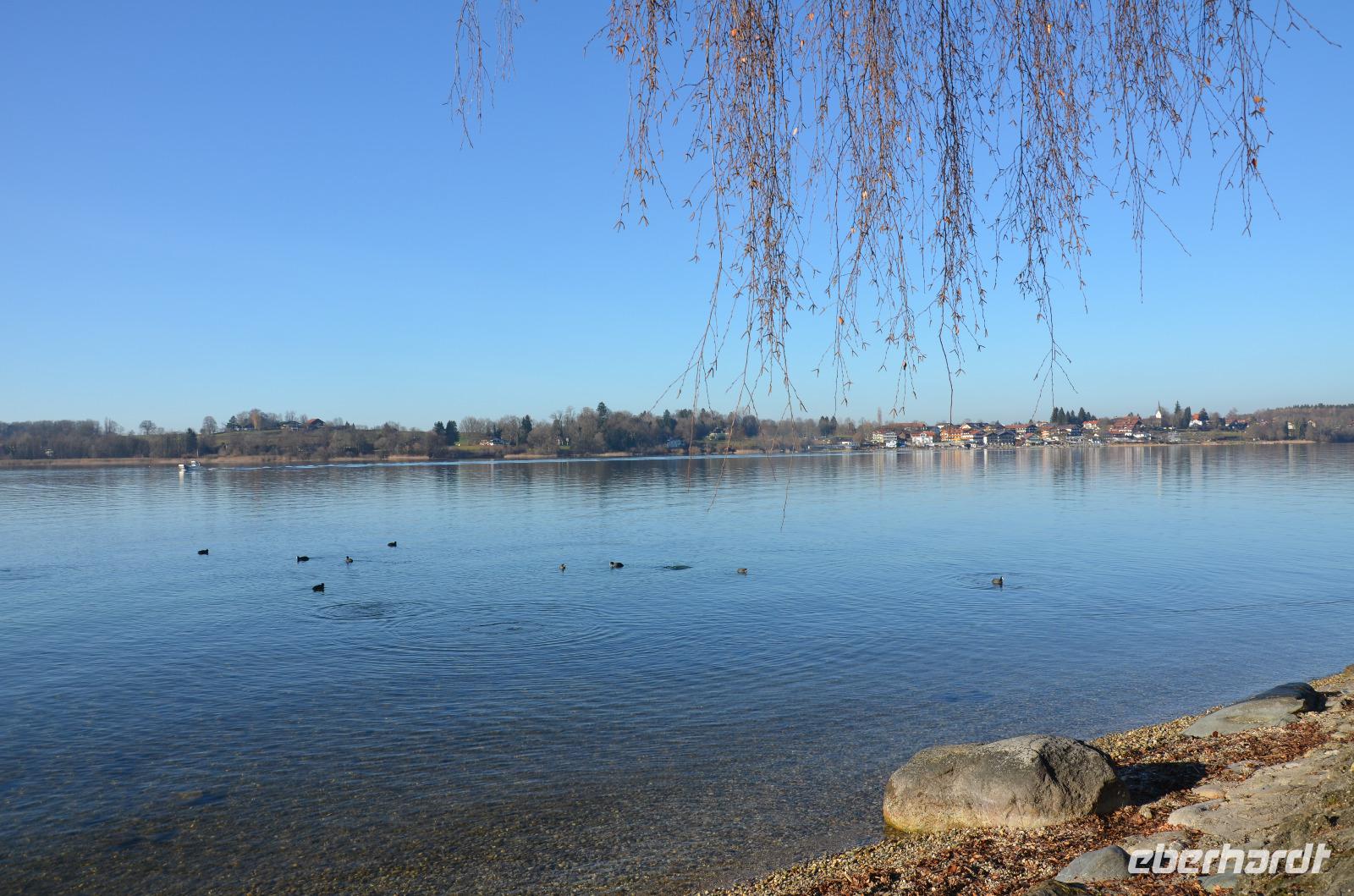 Pünktlich 12:00 Uhr legen wir mit „Berta", unserem Boot, ab und begeben uns in einer 30 minütigen Fahrt hinüber zur Fraueninsel, wo bereits unsere Reiseleiterin auf uns wartet. Auf dem Schiff wird natürlich nochmals auf das Neue Jahr angestoßen, mit Kinderpunsch, wie mir gesagt wurde. Was nun wirklich im Becherchen war, weiß nur der Genießer ;). Die Stimmung ist jedenfalls hervorragend! Bei unserer einstündigen Begehung über die Insel besichtigen wir die ehrwürdige „Klosterkirche Frauenwörth", eine Abtei der Benediktinerinnen, welche 782 nach der Gründung von Herzog Tassilo III geweiht wurde. Hauptgegenstand des Klosters ist die Verehrung der seligen Äbtissin Irmingard, welche eine ganze Wand voller Danksagungen inne hat und die Schutzpatronin des Chiemgaus darstellt. Auf dem Lindenplatz, dem höchsten Teil der Insel mit einer Höhe von 8 Metern, kommt unsere Führung zu einem Ende. Der Platz bildet dabei die Mitte der Insel und trennt sie in einen Südteil und einen Klosterteil. Außerdem beherbergt er die berühmten „1000 Jährigen Linden" (Tassilolinde und die Marienlinde), welche laut der Überlieferung und auch der Lehre der modernen Geomantie von dem besonderen Energienetz profitieren, auf dem sich die Insel und insbesondere das Kloster befinden. Im Anschluss an die Führung begeben wir uns auf einem Teil des 1,5 Kilometer langen Rundwegs um die Insel zurück zum Bootsanleger. Das Wetter ist einfach nur traumhaft und die damit einhergehende verträumte Stimmung auf der Insel, die sich in einem regelrechten Winterschlaft befindet, bezaubernd. Vielleicht ist es aber auch der Energieschub des Ortes, der uns beflügelt. Wir haben heute jedenfalls viel gelernt und wissen nun auch, dass es neben der Herreninsel und der Fraueninsel, die wenig bekanntere Krautinsel gibt, welches die Kleinste unter ihnen ist. Nach unserer Rückankunft auf dem Festland kehren wir erst einmal, wie es sich in Bayern gehört, für eine Brotzeit ein. Bei einem bayrischen Wurstsalat oder Obazda mit Brezen und einer Maß lassen wir den Tag ausklingen und begeben uns im Anschluss auf die Heimfahrt. Durch die Lautsprecher ertönen Kinderlieder und alle singen begeistert mit. Diese Vorliebe war mir noch nicht bekannt :). Im Hotel angekommen begehen wir unseren letzten gemeinsamen Abend bei einem delikaten 3-Gang-Menü und lassen die vergangenen Tage Revue passieren. Was für eine gelungene Reise!
