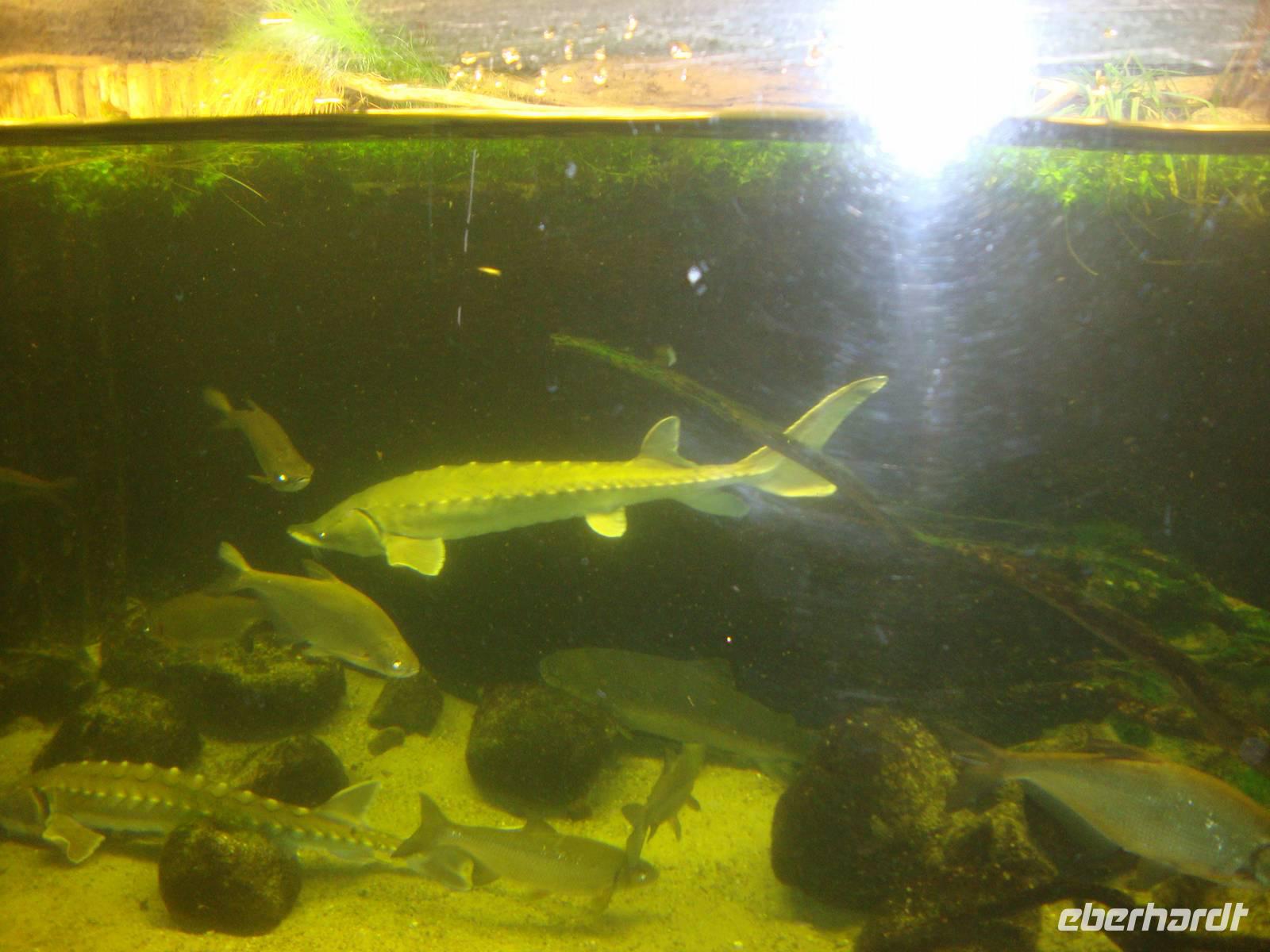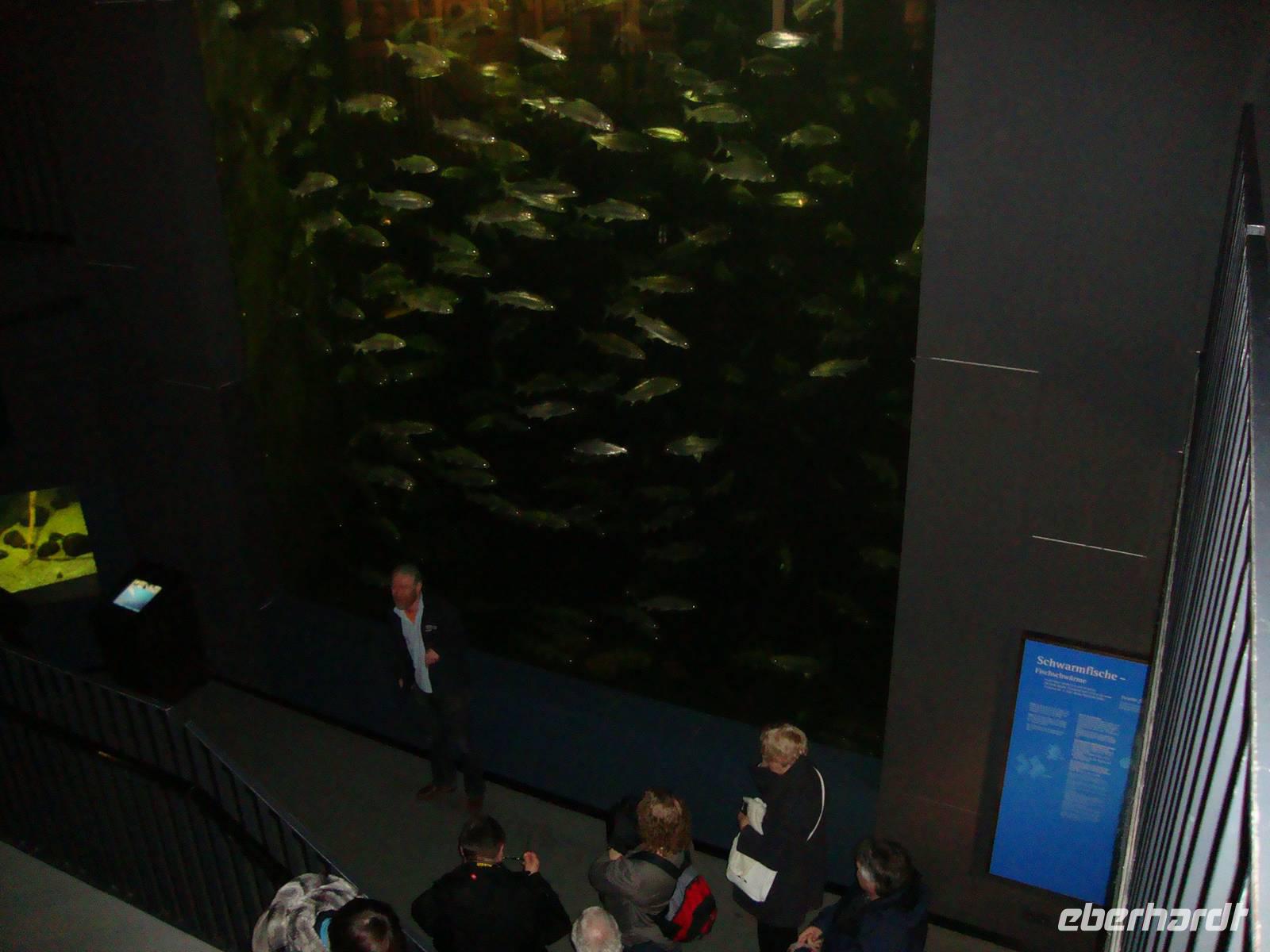 Nach dem ebenfalls sehr ansprechend aufgelegtem Frühstück, stand heute nochmals ein Besuch in Waren, dem touristischen Zentrum der Müritz, auf unserem Programm. Das "Müritzeum", mit dem größten Süßwasseraquarium, rd. 100.000 Liter Fassungsvermögen, Deutschlands, war unser erstes Besuchs - Ziel. Vor dem Eingang wurde das Gruppenfoto gemacht, damit alle Reisegäste eine bleibende Erinnerung erhalten können. Anschließend teilten wir uns in zwei Gruppen, um die Zeitreise, beginnend vor rund 25.000 Jahren, interessant zu erleben. Es gibt sehr viel zu entdecken, man erfährt alles über die Fauna und Flora in Mecklenburg. Bei unserem Spaziergang sahen wir viele interessante Dinge, wie eine Fischreuse, Gesteine aus der Eiszeit, und vieles anderes.