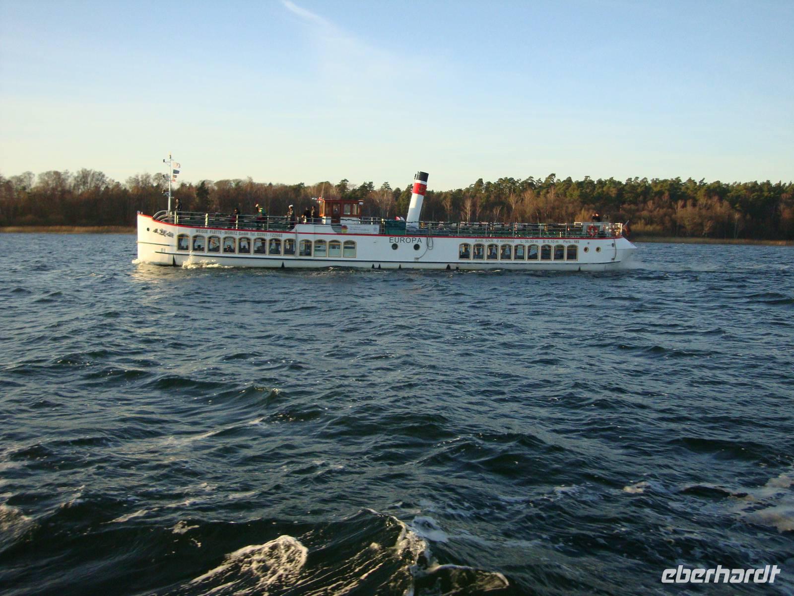 Nach der Freizeit über Mittag, trafen wir uns alle am Stadthafen um eine Seenfahrt mit dem MS "Stadt Waren" zu unternehmen. Bei herrlichem Sonnenschein fuhren wir über die Müritz, den Kölpinsee und dem Fleesensee zurück zum Stadthafen. Die zwei Stunden an Bord vergingen wie im Flug, zumal uns der Kapitän viel Interessantes berichtete. Es wurde schon langsam dunkel, als wir von Bord gingen und nochmal die schöne Altstadt Warens individuell in Augenschein nahmen. Nach kurzer Fahrt mit dem Reisebus, vier Gäste nahmen den Weg ins Hotel zu Fuß, konnten wir uns pünktlich 19.00 Uhr wieder am vorzüglichen Büffet satt essen.
