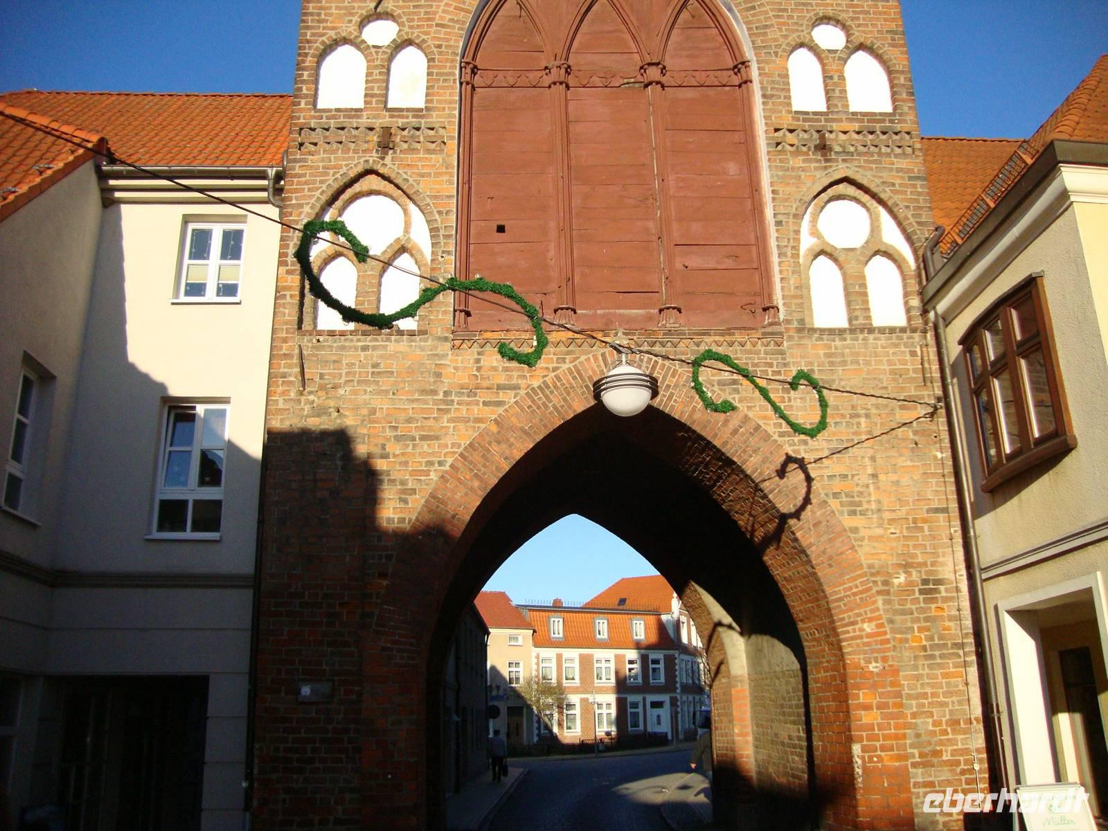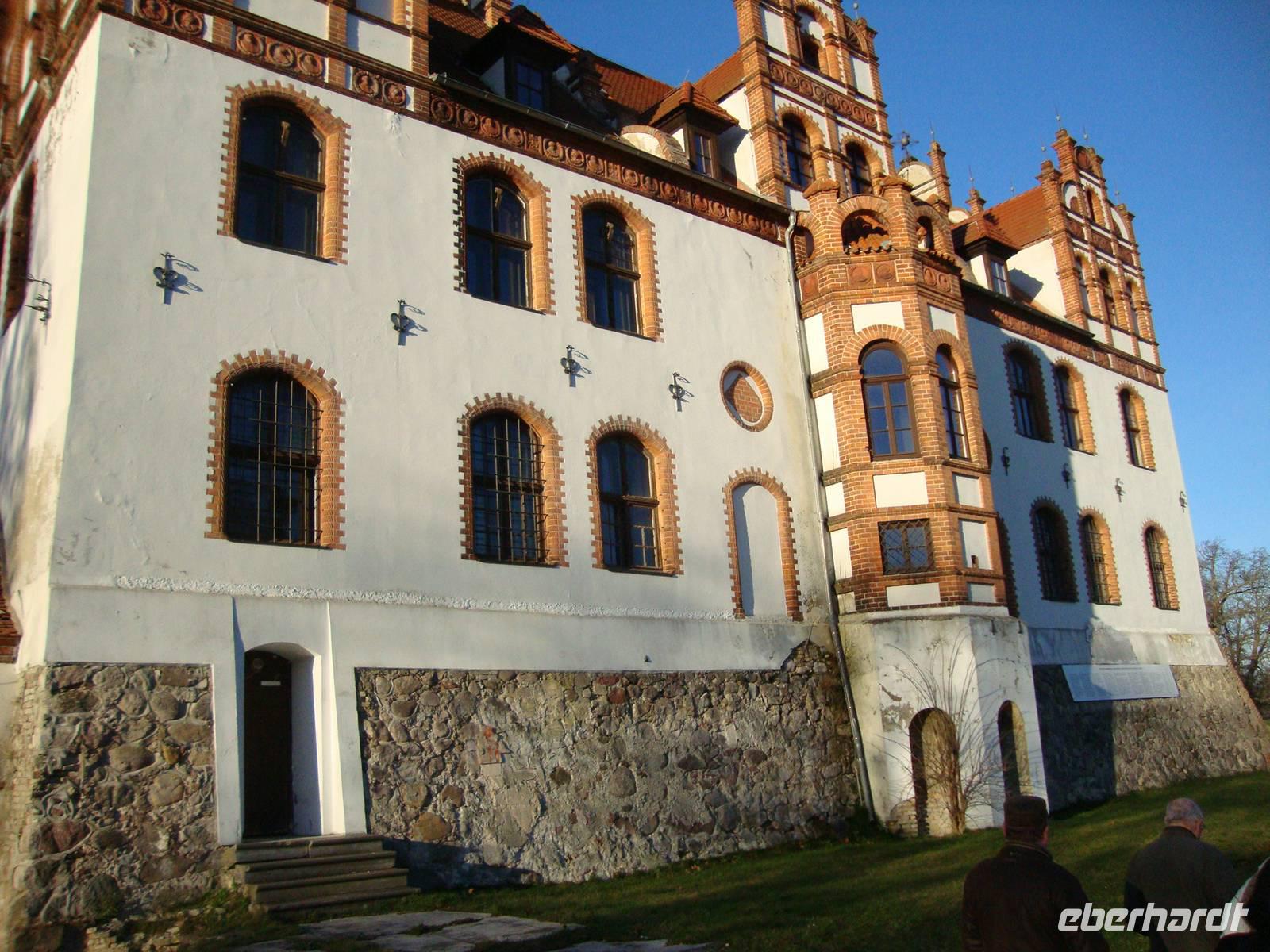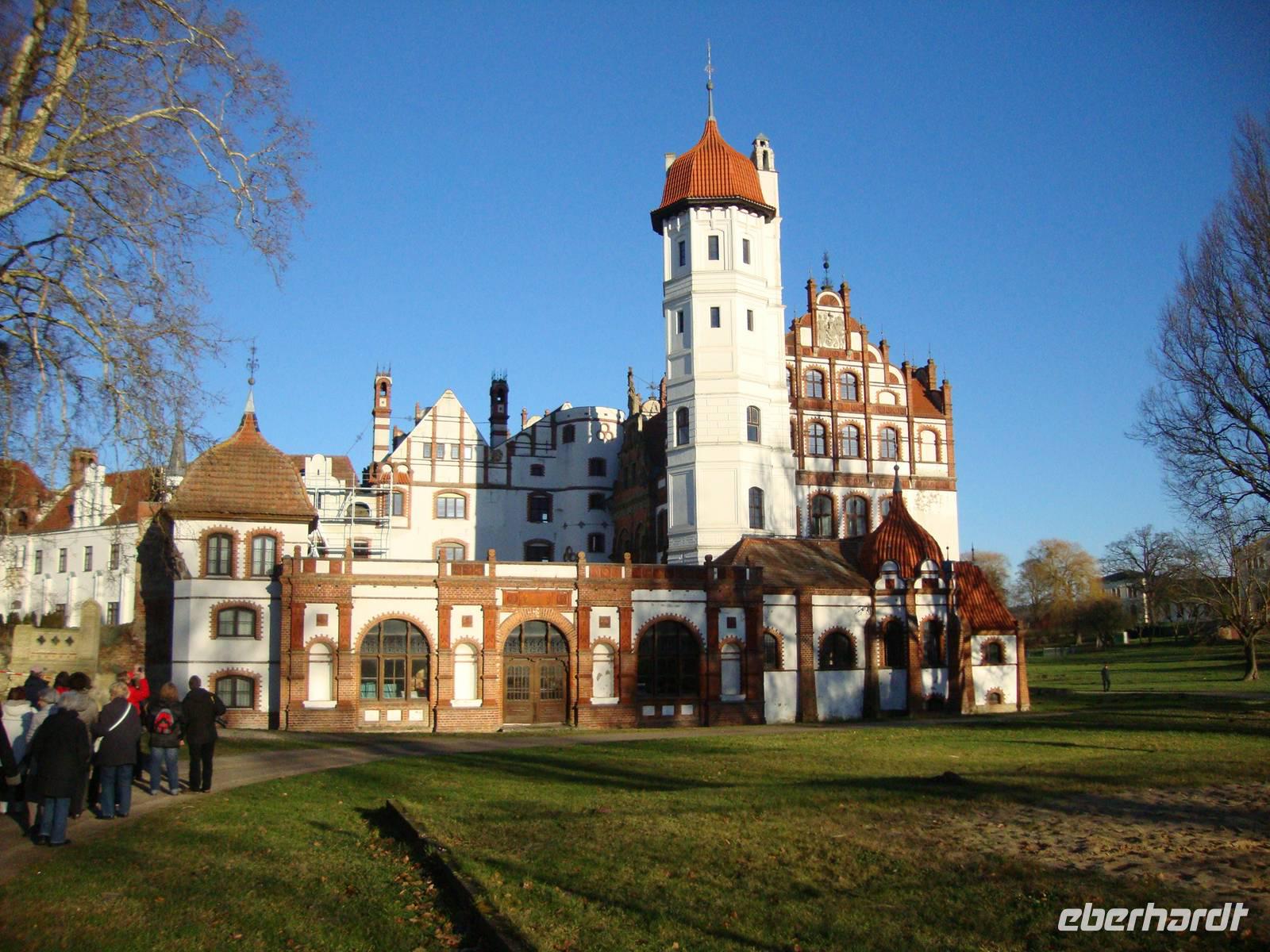 Am letzten Tag des Jahres unternahmen wir, in Begleitung von Herrn Schulz, eine Rundfahrt durch das schöne, naturbelassene Mecklenburger Land. Unser erstes Ziel, Schloß Ulrichshusen, erreichten wir nach kurzer Fahrt. Die Besitzer, derer von Maltzan haben das Schloß, welches 1984 abgebrannt ist, wieder in alter Schönheit entsehen lassen. Herr Schulz erzählte uns viele Anekdoten und Geschichten, denn eine Besichtigung ist leider nicht möglich, aber von etwas weiterem Abstand konnten wir Foto's machen. Teterow, ein kreisrundes Städtchen mit bemerkenswerter romanisch-gotischen Kirche, gilt als das Schilda Norddeutschlands. Die Geschichte vom Hecht und dem Brunnen am Markt kennt jeder Mecklenburger. Bei unserem Spaziergang kamen wir auch in der Bäckerei, nahe dem Malchiner Tor, vorbei. Hier wurden wir herzlich und mit Hallo vom Schornsteinfeger und dem Bäckermeister, begrüßt. Jeder wurde in den Verkaufsraum eingeladen um mit einem Glas Sekt anzustoßen und den Schornsteinfeger an der Kleidung zu fassen. Für alle war das ein großer Spaß, wer wollte kaufte sich noch einen Pfannkuchen, davon gab es 11 verschiedene Sorten, um dies Köstlichkeit zu probieren. In Mecklenburg gehört es zum Silvesterbrauch, um Mitternacht einen Berliner, wie diese hier heisen, zu essen. Am Nachmittag besuchten wir den kleinen Ort Basedow, welcher ebenfalls ein touristisches Zentrum in Mecklenburg ist. Bei unserem Spaziergang, geführt von Herrn Schulz, sahen wir das Schloß, welches sich 600 Jahre im Besitz der Adelsfamilie von Hahn befand, den sanierten Marstall und die alte Dorfkirche. Leider war diese geschlossen, ebenso die alte Schmiede, die nur von April bis Oktober geöffnet hat. Der Park des Schlosses wurde nach englischen Vorbild von Peter Joseph Lenne', dem berühmten Gartengestalter, angelegt. Einkehr hielten wir dann im "Alten Schafstall", welcher als Gasthaus sehr historisch und rustikal eingerichtet ist und wo wir freundlich bedient wurden. Bei dem schönen Wetter wollten wir noch in Vollratsruhe den neuen Aussichtsturm erklimmen um die schöne Mecklenburgische Schweiz zu erleben. Anschließend ging es dann über noch vorhandene typisch mecklenburgische Dorfstrassen zurück ins Hotel. Unser Chauffeur, Klaus Küchel, mußte hier mit viel Routine und Geschick, den Bus steuern.