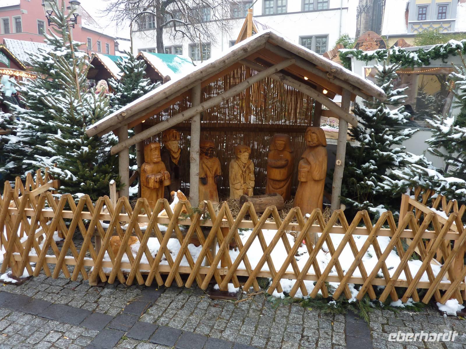 Unser Mittagessen nehmen wir im Hotel Aachen ein, direkt am Markt gelegen. Woher der Weihnachtsmarkt seinen Namen als schönster Weihnachtsmarkt der Saale-Unstrut-Region hat, bleibt allerdings ein Rätsel. Petra war pfiffig und hat aber für die verbleibende Zeit bis zur Weiterfahrt noch eine tolle Krippe mit lebensgroßen Figuren ausgekundschaftet, die wir uns noch begeistert ansehen.