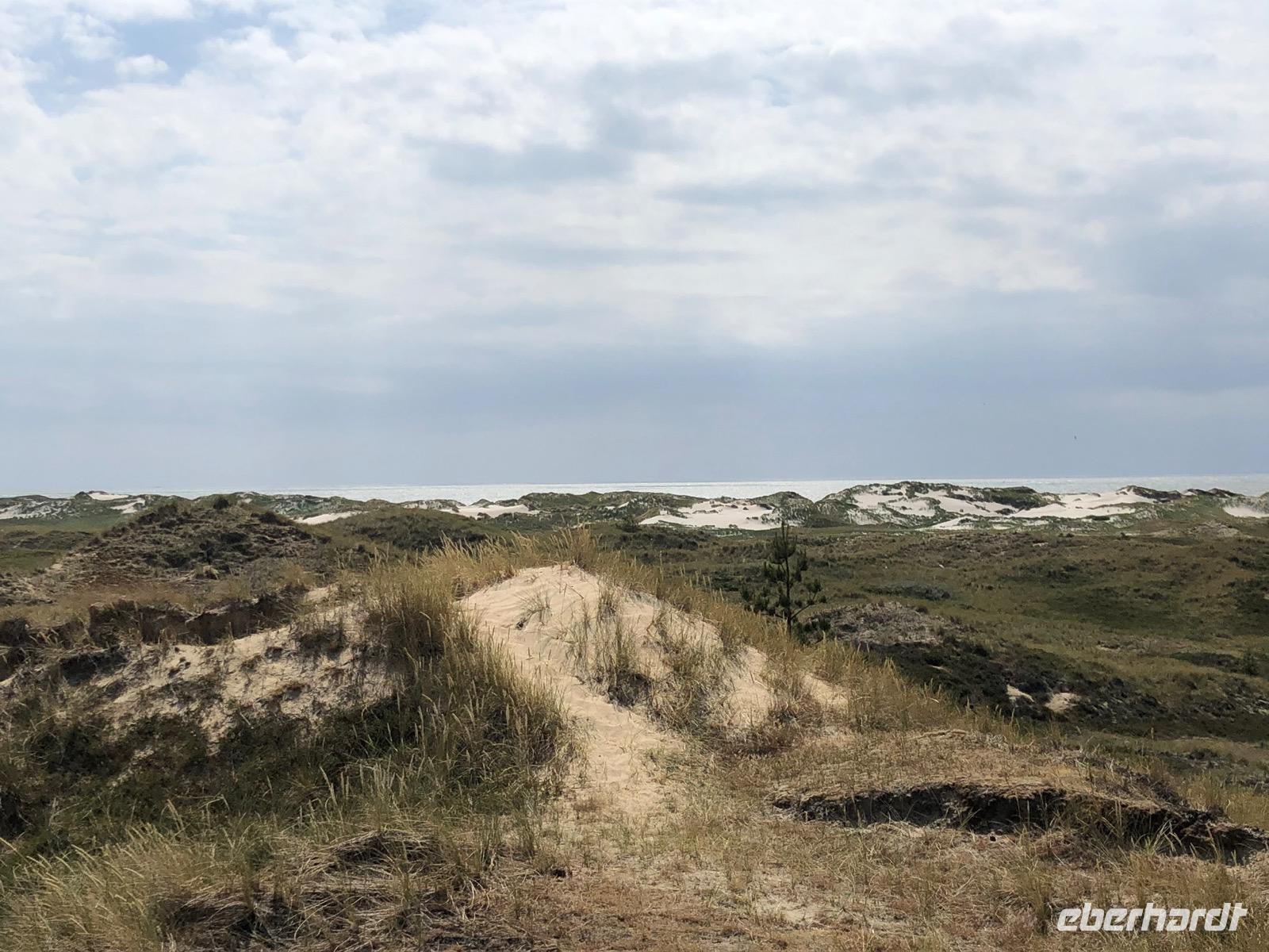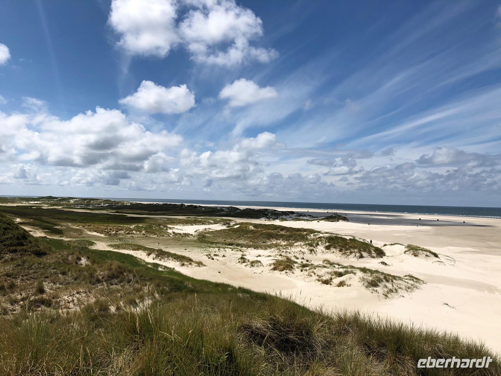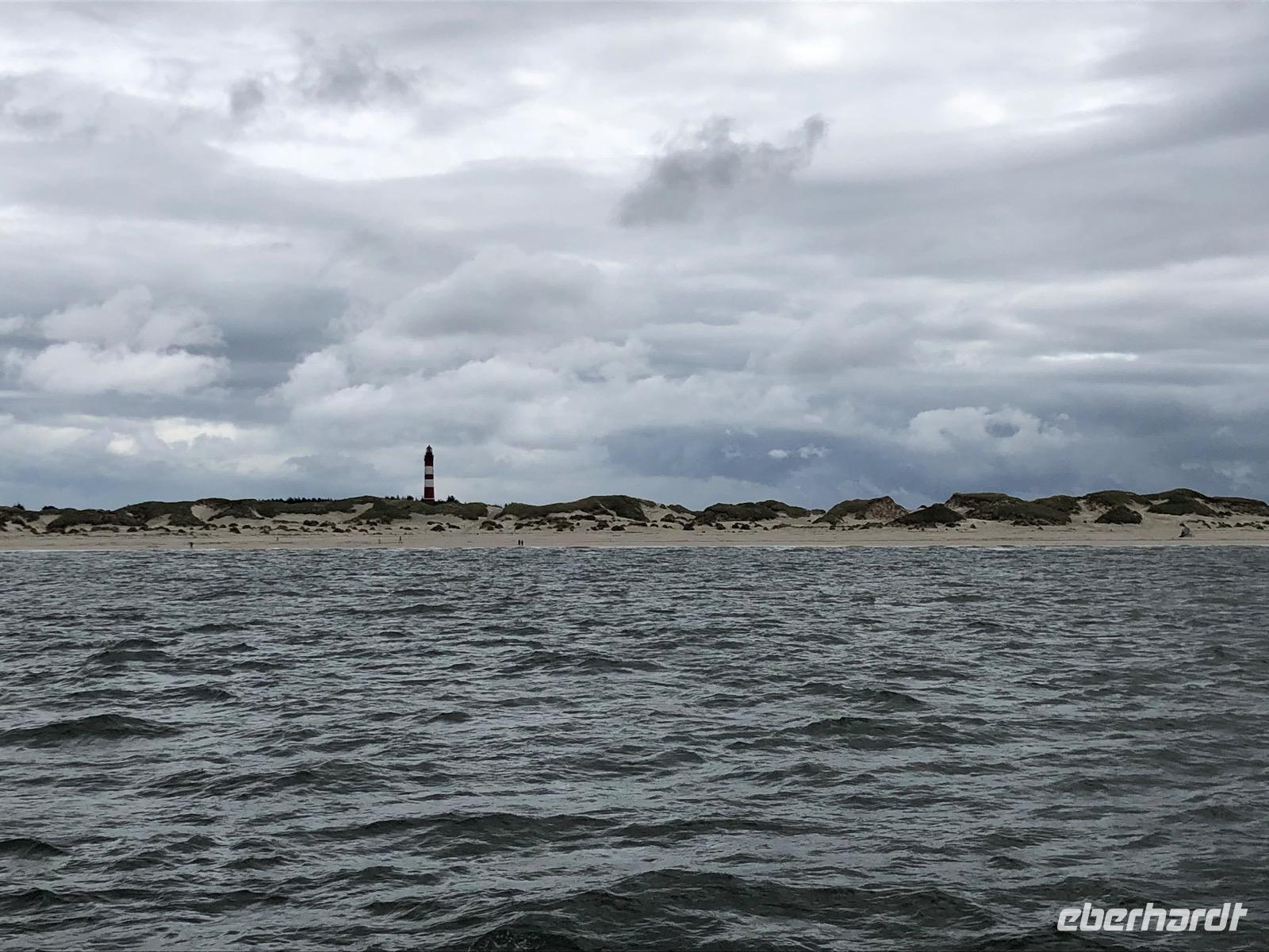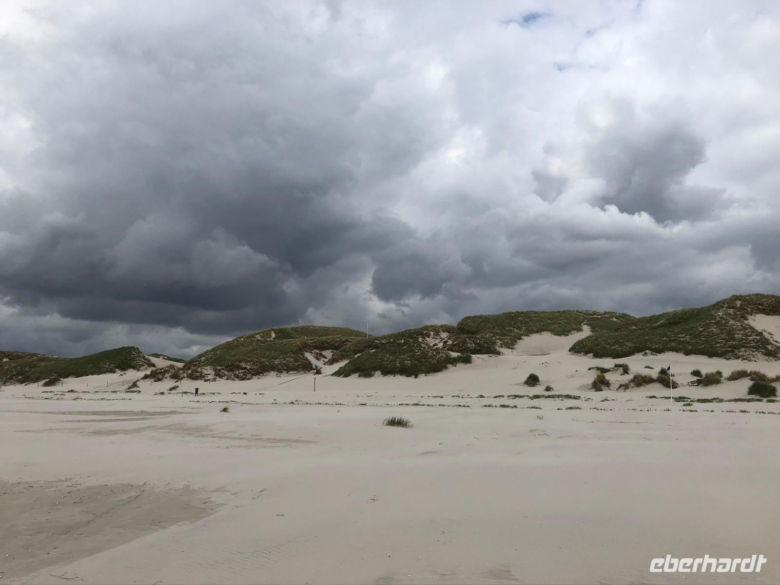 Also vorbei auf der Höhe Leuchtturm kämpften wir uns dann auch erstmals mit Wanderhöhenmetern durch die Dünen. Und was wir oben auf zu sehen bekamen, war wieder einmal Schokoladenseite Nordsee. Das Meer und der Kniepsand von Amrum erschienen in perfektem Licht, ein ständig wechselndes Spiel von Licht und Wolken, vom starken Wind getrieben.