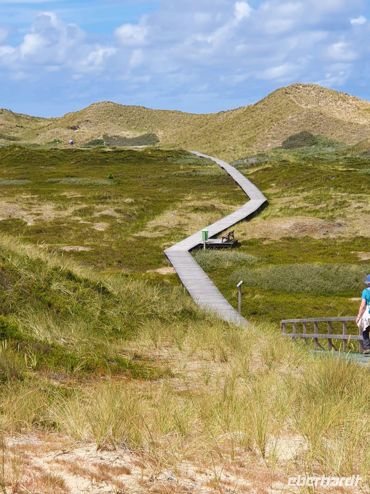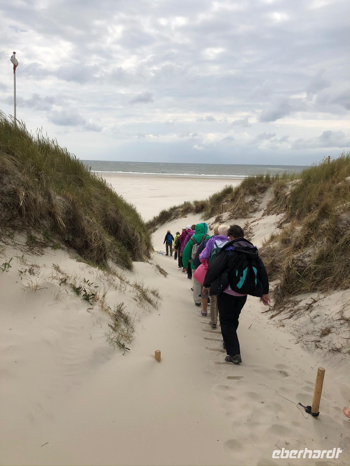 Wieder mal gut gestärkt wanderten wir über die Bohlenwege in Richtung Strand, bzw. Kniepsand von Amrum.
