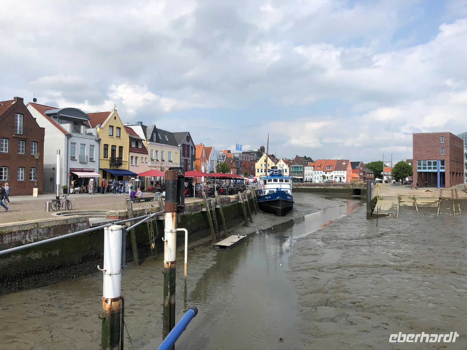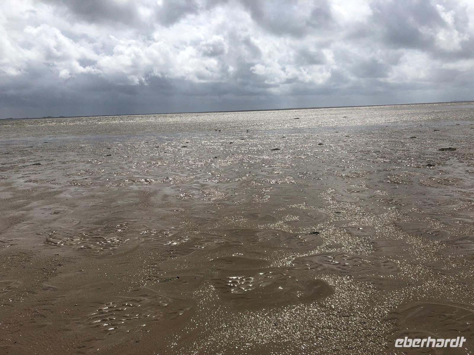 Unsere Truppe teilte sich nun am sogenannten freien Tag auf, um entweder per Wanderung ex Dagebüll entlang des Deiches oder per Rad auf Tour zu gehen. Danach stand am Nachmittag immer noch die Wattwanderung an. Eine weitere Gruppe fuhr nach Husum, nicht nur für Fischbrötchen und Shoppingtour, sondern auch um festzustellen, dass selbst im Stadthafen von Husum Ebbe und Flut herrschen.Wenn man an die Nordsee reist, dann braucht es eine Weile, um ein Gefühl zu bekommen für die sich ständig ändernden Bedingungen, dem offensichtlichen Kräftespiel der Gezeiten, denen man ausgesetzt ist. Gibt es Nordsee ohne Wind? Ohne Dauerrauschen des Meeres? Ohne die sogar nachts nicht ruhenden, schreinenden Seevögel? Salzfilm auf der Haut? Sand in allen Poren?
