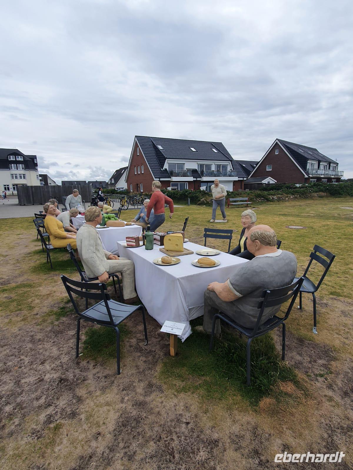 Das Mass Hunger und Müdigkeit spitzte sich nun am letzten Abend noch einmal zu und so freuten wir uns einfach, durchgefroren und klamm (trotz Sylt weniger finanziell als wettertechnisch) wieder in Dagebüll angekommen zu sein.Wir waren auch fast wieder zu spät im Restaurant, als uns unsere Kommandeurin schon mit den für jeden persönlich zugeordneten Getränken der Vortage am Platz überraschte. Offensichtlich hatten wir uns nun eingelebt, da war dies auch schon der letzte Abend unserer Wanderreise.