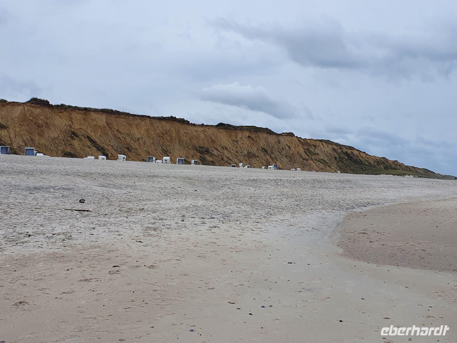 Wir wanderten von Wenningstedt aus am Strand entlang vorbei am Roten Kliff, welches sich leider aufgrund der Wetterverhältnisse nur schwer als solches erklären ließ. Mittlerweile hatten alle Regencapes übergeworfen. Flipflops waren möglich, denn Wasser von unten und oben.