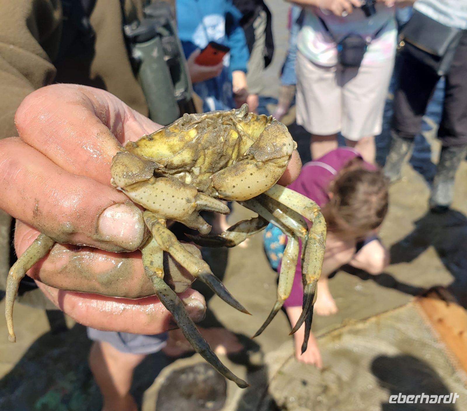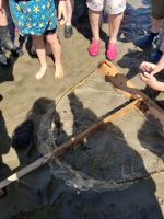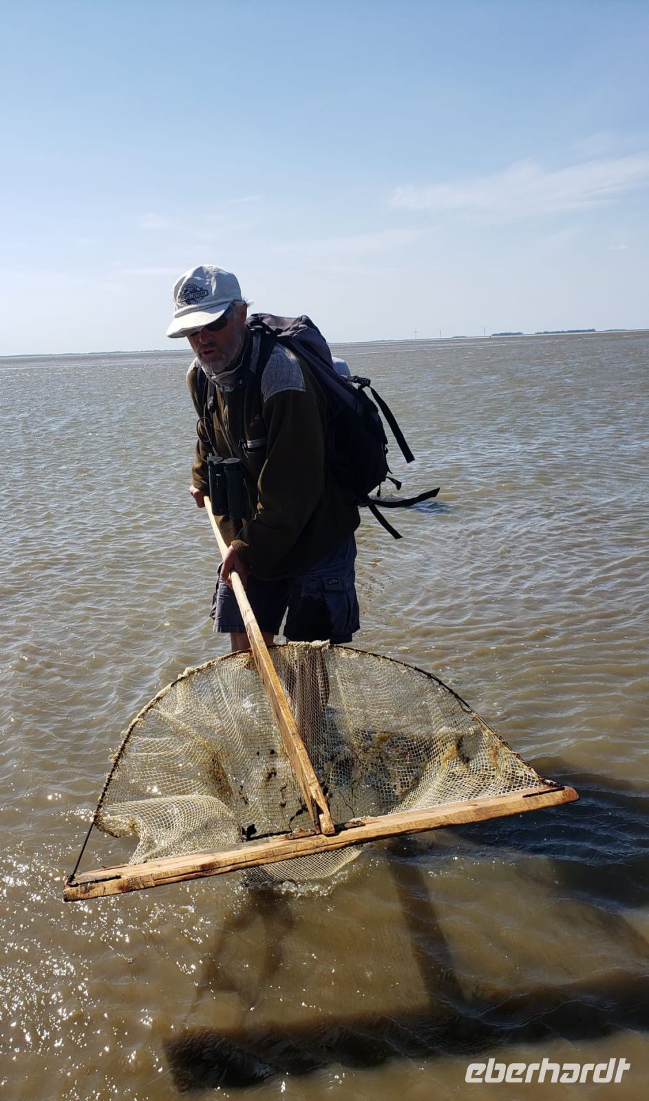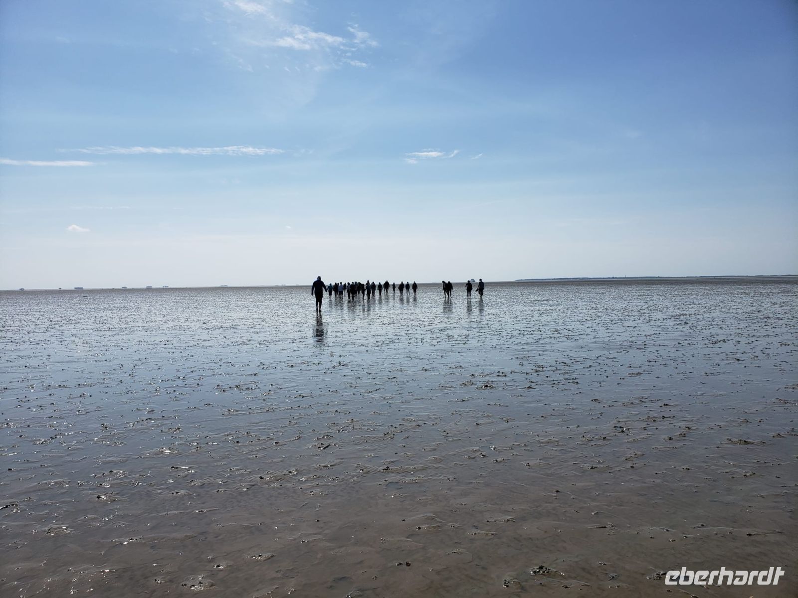 Am Nachmittag sind wir alle aufgeregt. Wir machen eine Wattwanderung, die darf hier an der Nordsee natürlich nicht fehlen. Unser Wattführer gibt sich viel Mühe, erzählt viel Wissenswertes, auch die Kinder in der Gruppe hören bis zum Schluss gebannt zu. Wir sehen den Wattwurm und verschiedene Muschelarten. Am Ende wird uns das Krabbenfischen demonstriert und dann müssen wir uns auf den Rückweg machen ... die Flut ist im Anmarsch!