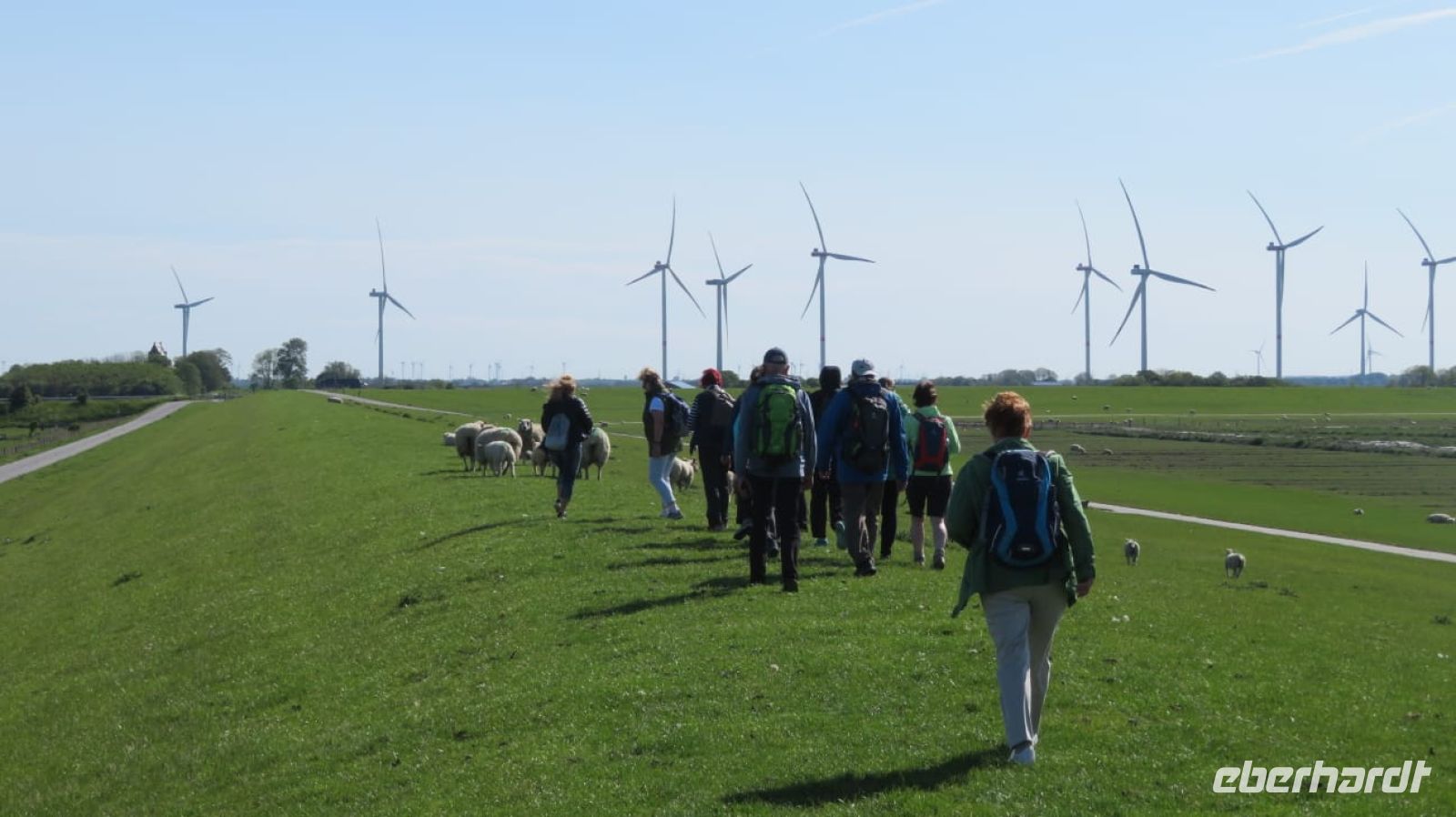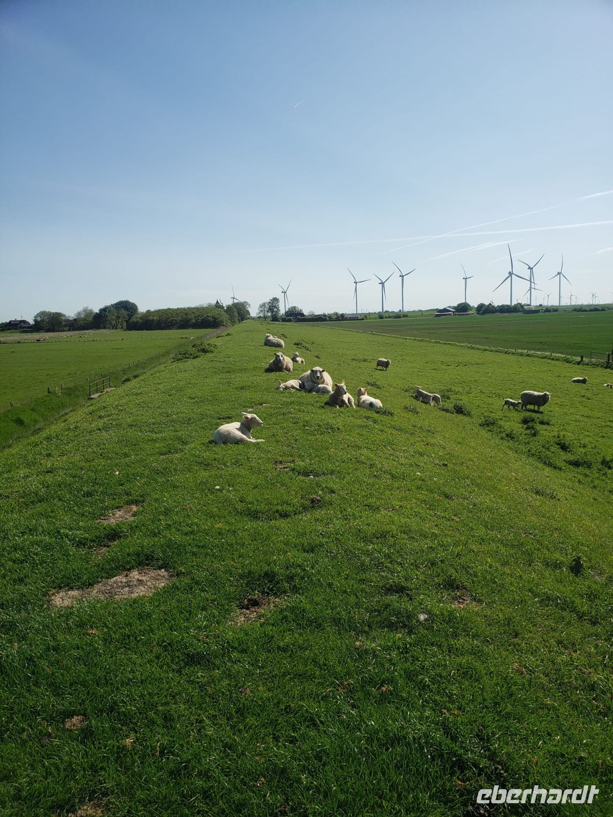 Am Vormittag lernen wir Dagebüll kennen. Wir unternehmen gemeinsam einen Spaziergang im Ort und sehen dabei auch die kleinen bekannten Badebuden und den Leuchtturm. Wir begeben uns von dort auf den Deichwanderweg. Zahllose Gatter müssen wir öffnen und schließen, überall Deichschafe, es ist wunderschön!