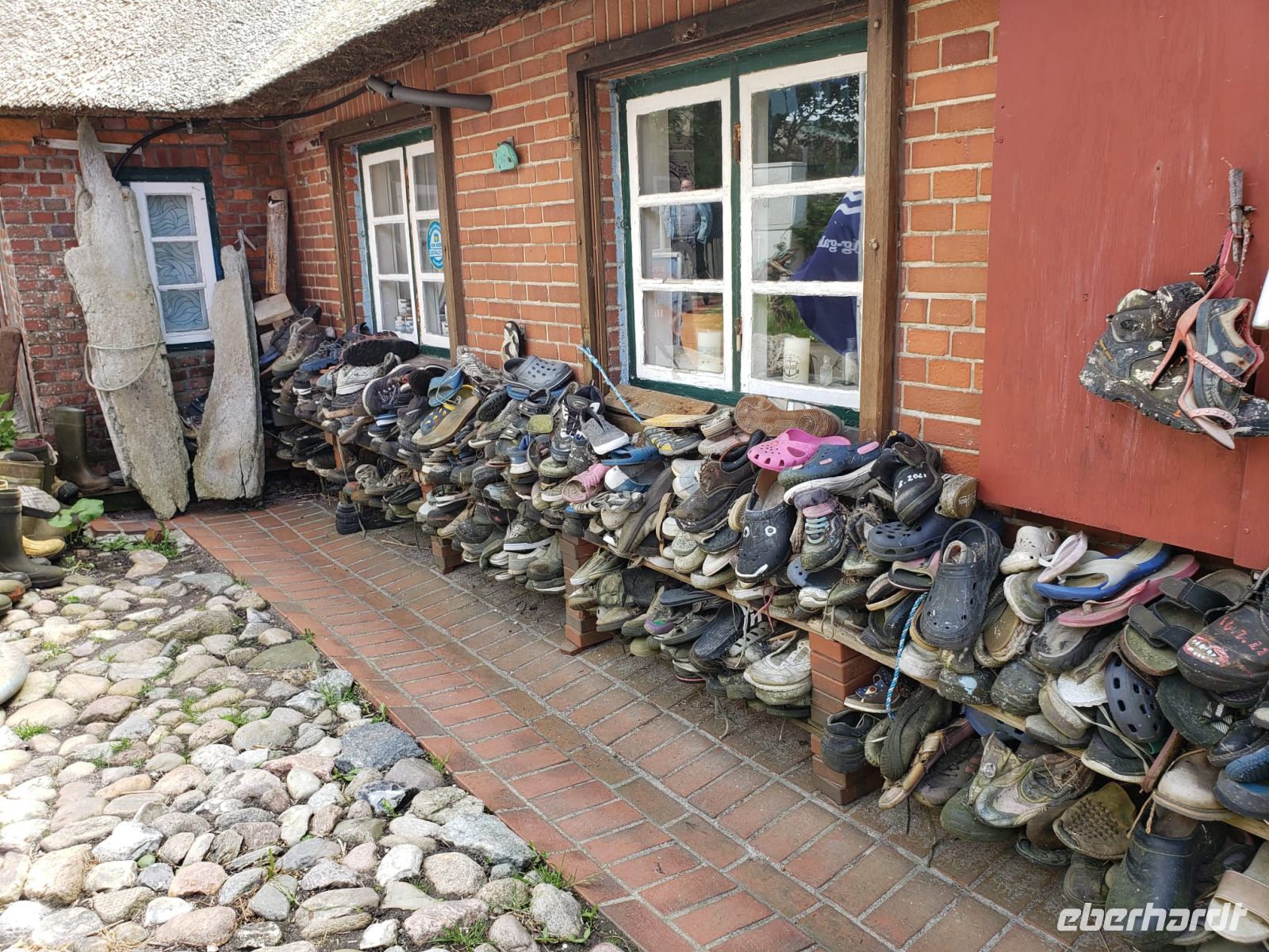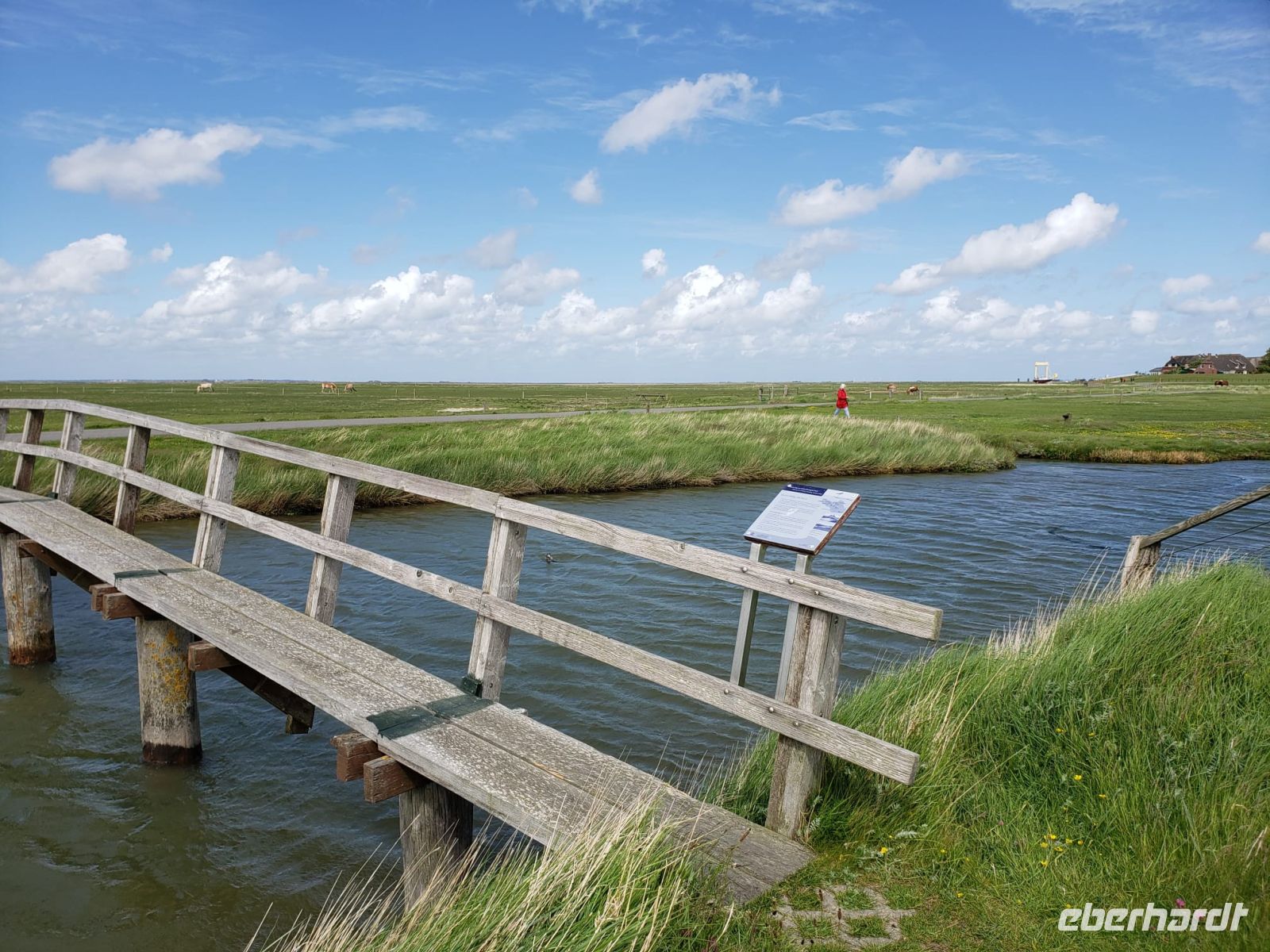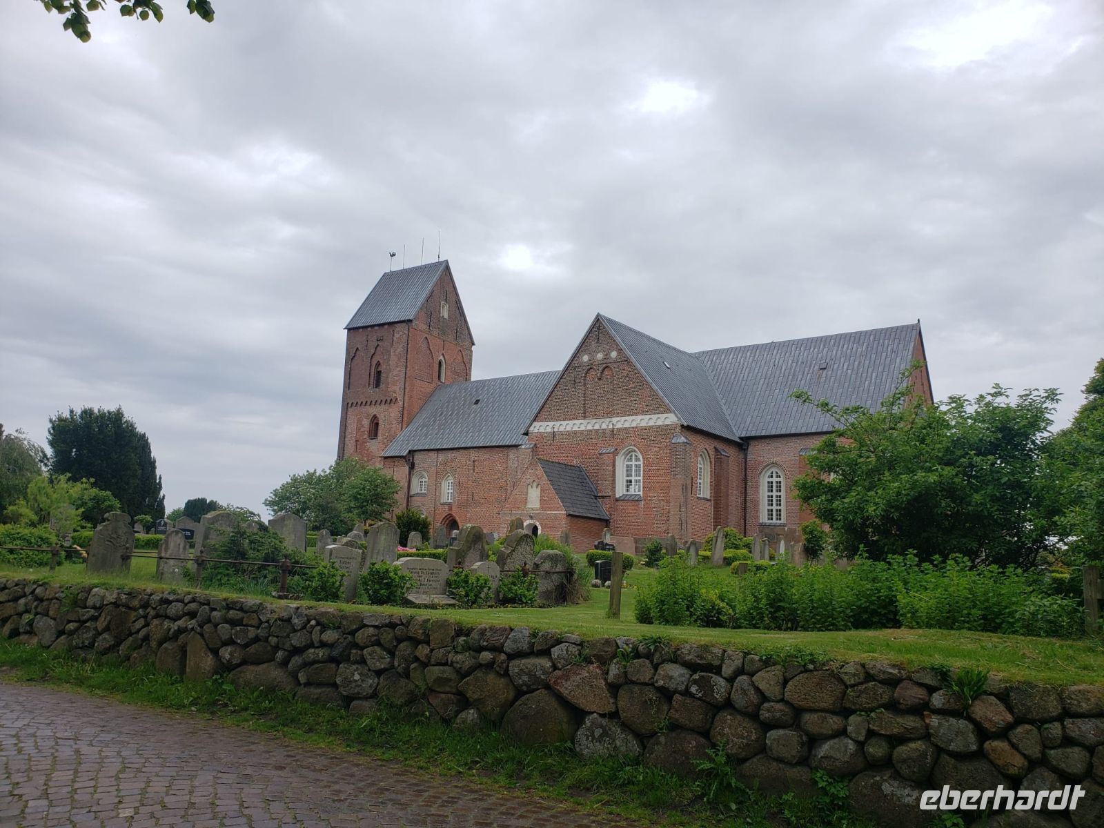 Über einen Bohlenweg geht es dann nach Nieblum, ein wunderschönes altes Dorf, so schön, dass es schon mehrere Auszeichnungen erhalten hat. Viele hübsche Kapitänshäuser kann man bewundern. In der Mittagspause nutzen viele die Gelegenheit, am Friesendom, der größten Kirche der Insel, die sprechenden Grabsteine zu sehen, die gibt es nur hier in Nordfriesland.