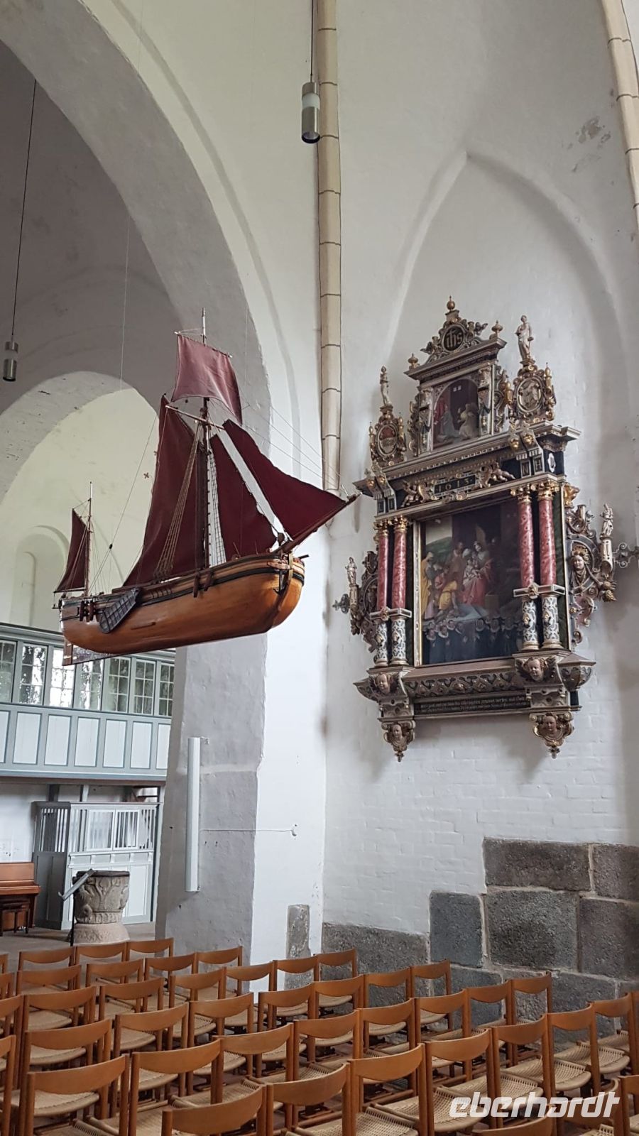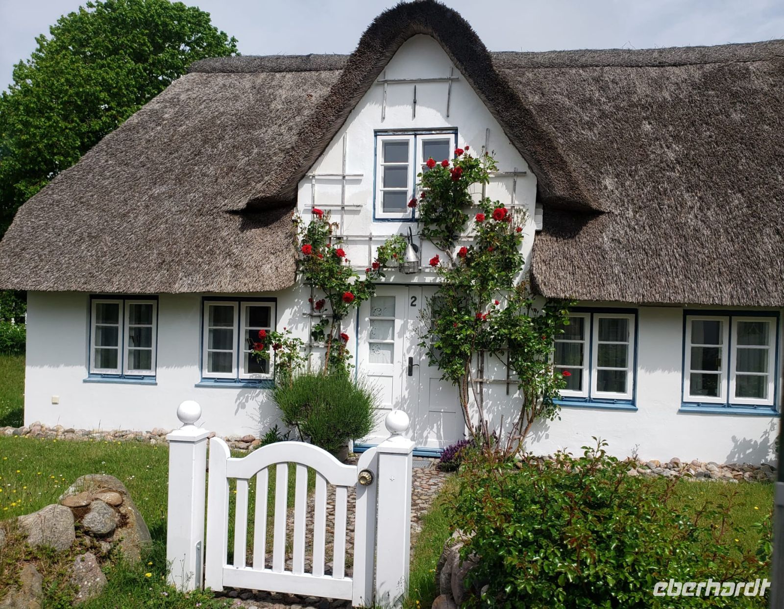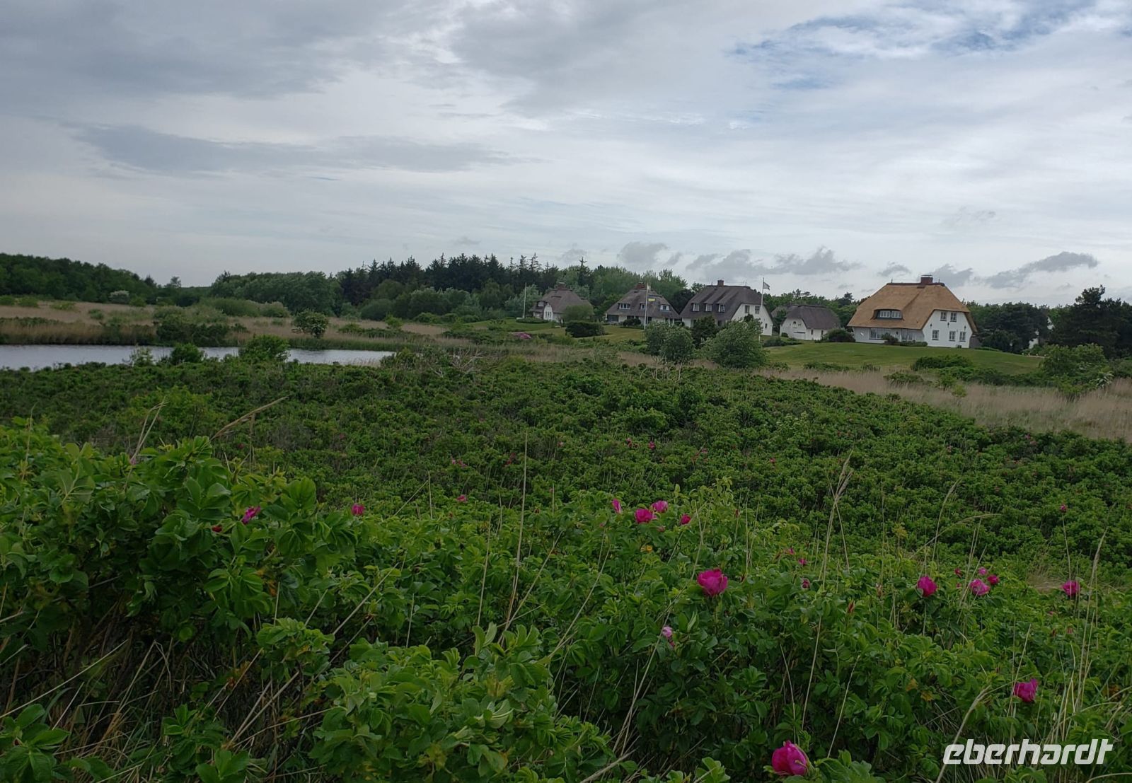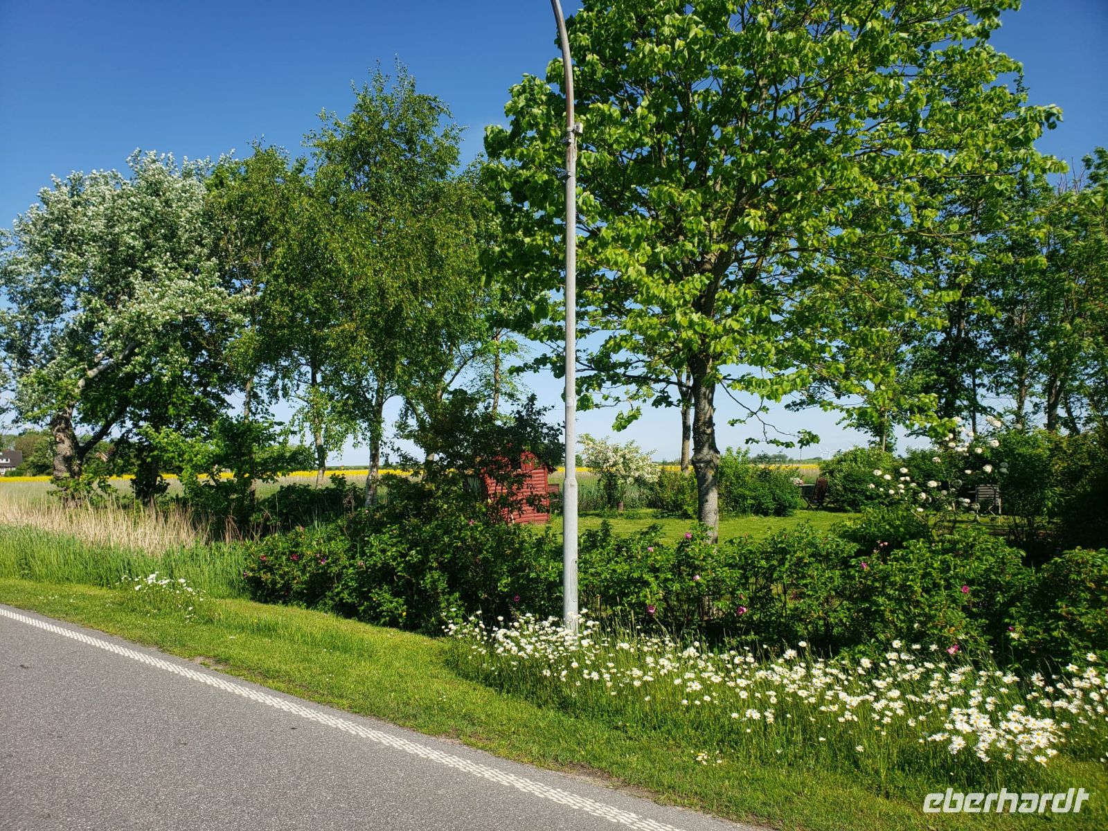 Über einen Bohlenweg geht es dann nach Nieblum, ein wunderschönes altes Dorf, so schön, dass es schon mehrere Auszeichnungen erhalten hat. Viele hübsche Kapitänshäuser kann man bewundern. In der Mittagspause nutzen viele die Gelegenheit, am Friesendom, der größten Kirche der Insel, die sprechenden Grabsteine zu sehen, die gibt es nur hier in Nordfriesland.