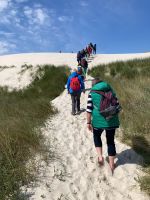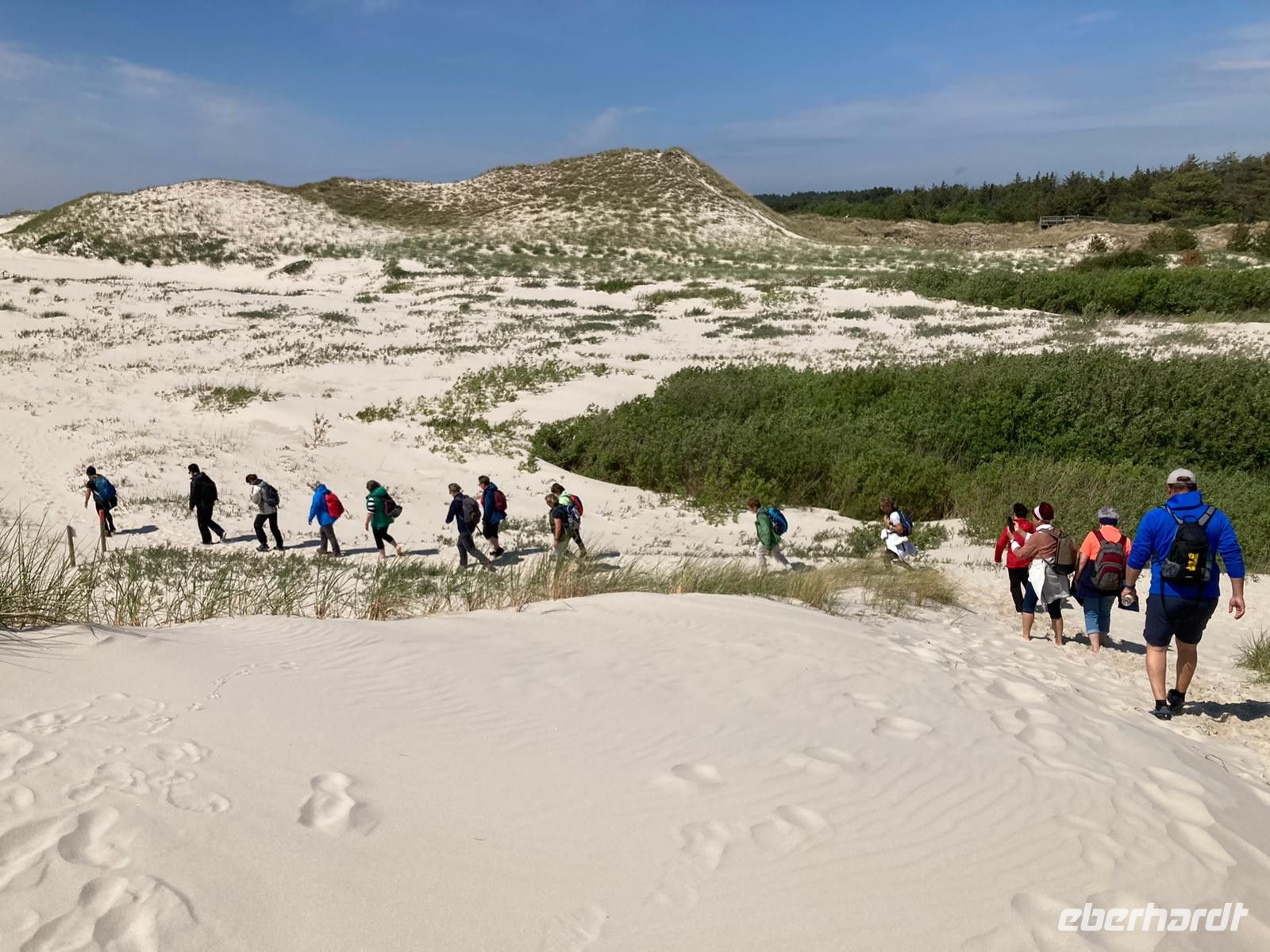 Dann heisst es, alle Kräfte mobilisieren. Durch den tiefen, weißen Dünensand geht es mitten im Nationalpark über den ausgewiesenen Wanderweg in Richtung Leuchtturm. Ein jeder ist stolz, als wir unser Ziel erreicht haben.