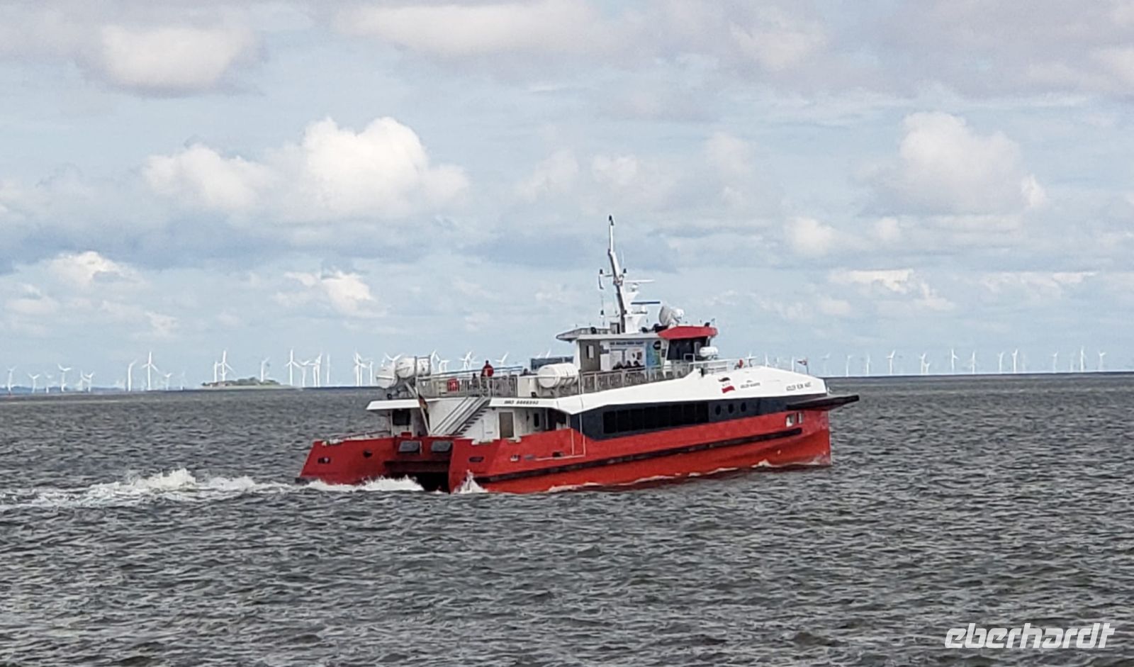 Heute steht die Insel Amrum auf unserem Programm. Zur Überraschung nehmen wir den schnellen Katamaran, die 2019 gebaute RümHart. Auf Amrum angekommen wartet die blau-weiße Bimmelbahn auf uns. So haben wir die Möglichkeit, einen Eindruck von der gesamten Insel zu bekommen.