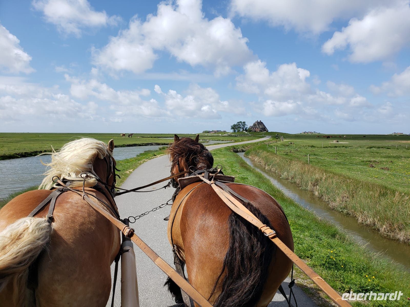 Durch das Inselinnere geht es am Nachmittag zurück nach Wyk. Bevor uns die Fähre wieder zum Festland bringen wird, haben wir genügend Zeit für einen gemütlichen Bummel durch die hübschen Geschäfte oder auch für eine Tasse Kaffee, manche bestellen sich Friesentorte.
