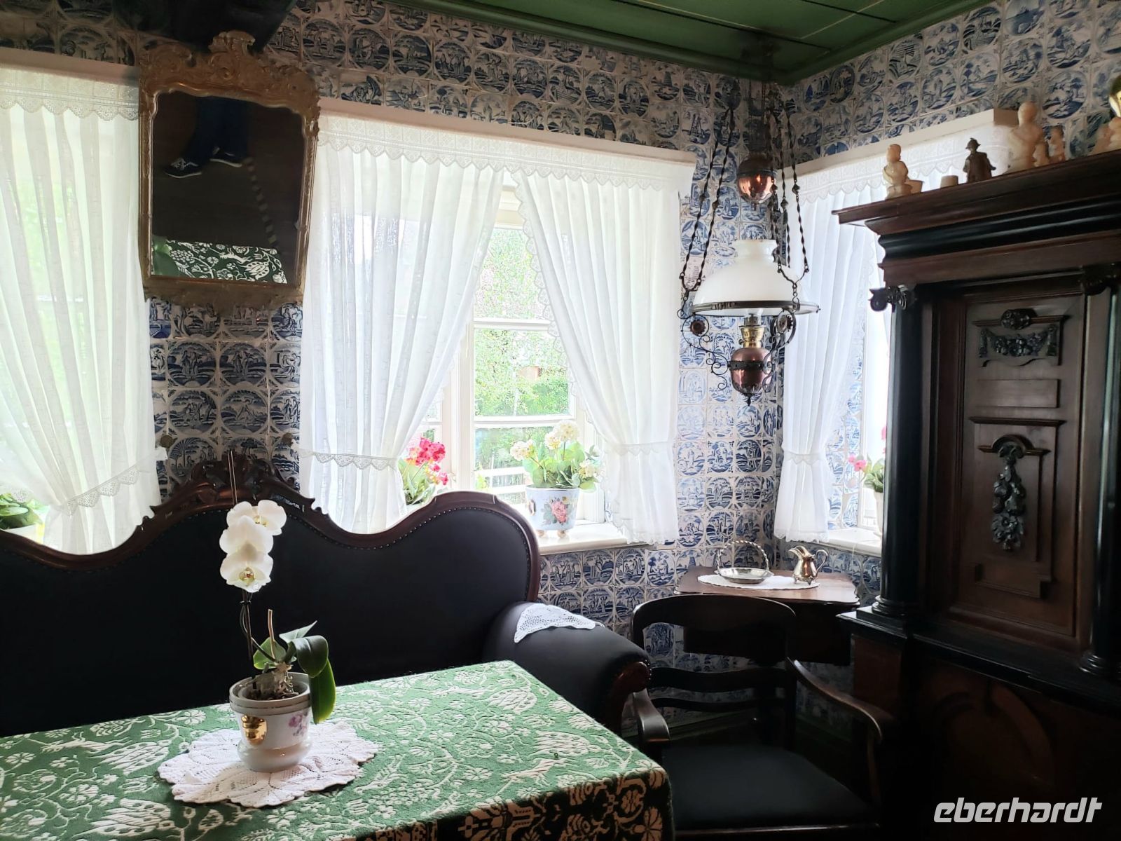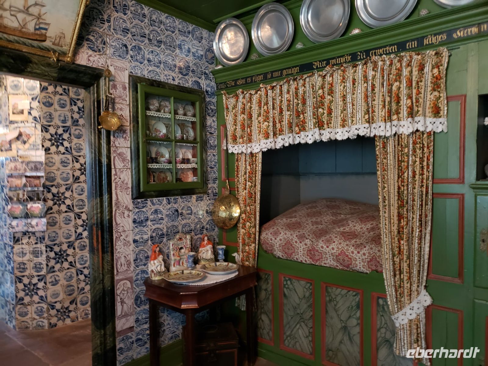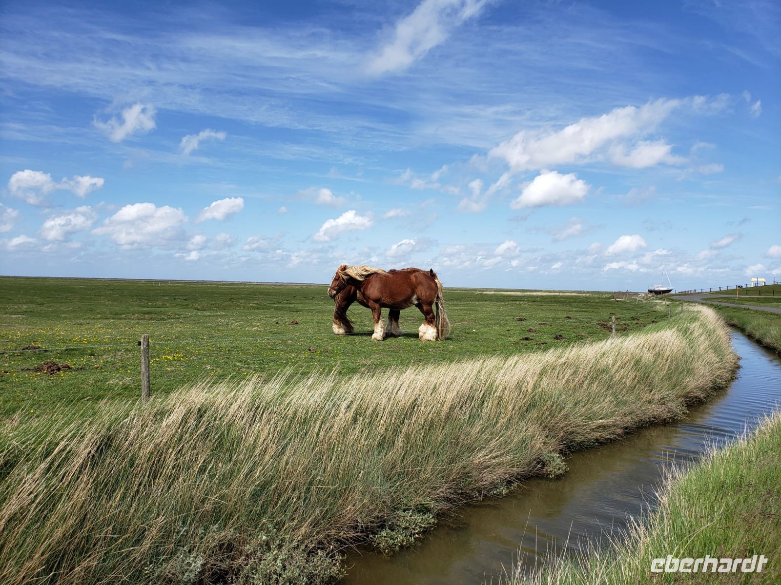 Dieser Tag steht uns zur freien Verfügung. Manche wandern von Dadebüll aus, manche mieten sich ein Fahrrad. Ein Großteil macht einen Ausflug zur Hallig Hooge. Es ist recht viel los auf der Fähre, denn heute ist Himmelfahrt. Auf der Hallig angekommen, verläuft es sich aber sofort, so können wir die Ruhe der Hallig trotz der vielen Besucher genießen. Kutscher Willi bringt uns zur Kirchwarft und anschließend zur Hanswarft. Hier besuchen wir das altmodische Sturmflutkino und anschließend den Königspesel, ein Kapitänshaus mit über 6000 handbemalten Delfter Kacheln. In der anschließenden Freizeit gehen viele Spazieren, gönnen sich ein großes Stück Torte und dazu Pharisäer oder Tote Tante.