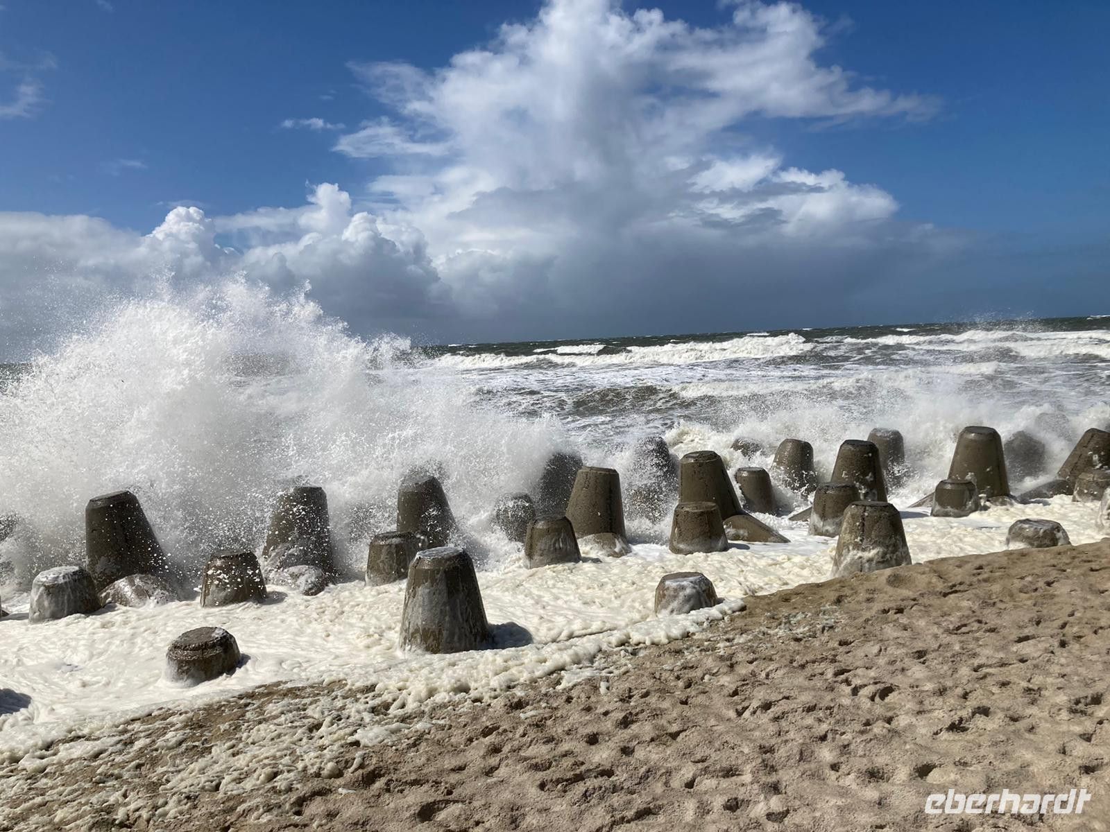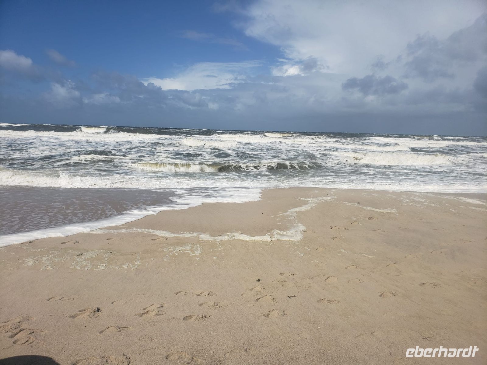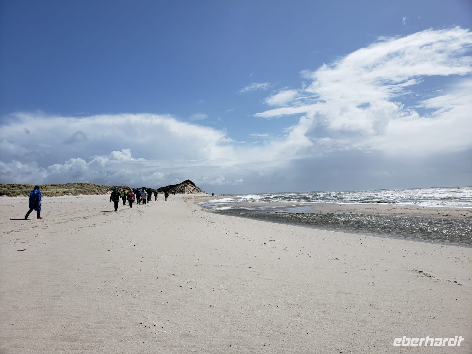 Unseren letzten Tag verbringen wir auf Sylt. Mit der Bahn geht es über den 1927 erbauten Hindenburgdamm. Ein Bus wird uns ganz in den Süden der Insel bringen. Wir wandern den Strand von Hörnum kilometerweit entlang. Es ist sehr stürmisch, hohe Wellen geben ein tolles Bild ab.