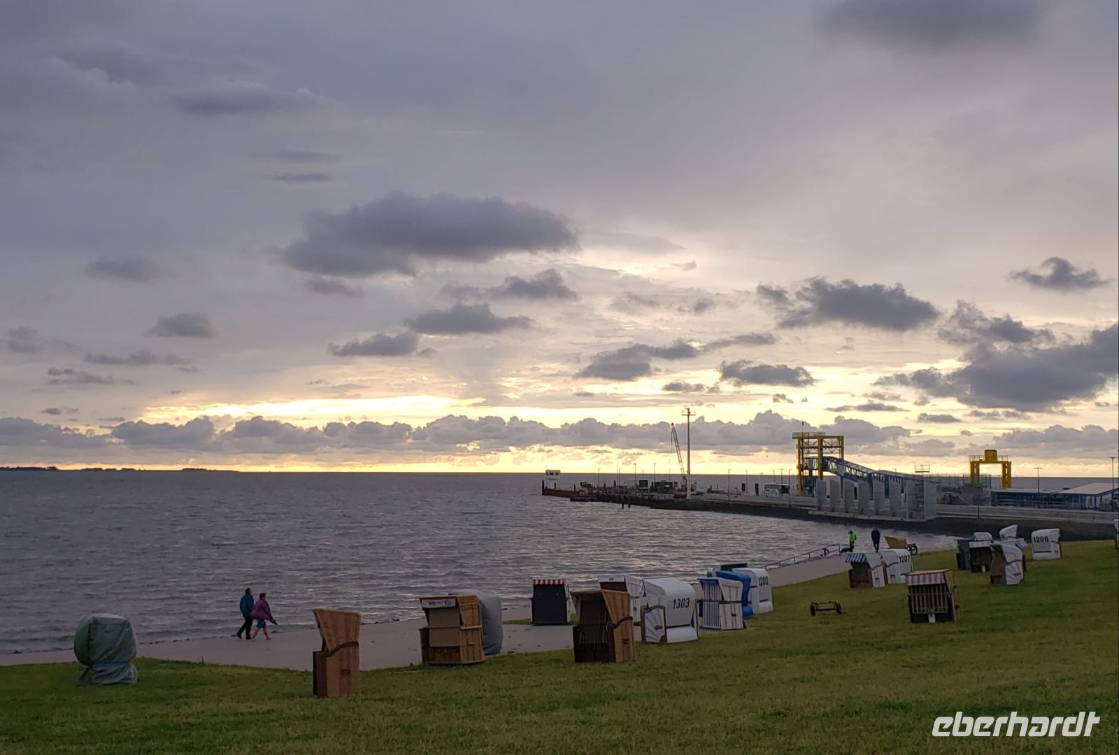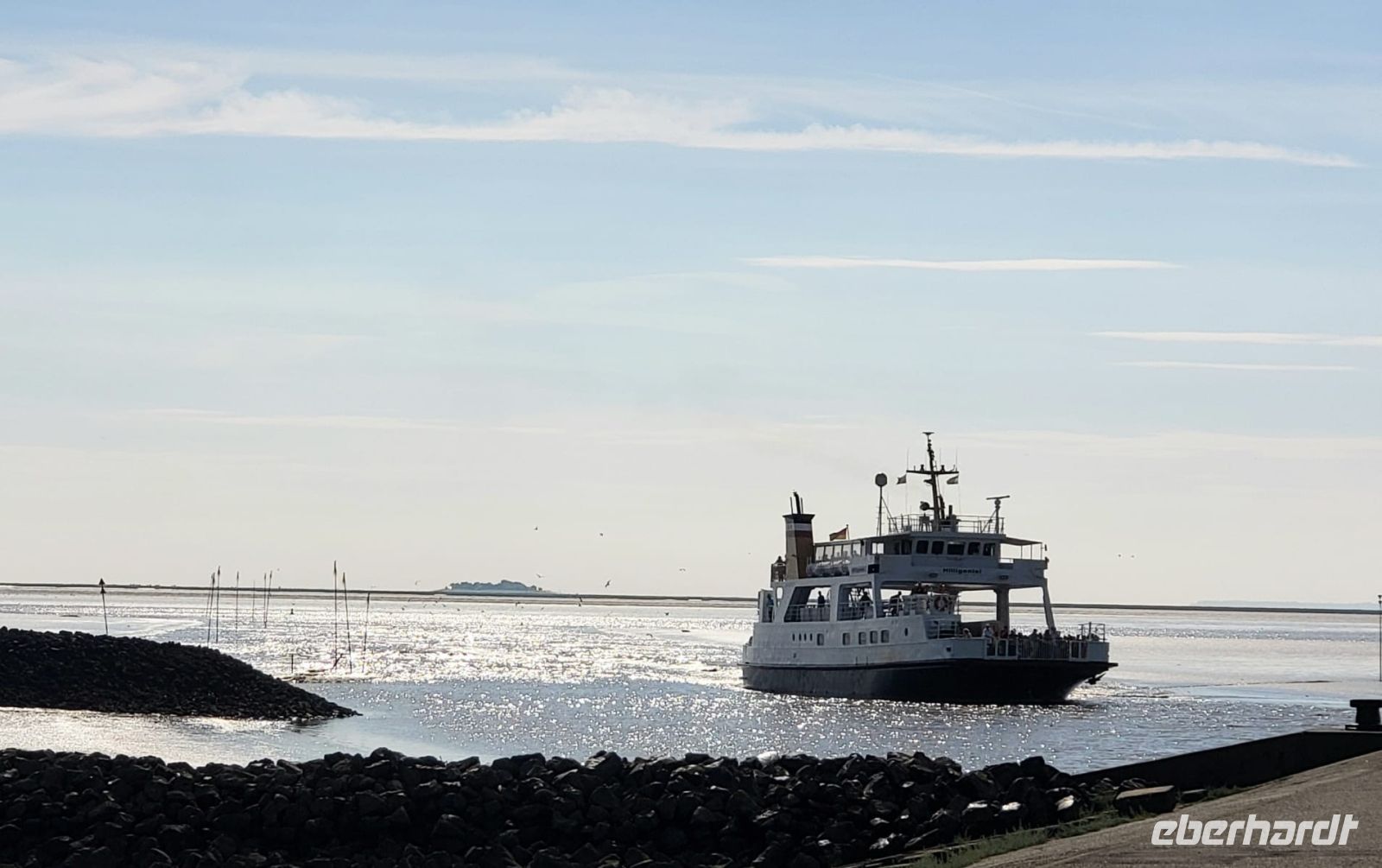 Heute ist Tag der Anreise. Alle trudeln am Nachmittag im netten, kleinen, etwas verschlafenen Küstenort Dagebüll ein. Einige reisen mit der Bahn an, andere kommen mit ihrem PKW, der Großteil der Gruppe natürlich mit Bus.