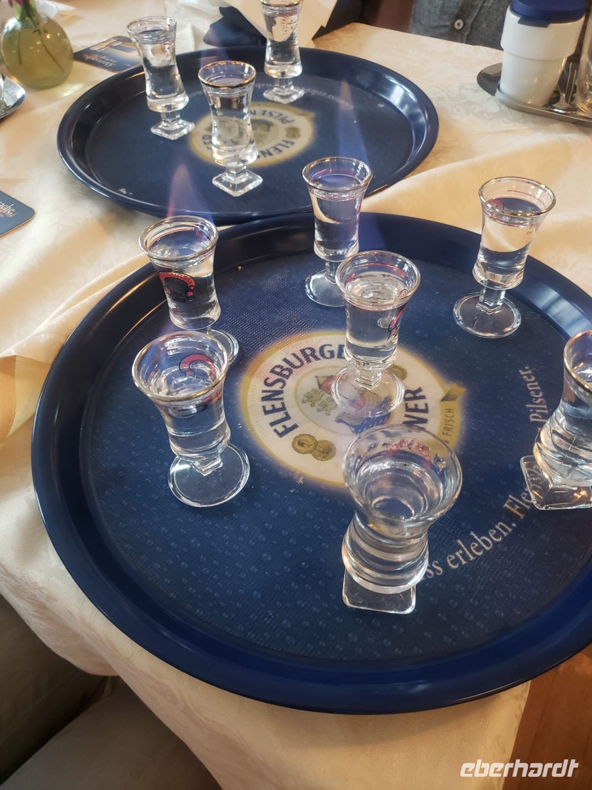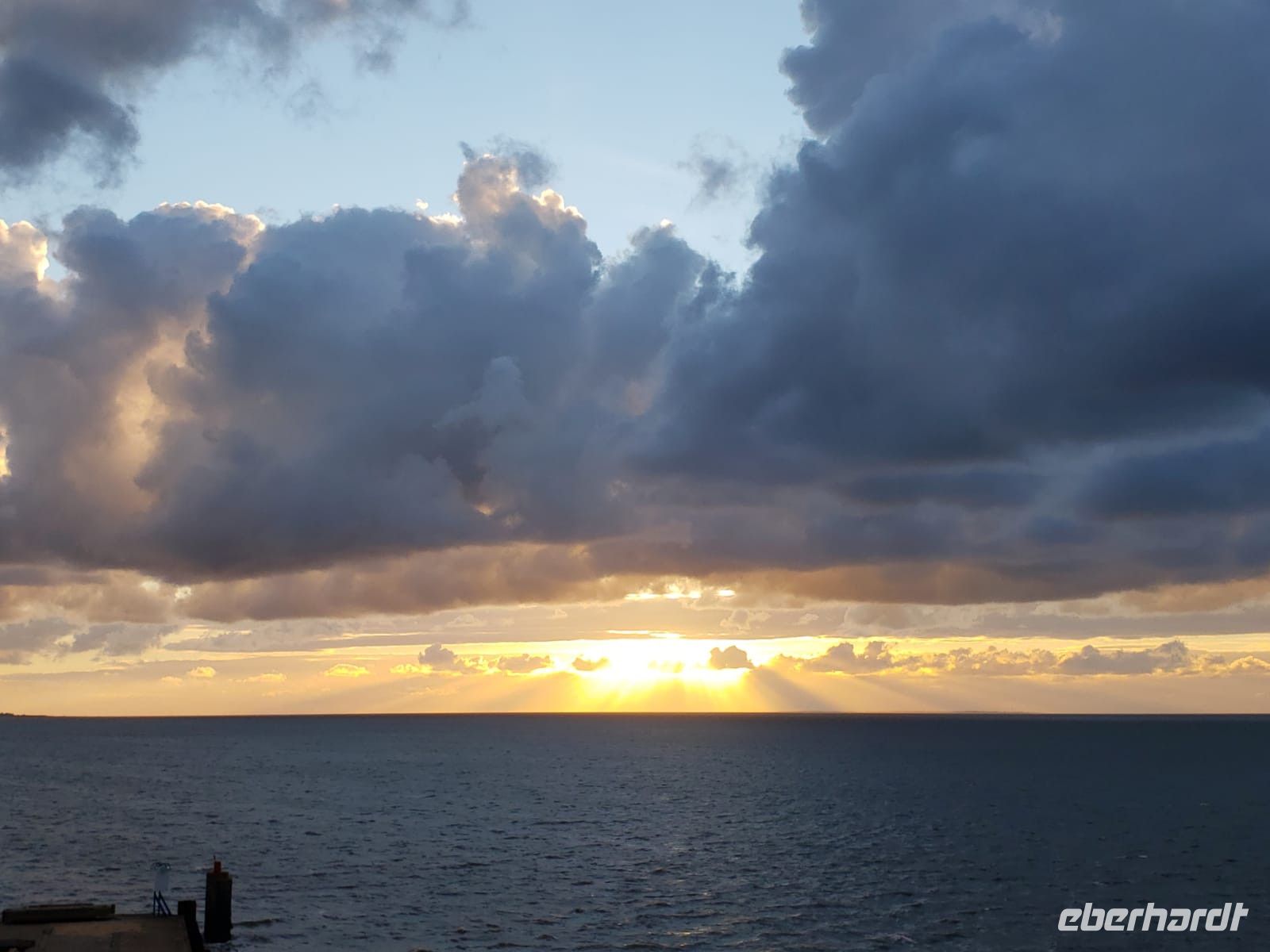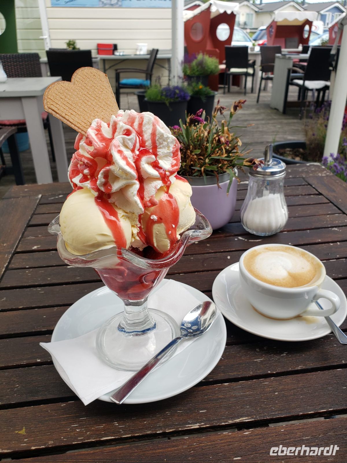 Danach haben alle Freizeit. Einige gehen spazieren, andere gönnen sich etwas Leckeres. Es ist so stürmisch, dass doch tatsächlich ein Spiegelei vom Labskaus fliegt !!!