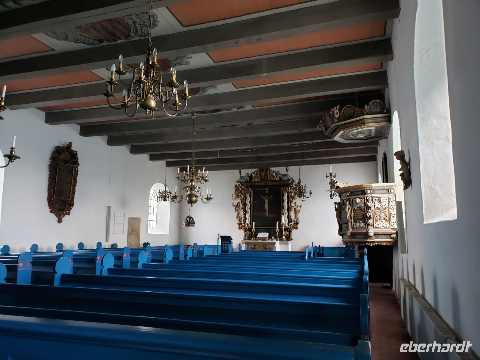 Kutscher Willi fährt uns zur kleinen Kirchwarft und anschließend zur Hanswarft, der Hallig-Hauptstadt, wie er sie nennt. Dort besuchen wir das Sturmflutkino und besichtigen den Königspesel, ein altes Kapitänshaus.