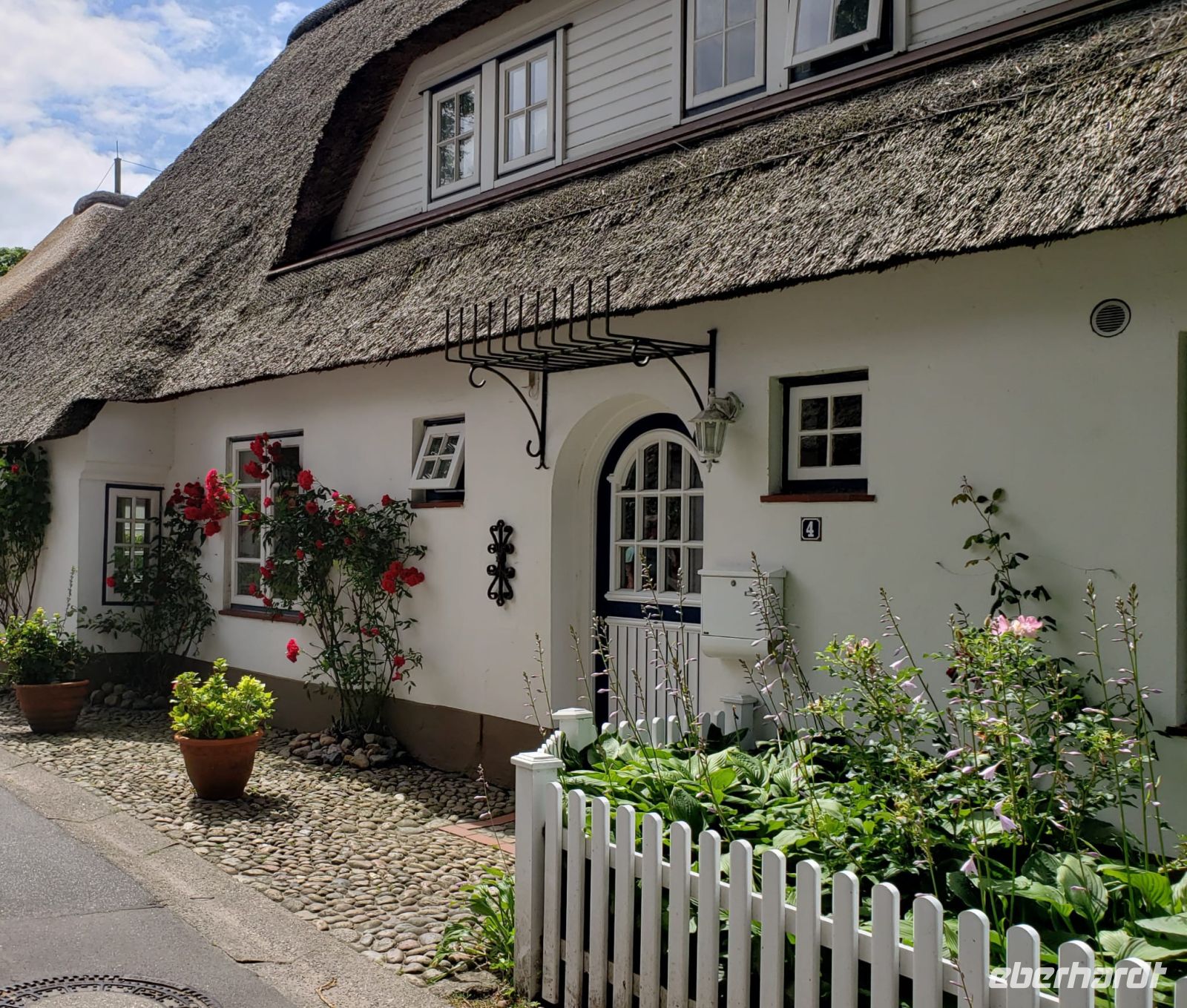 Heute lernen wir die erste von 3 Inseln kennen. Wir nehmen am Morgen die große Fähre nach Föhr. Viele Kilometer wandern wir von Wyk aus direkt am Strand entlang, bis ein Bohlenweg uns ins Inselinnere führt und wir das wunderhübsche Dorf Nieblum erreichen. Dort kehren wir in hübsche Cafes ein, laufen durch die kleinen Straßen mit Kopfsteinpflaster und bestaunen die alten, reetdachgedeckten Häuschen. Der Friesendom, die größte Kirche auf Föhr ist geöffnet und neben ihm liegt der Friedhof mit vielen, sprechenden Grabsteinen, auf denen ganze Lebensgeschichten der Verstorbenen verewigt sind.