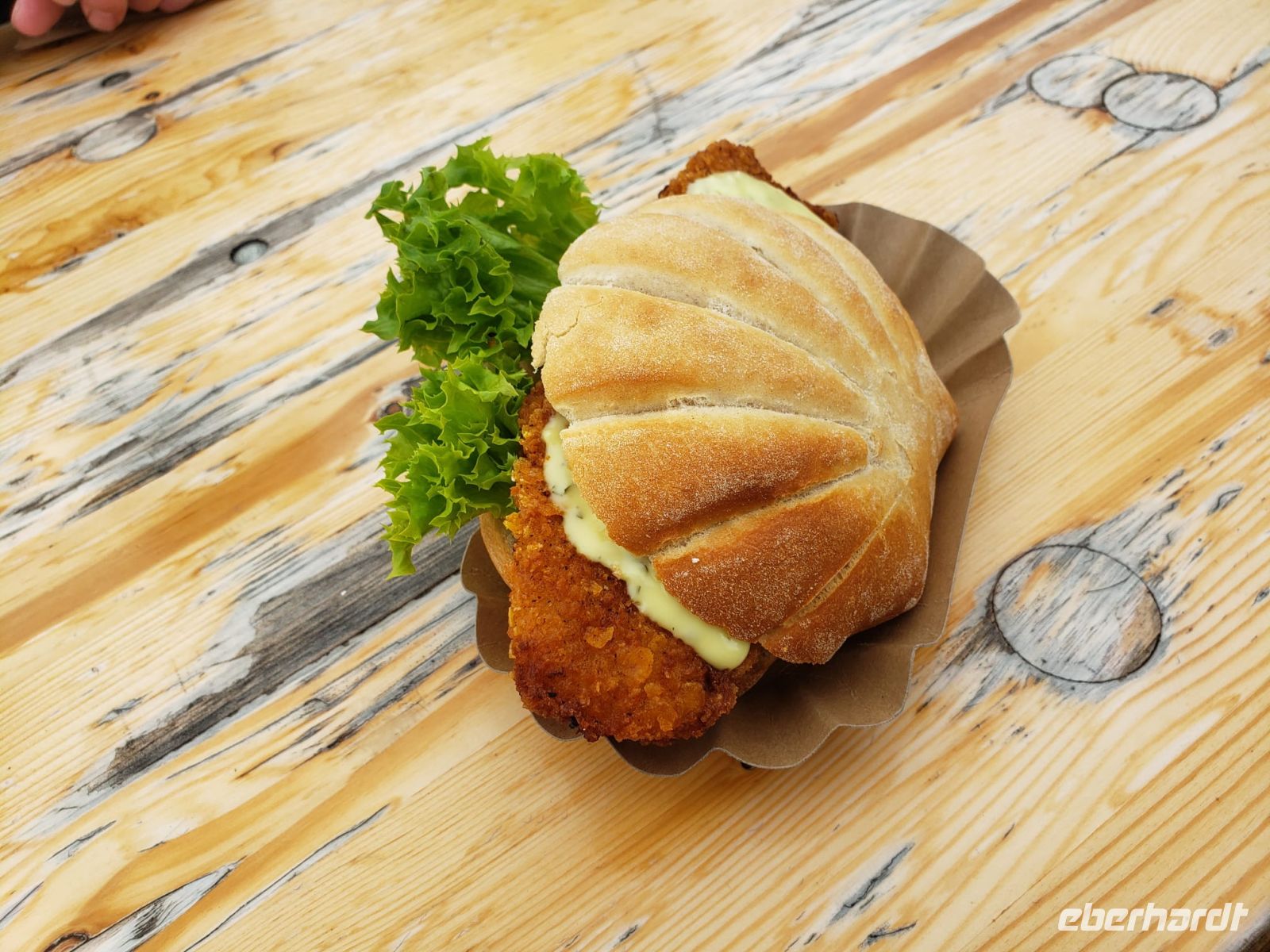 Anschließend lassen wir uns in einer Mittagspause unser erstes Fischbrötchen schmecken.