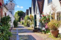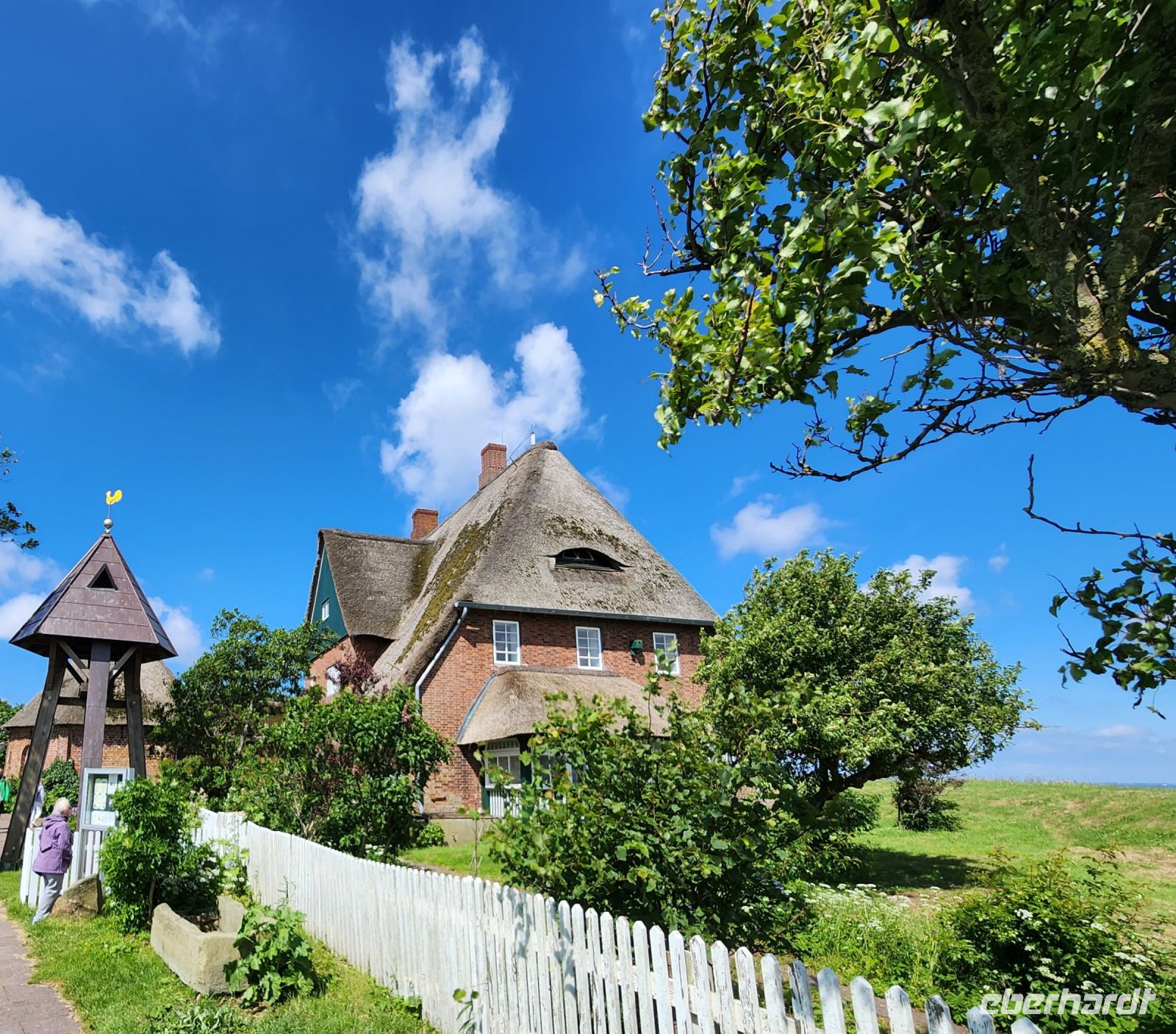 Heute lernen wir die nordfriesische Insel Föhr kennen! Mit der Fähre geht es nach Wyk auf Föhr, ein hübscher, kleiner Ort, mit vielen Geschäften, Restaurants und Cafes. Nach einem kleinen Spaziergang durch den Inselort gelangen wir an den Strand. Wir werden einige Kilometer direkt am Strand wandern, dabei haben wir die Hallig Langeneß mit ihren 18 Warften immer im Blick, man könnte fast denken, dass es alles kleine einzelne Inseln sind. Anschließend laufen wir auf einem Bohlenweg, bis wir den Rand von Nieblum erreichen. Es ist wirklich ein Bilderbuch-Dorf. Viele Häuser haben die hübschen Reetdächer, die Straßen im Ortskern haben Kopfsteinpflaster. Die Kirche, der " Friesendom" liegt etwas erhöht und ist umringt von Gräbern mit den berühmten sprechenden Grabsteinen, eine Kultur, die nur auf den nordfriesischen Inseln zu finden ist.