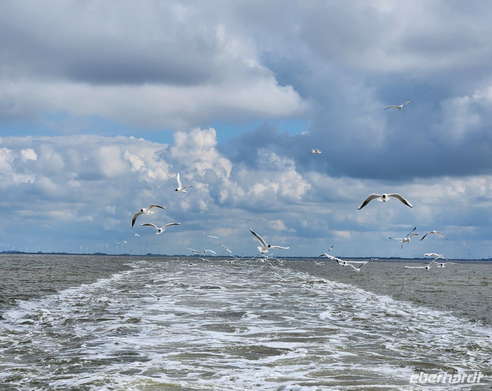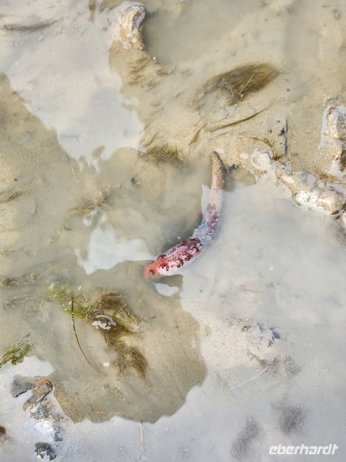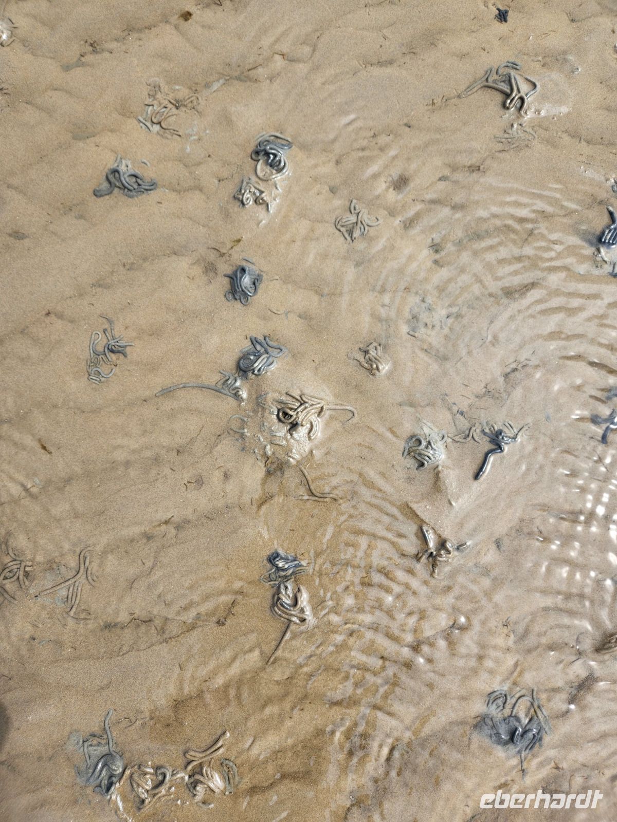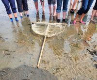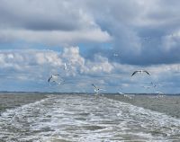Es ist gerade Ebbe, unser Wattführer buddelt nach Wattwürmern, Krebsen und Muscheln.Wir lernen viel Wissenswertes über diese Wunderwelt, die zum UNESCO - Weltnaturerbe ernannt wurde. Wir laufen 2 km ins Meer hinaus, bis die Flut wieder einsetzt und können dann genau beobachten, wie das Wasser wieder zurückkommt.
