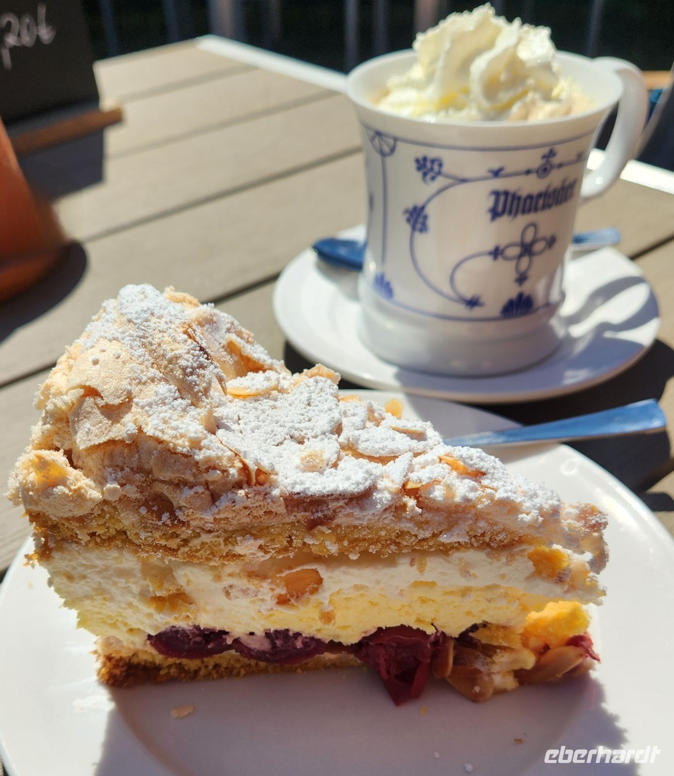 Wir machen eine Mittagspause, trinken Kaffee, bestellen uns eine leckere, frisch gebackene Waffel oder ein Stück Kuchen.