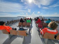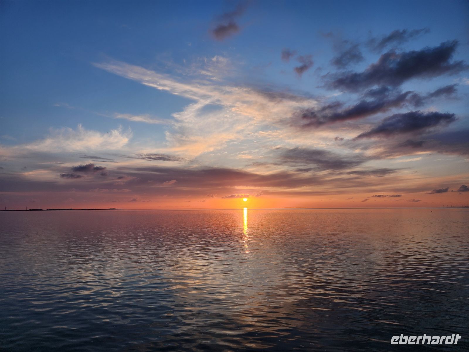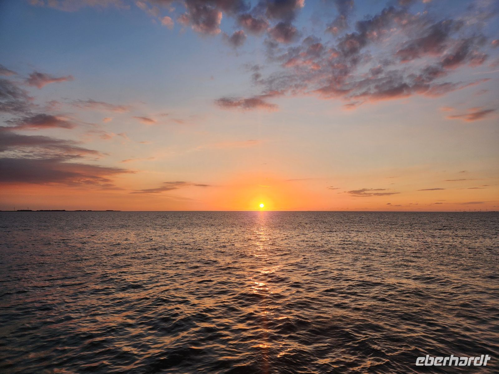 Auch an diesem Abend wird es wieder ein toller Sonnenuntergang! Und da wir so gute Laune haben, entscheiden wir uns spontan zum Line-Dance auf der Mole!