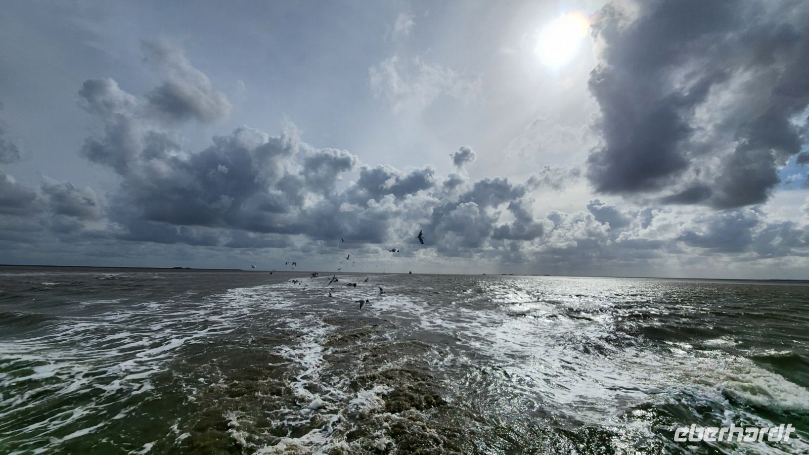 Dann wird es auch schon wieder Zeit für die Rückfahrt, viele Möwen begleiten die Fähre und hoffen, dass einige Fische an die Wasseroberfläche kommen und somit einfache Beute für sie sind, ein tolles Bild.