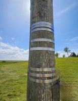 Föhr hat kilometerlange Sandstrände. Auf dem Weg Richtung Nieblum wandern wir lange am Ufer, einige ziehen direkt ihre Wanderschuhe aus und wollen den Sand spüren. Viele schauen nach Steinen und Muscheln, wir entdecken auch einige Austernfischer, einen typischen Vogel des Wattenmeeres, auch Halligstorch genannt, weil er sein Nest gerne auf den Reetdächern baut und sein Gefieder dem des Storches sehr ähnelt. Am Strand haben wir auch die ganze Zeit die Hallig Langeneß mit ihren 18 Warften im Blick, die alle eigentlich eher wie einzelne kleine Inseln wirken. Weit in der Ferne entdecken wir dann auch den Leuchtturm von Amrum.