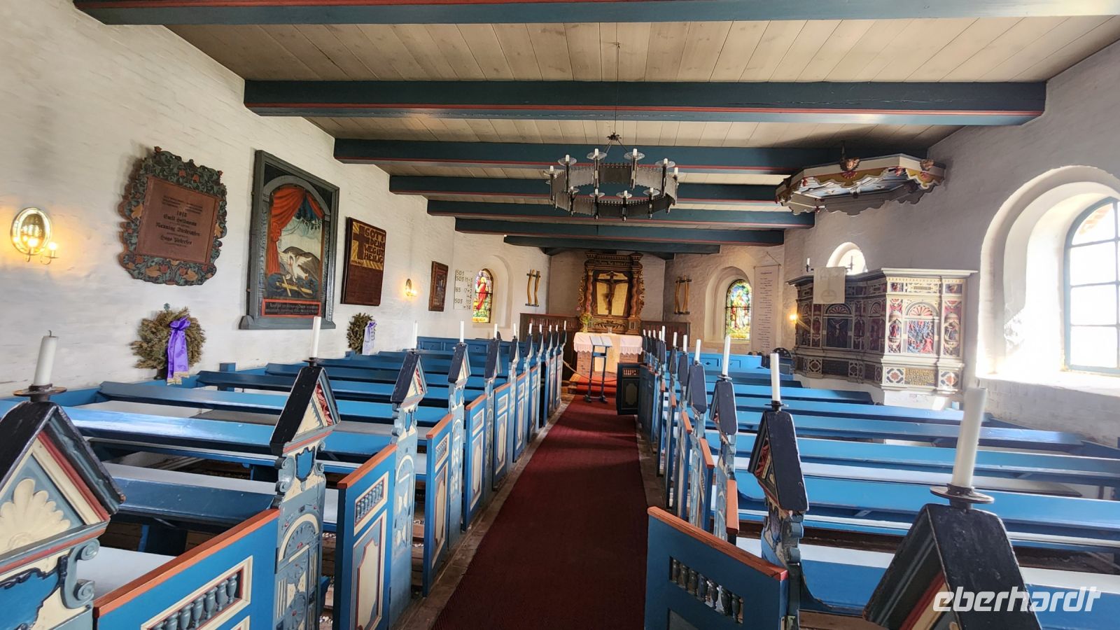 Und wieder werden wir reich mit Sonnenschein beschenkt und sitzen daher auf dem Oberdeck bei der Überfahrt. Auf der Hallig Hooge erwartet uns der Kutscher Willy bereits und wird uns heute zur Hanswarft und zur Kirchwarft bringen. Die Hanswarft ist das Zentrum der Hallig. Hier gibt es einige Cafes, einen Fischbrötchenstand,einen kleinen Halligkaufmann für die 100 Einwohner und kleine Souvenirläden. Wir besuchen das Sturmflutkino und haben so endlich eine Vorstellung davon, was " Land unter" für eine Hallig bedeutet! Wir besuchen den Königspesel, ein altes Kapitänshaus mit unzähligen Delfter Fliesen. Claudia erzählt uns alles Wissenswerte bei einer kleinen Führung. Einige spazieren anschließend durch die grüne Landschaft der Hallig und man sitzt gemütlich im Cafe zusammen. Auf der Kirchwarft ist eine ganz besonders friedliche Stimmung, die kleine Kirche mit ihren blauen Bänken ist schlicht und einladend. Ein Pfeiler mit verschiedenen Markierungen zeigt uns, wie hoch das Wasser bei den höchsten Sturmfluten kam.