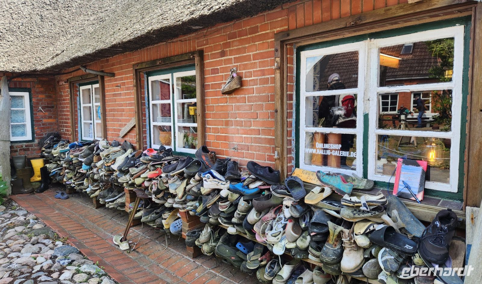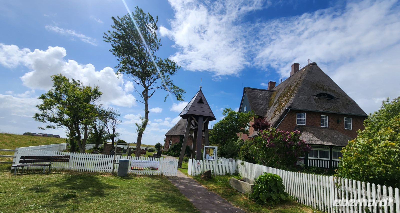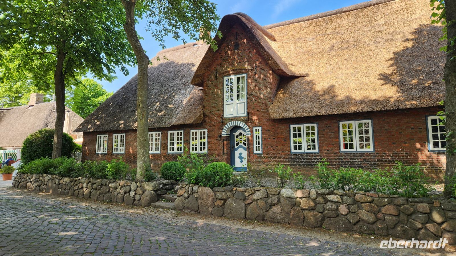 Nieblum ist ein Bilderbuch-Dorf, Kopfsteinpflaster und viele hübsche Häuschen mit Reetdächern, wir machen viele Erinnerungsfotos.